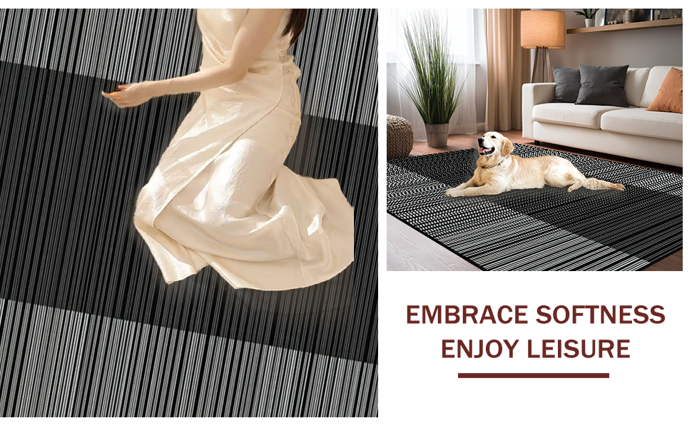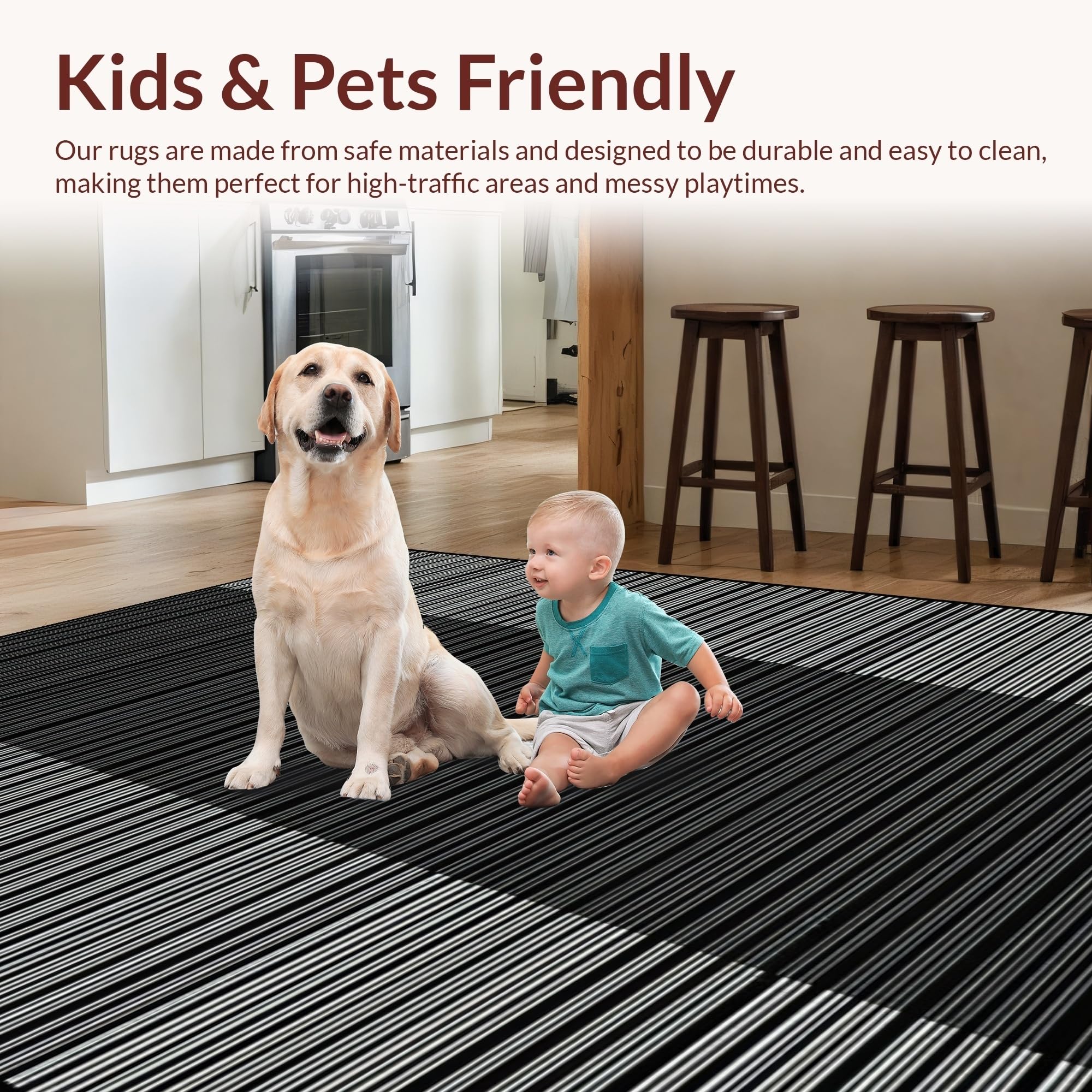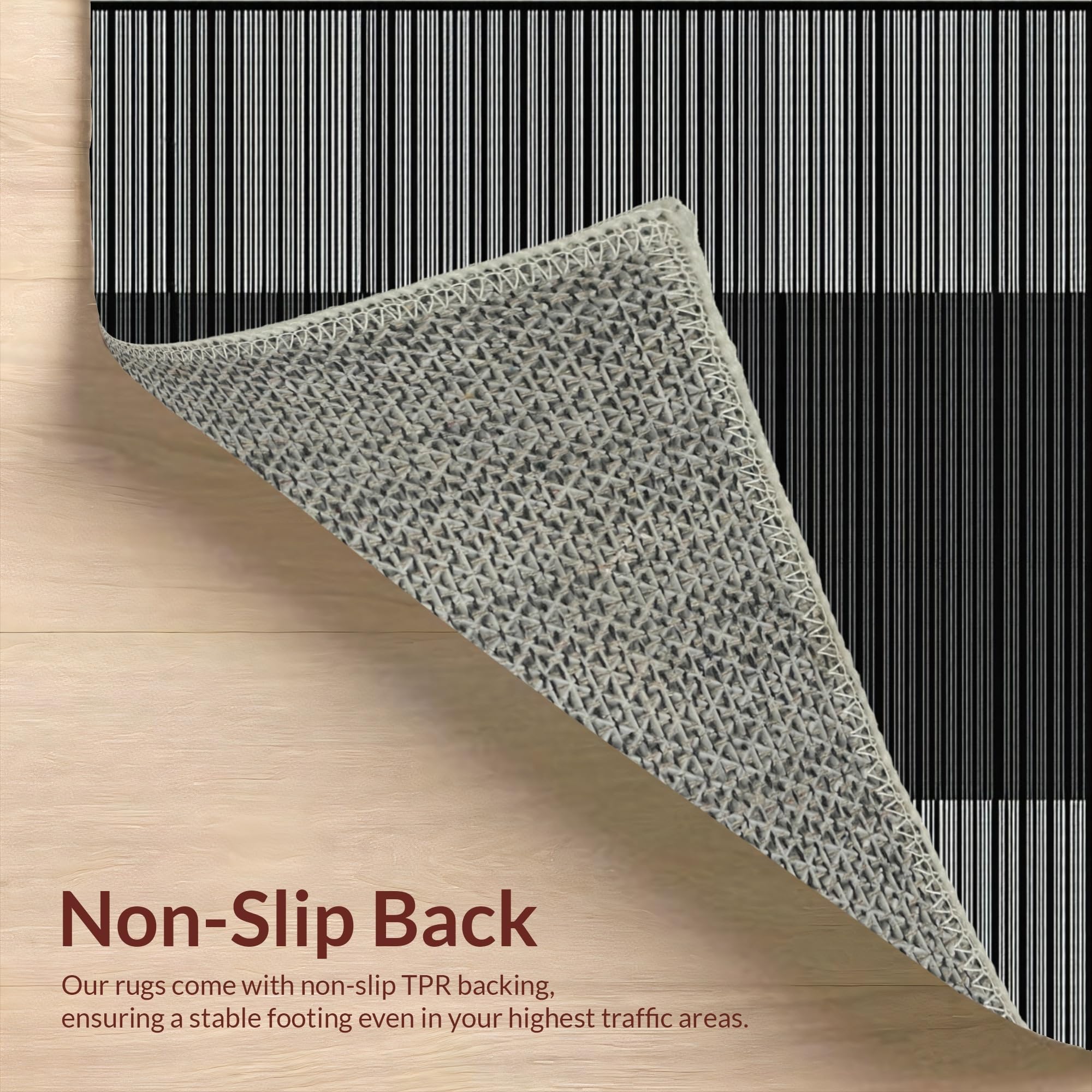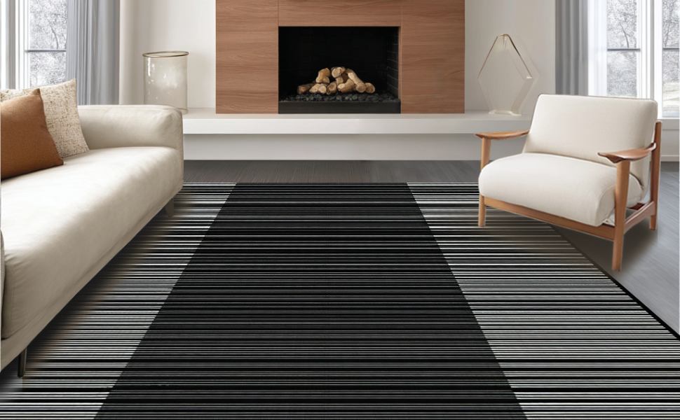 Ultra Soft Area Rug, Non Slip, Stain Resistant, Washable Area Rugs for Living Room, Bedroom, Vibrant Coastal Striped Harmony(Black) Overview: