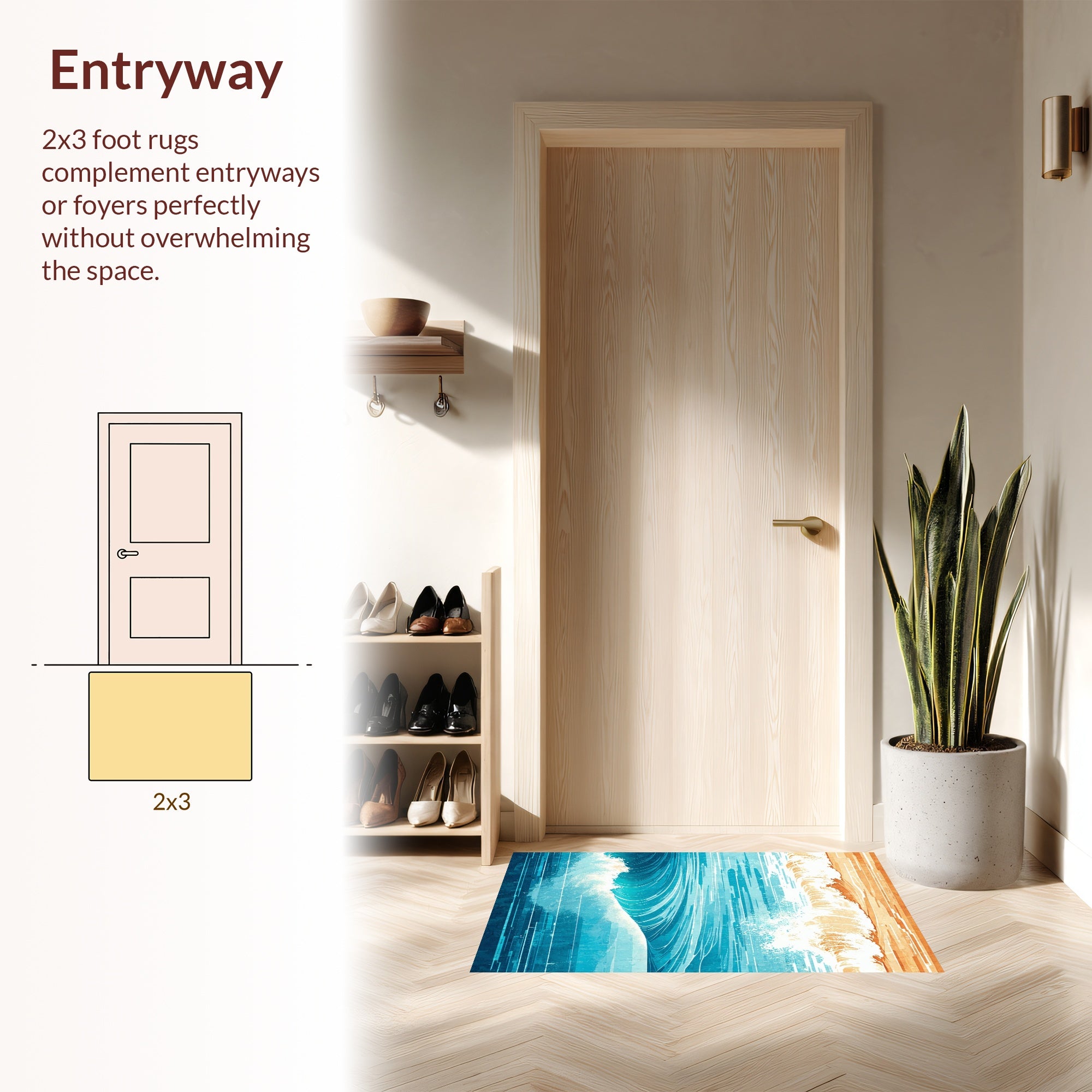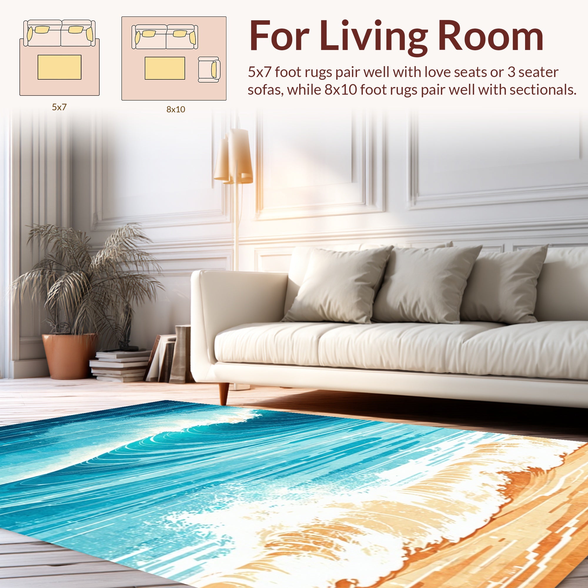 Flatwoven High Traffic Area Rug, Vibrant Surfboard Motif, Non Slip, Stain Resistant, Washable Area Rugs for Living Room, Bedroom (Blue) Overview:
