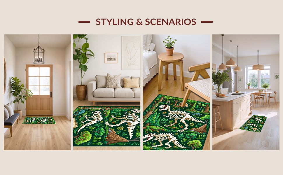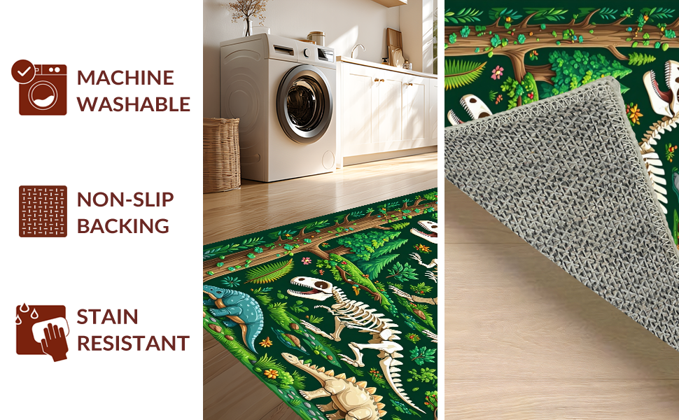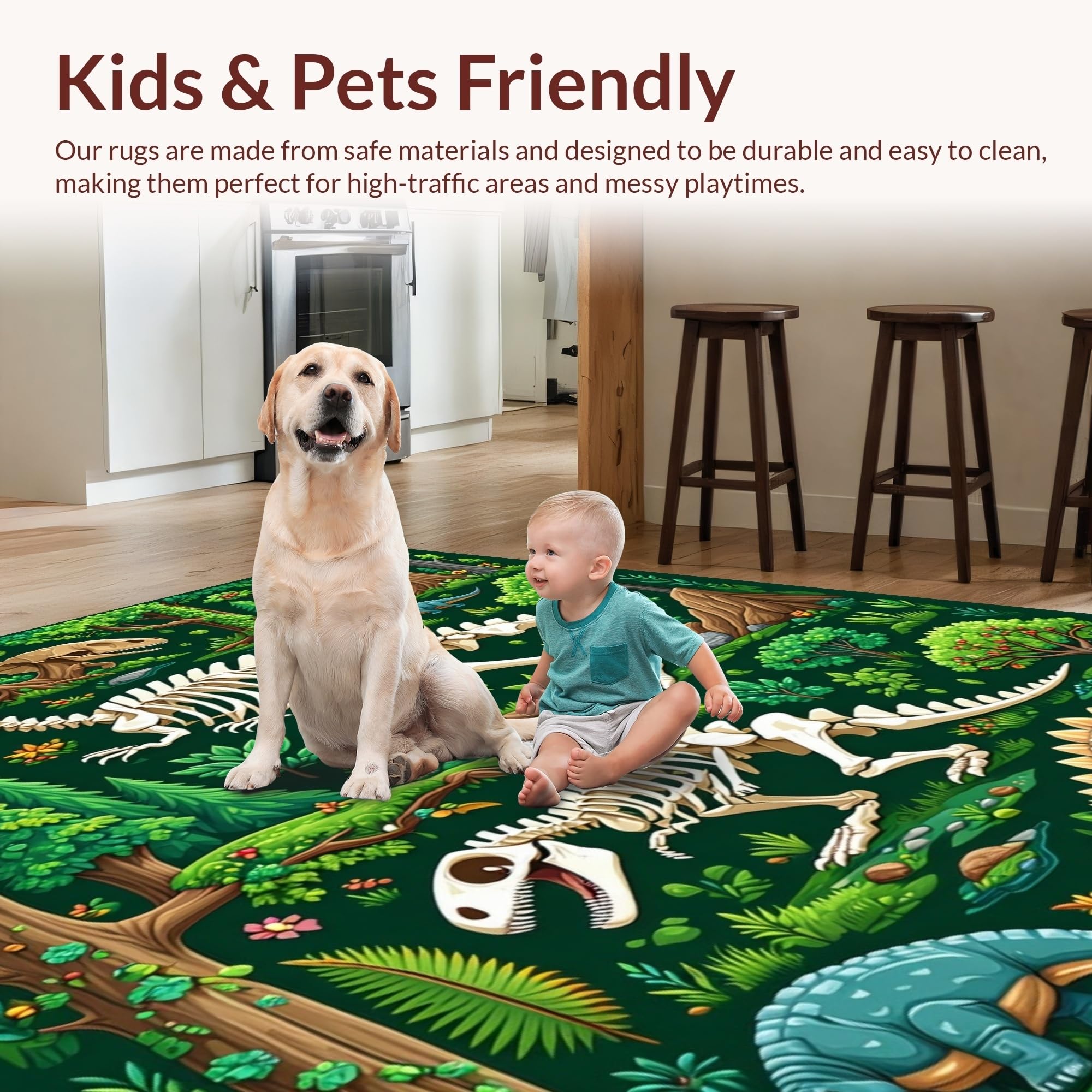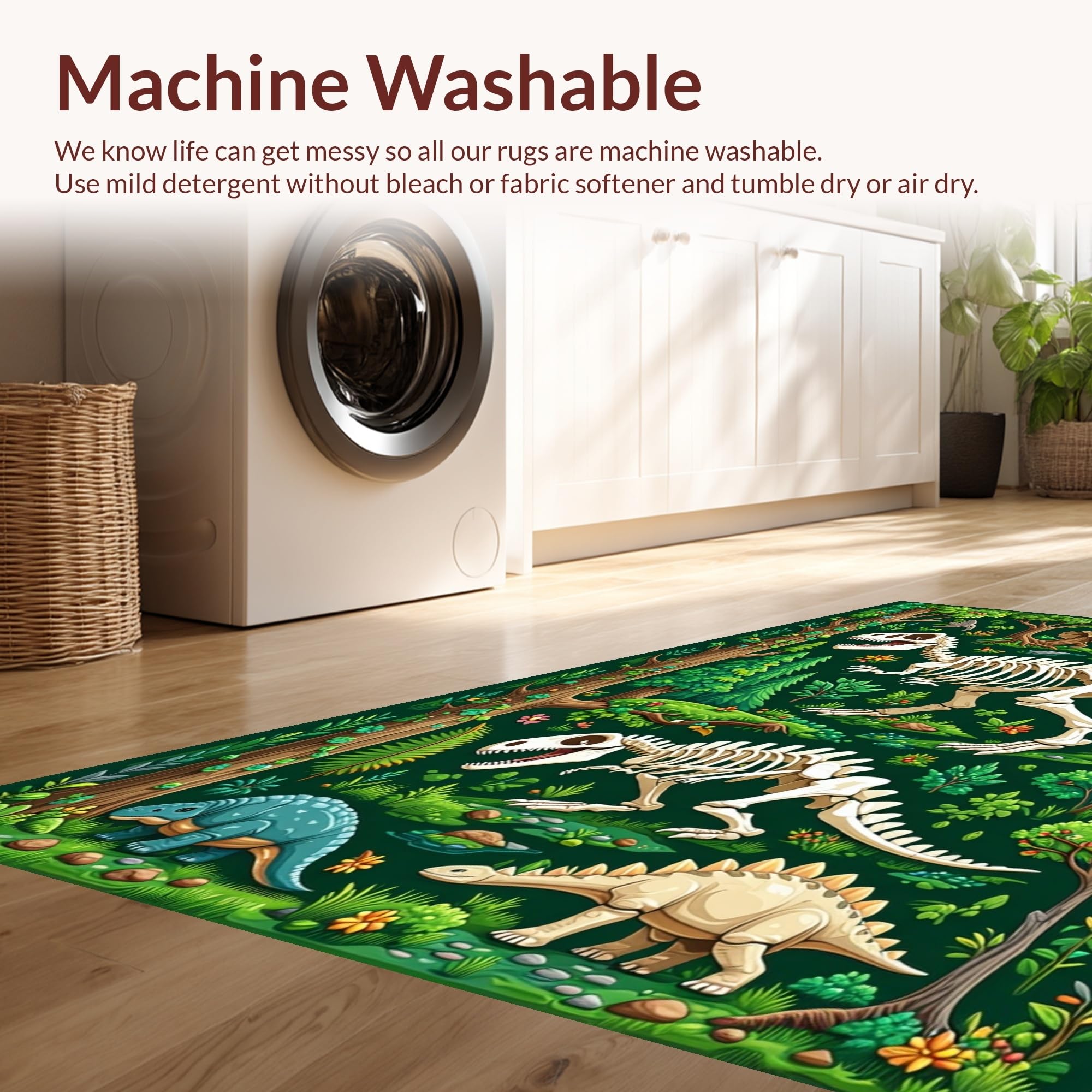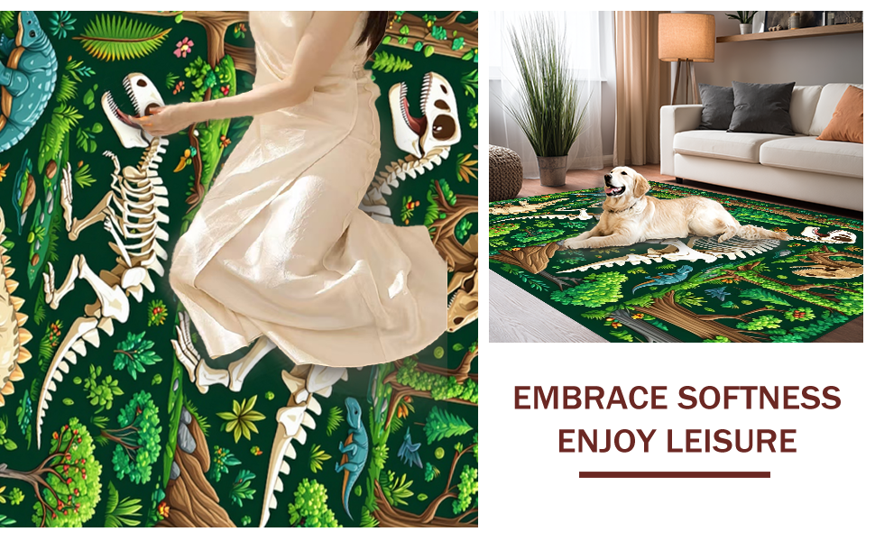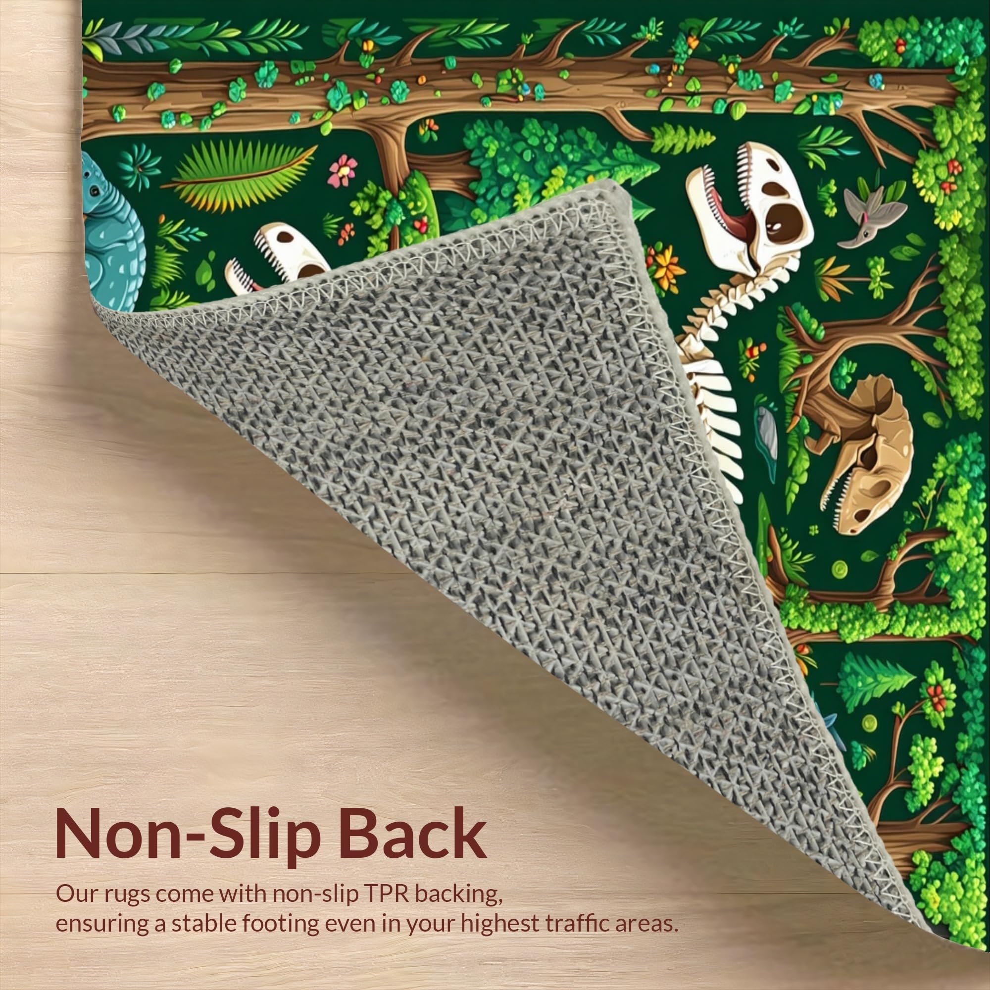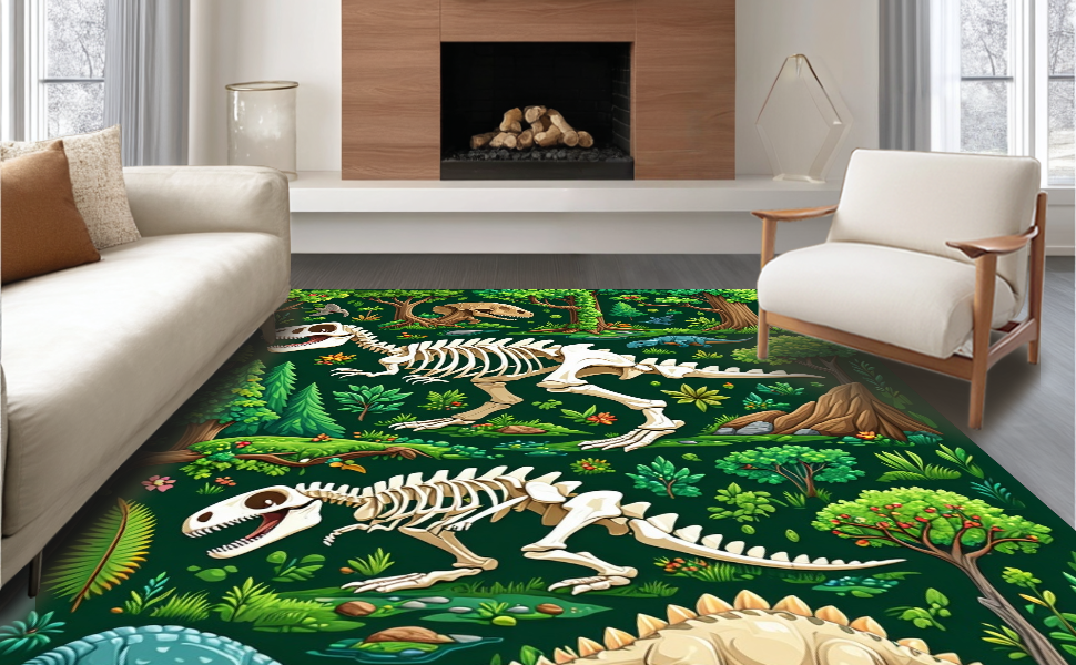 Ultra Soft Area Rug, Non Slip, Stain Resistant, Washable Area Rugs for Living Room, Bedroom, Vibrant Colorful Jurassic Theme(Green) Overview: