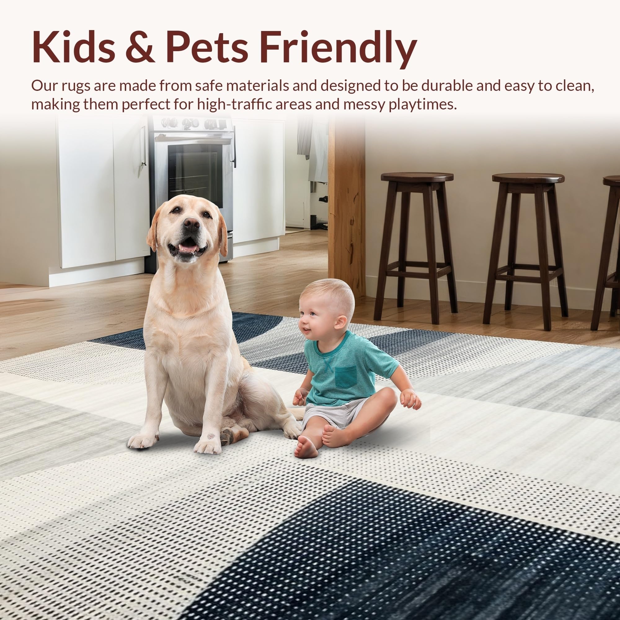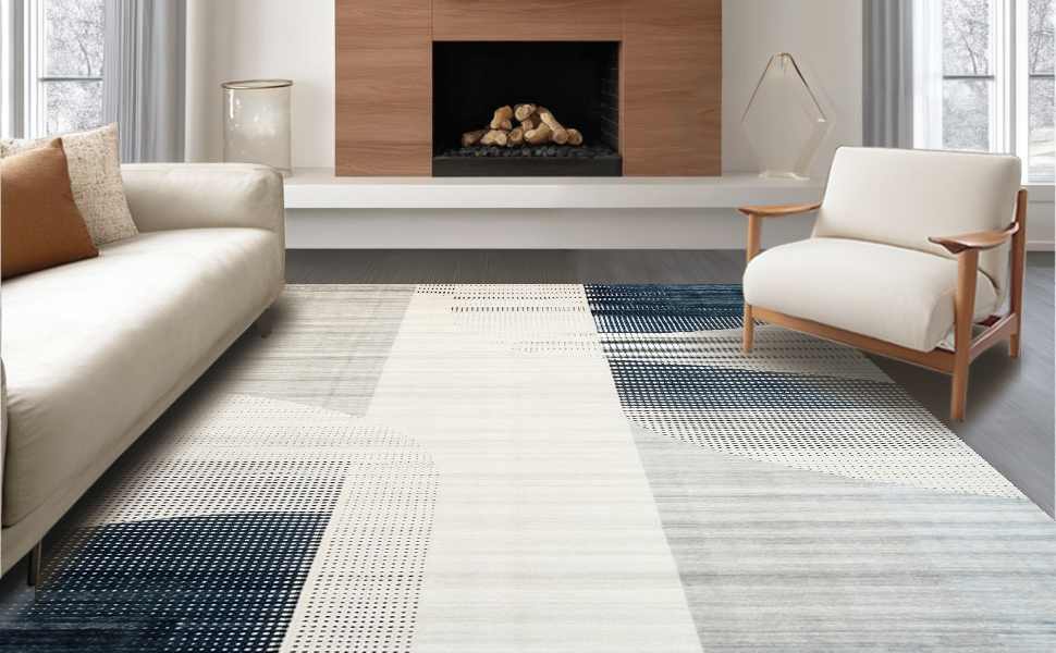 Ultra Soft Area Rug, Non Slip, Stain Resistant, Washable Area Rugs for Living Room, Bedroom, Vibrant Contemporary Angular Layout(Gray) Overview: