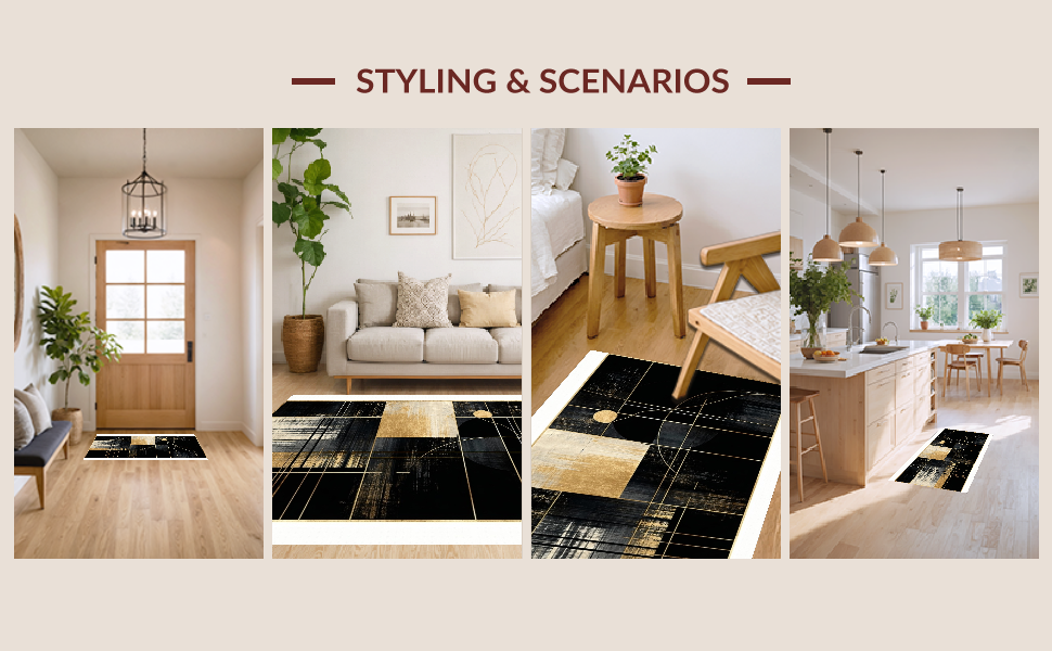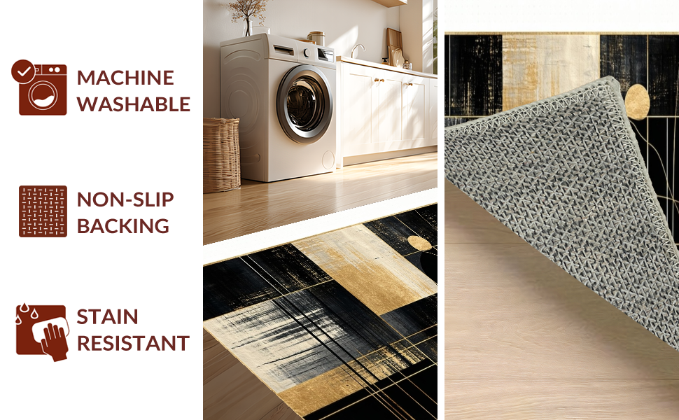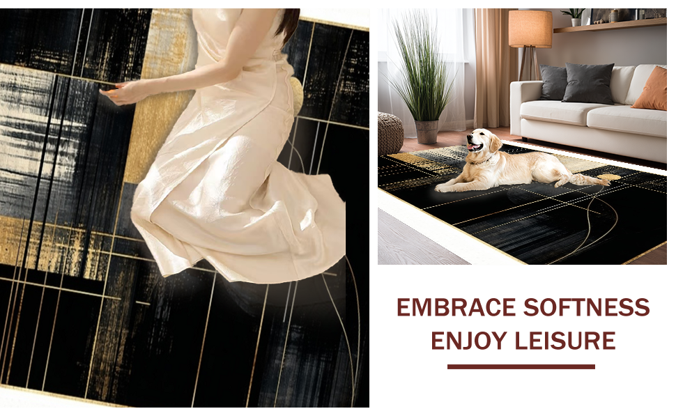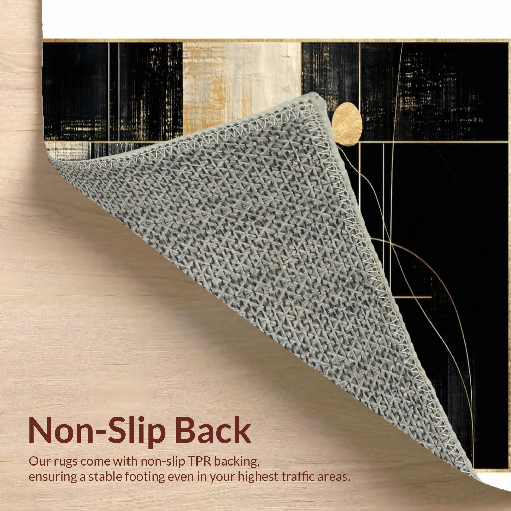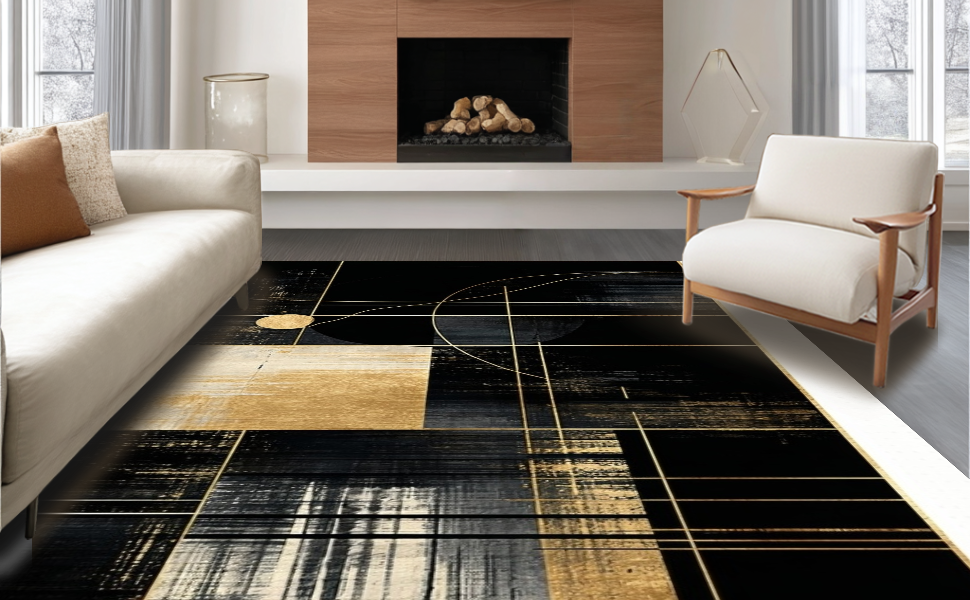 Ultra Soft Area Rug, Non Slip, Stain Resistant, Washable Area Rugs for Living Room, Bedroom, Vibrant Contemporary Graphic Interpretation(Black) Overview: