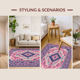 Ultra Soft Area Rug, Non Slip, Stain Resistant, Washable Area Rugs for Living Room, Bedroom, Vibrant Contemporary Ogee Design(Pink) Overview: