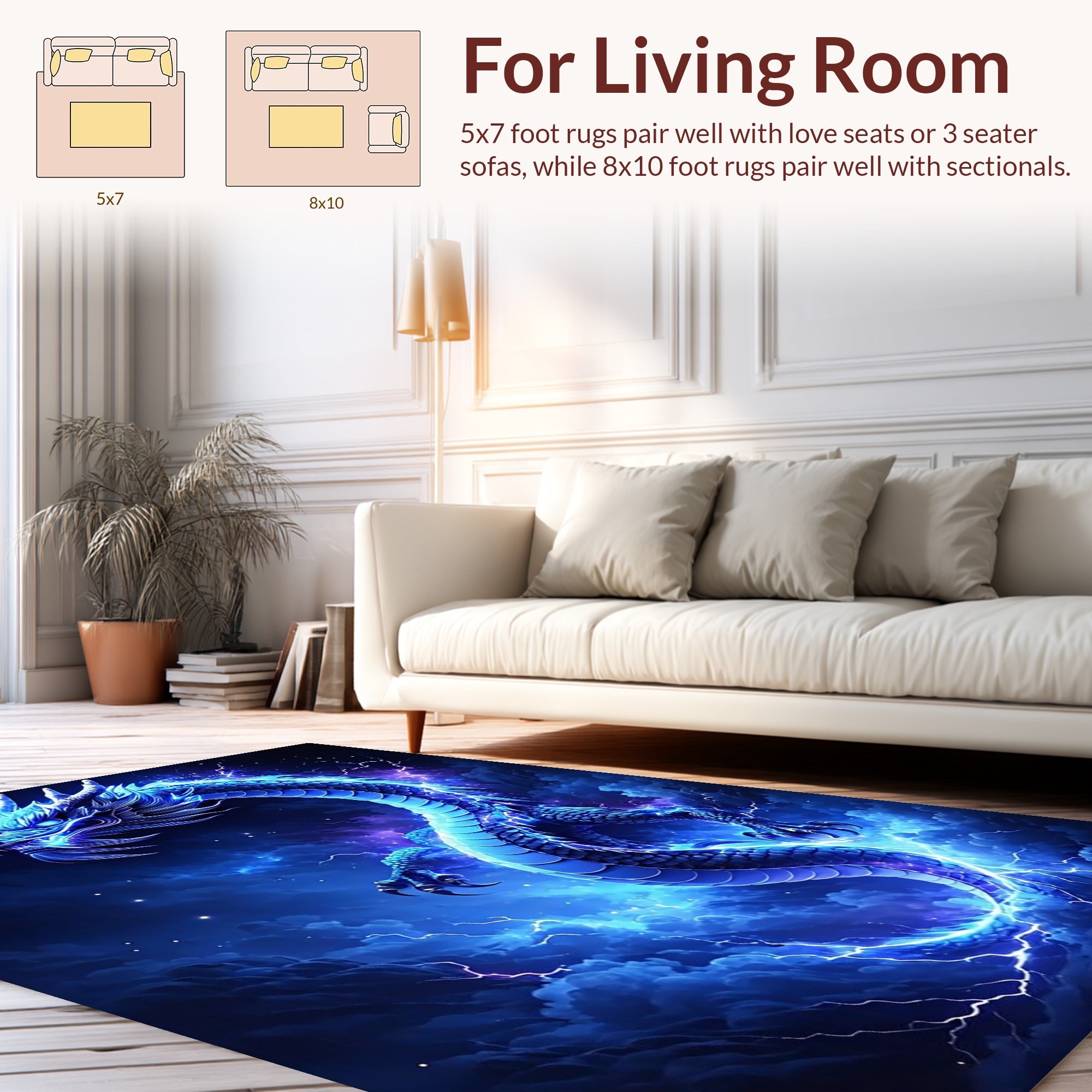 Flatwoven High Traffic Area Rug, Vibrant Cosmic Dragon Imagery, Non Slip, Stain Resistant, Washable Area Rugs for Living Room, Bedroom (Blue) Overview: