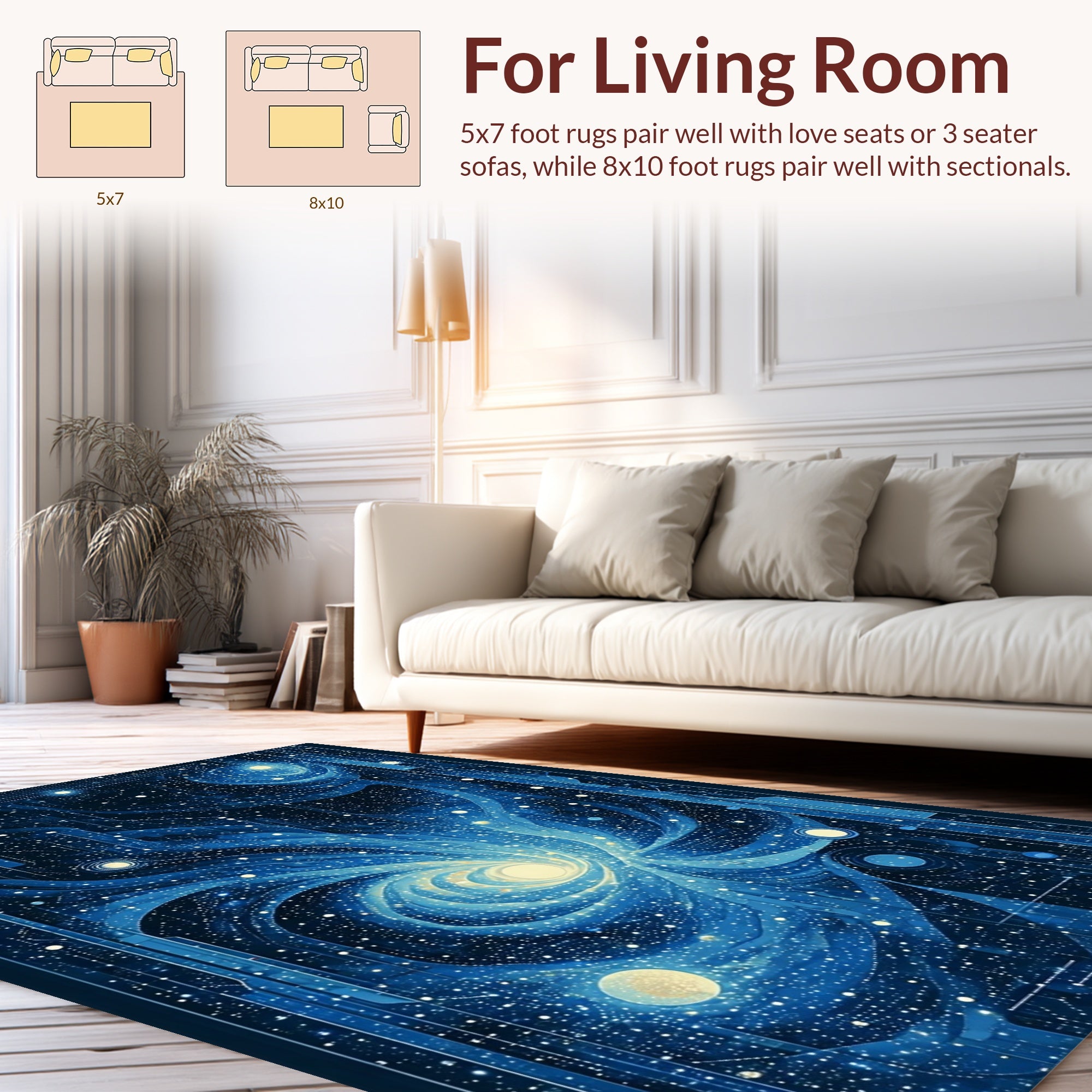 Flatwoven High Traffic Area Rug, Vibrant Cosmic Fantasy, Non Slip, Stain Resistant, Washable Area Rugs for Living Room, Bedroom (Blue) Overview: