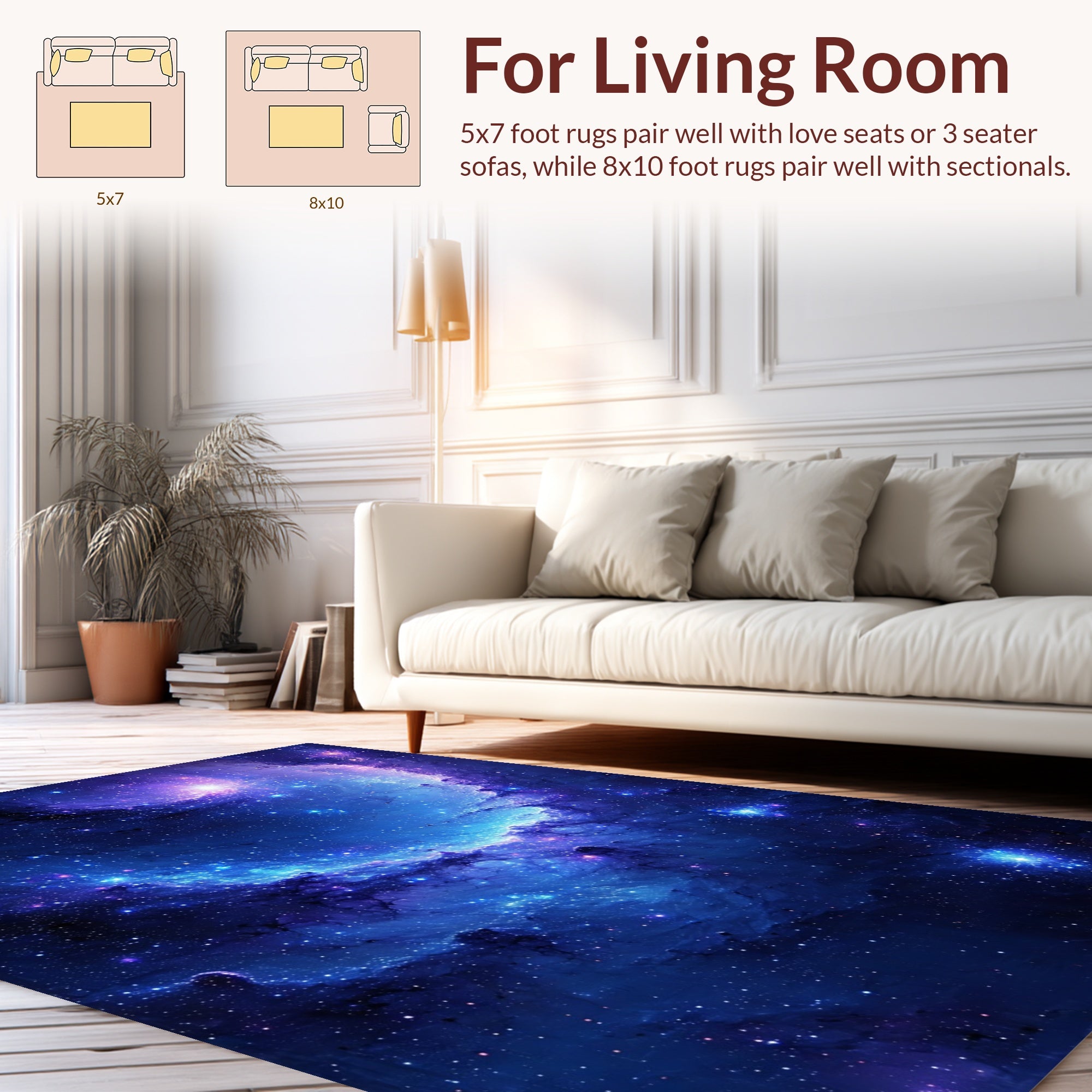 Flatwoven High Traffic Area Rug, Vibrant Cosmic Nebula Aesthetic, Non Slip, Stain Resistant, Washable Area Rugs for Living Room, Bedroom (Blue) Overview: