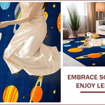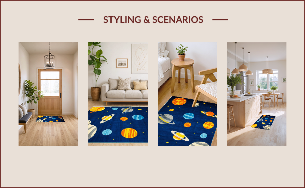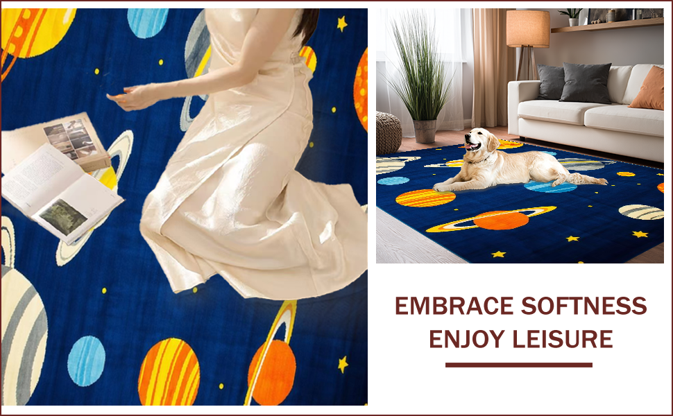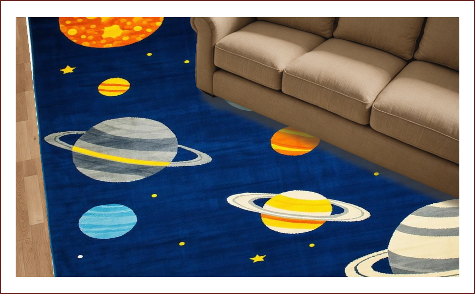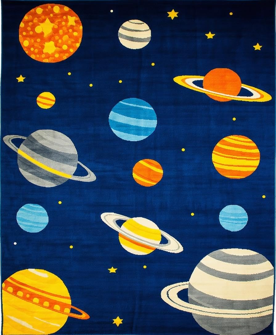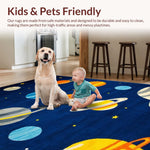Ultra Soft Area Rug, Non Slip, Stain Resistant, Washable Area Rugs for Living Room, Bedroom, Vibrant Cosmic Orbital Design(Blue) Overview: