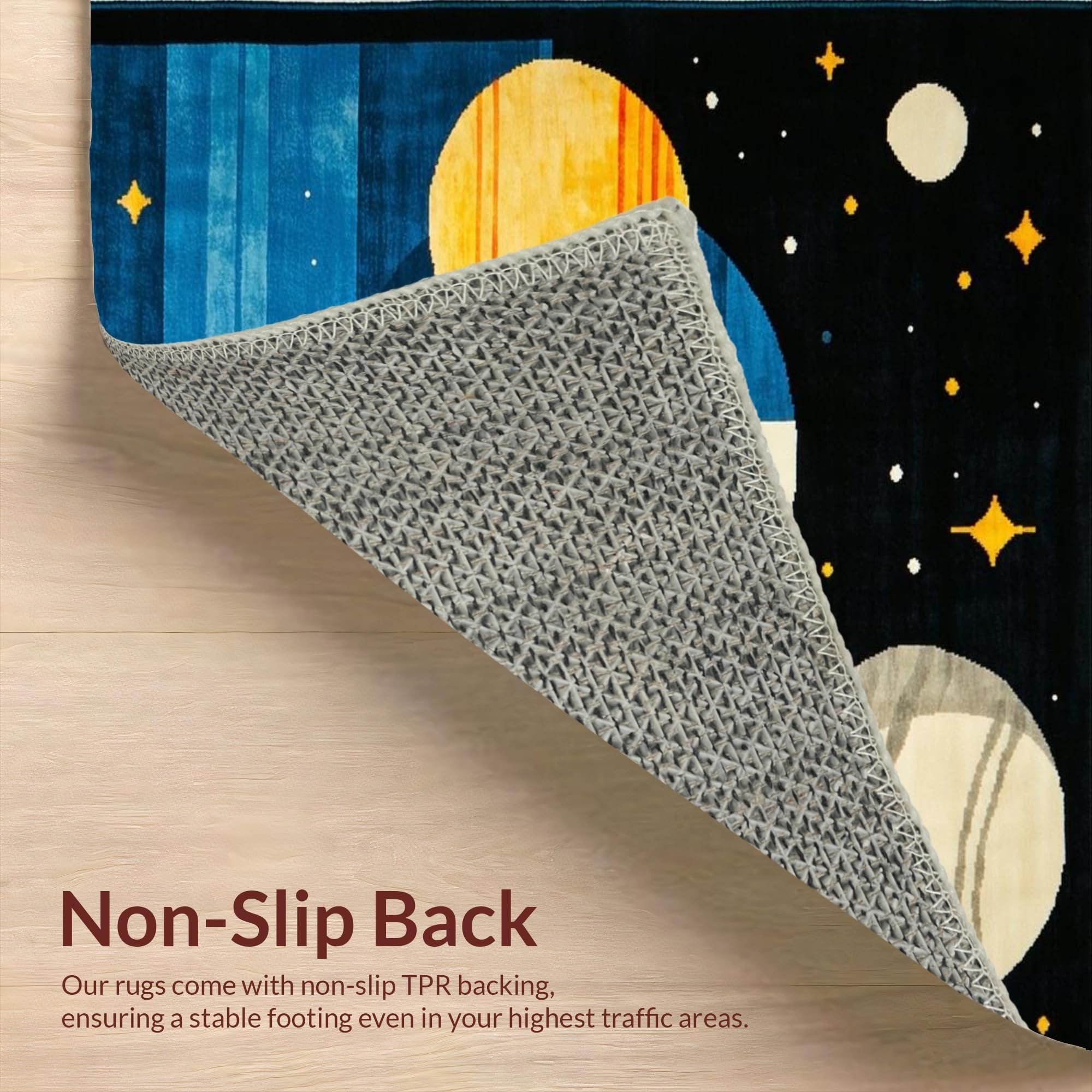 Ultra Soft Area Rug, Non Slip, Stain Resistant, Washable Area Rugs for Living Room, Bedroom, Vibrant Cosmic Starry Wonderland(Black) Overview: