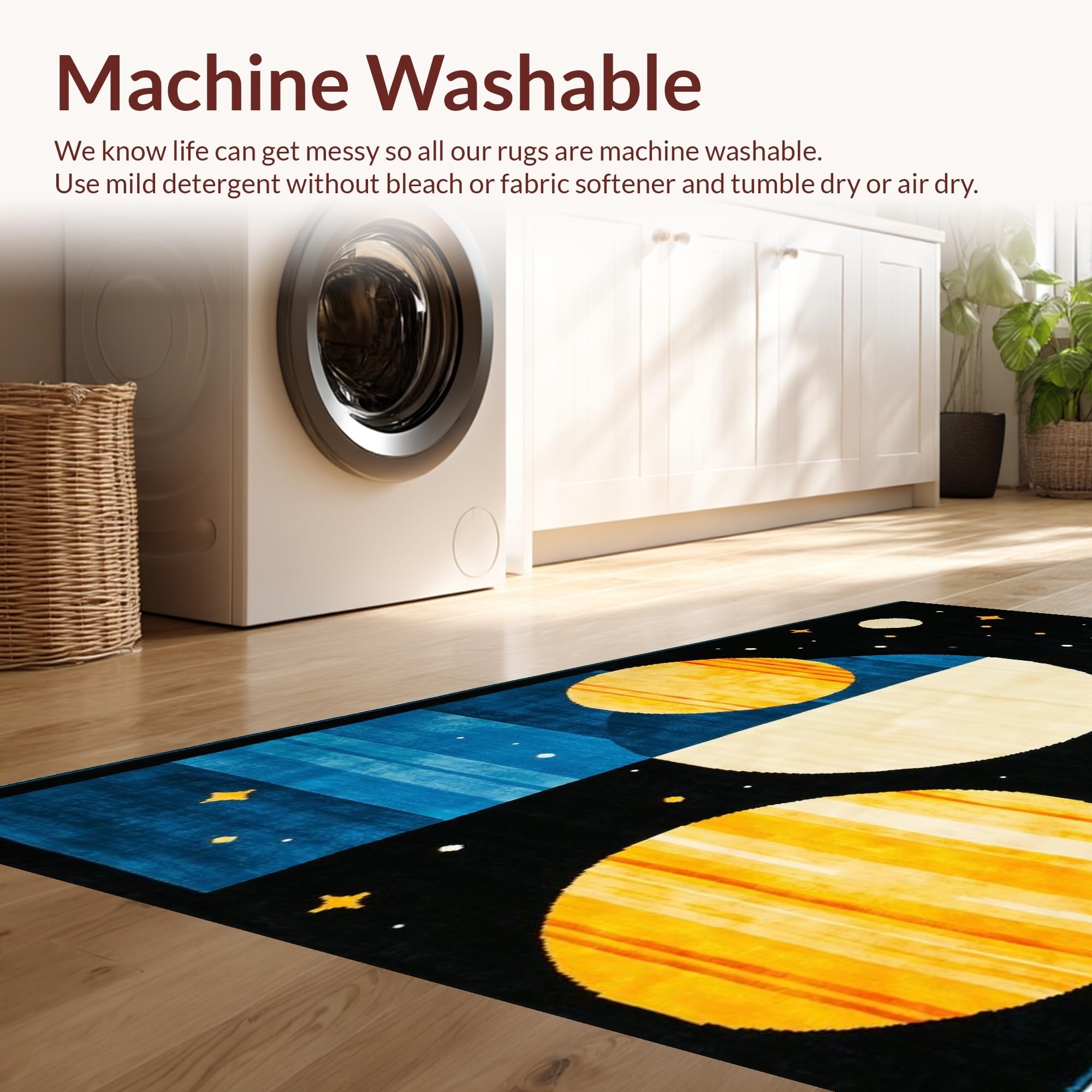 - Machine Washable: Our rugs can be easily thrown in the wash machine.