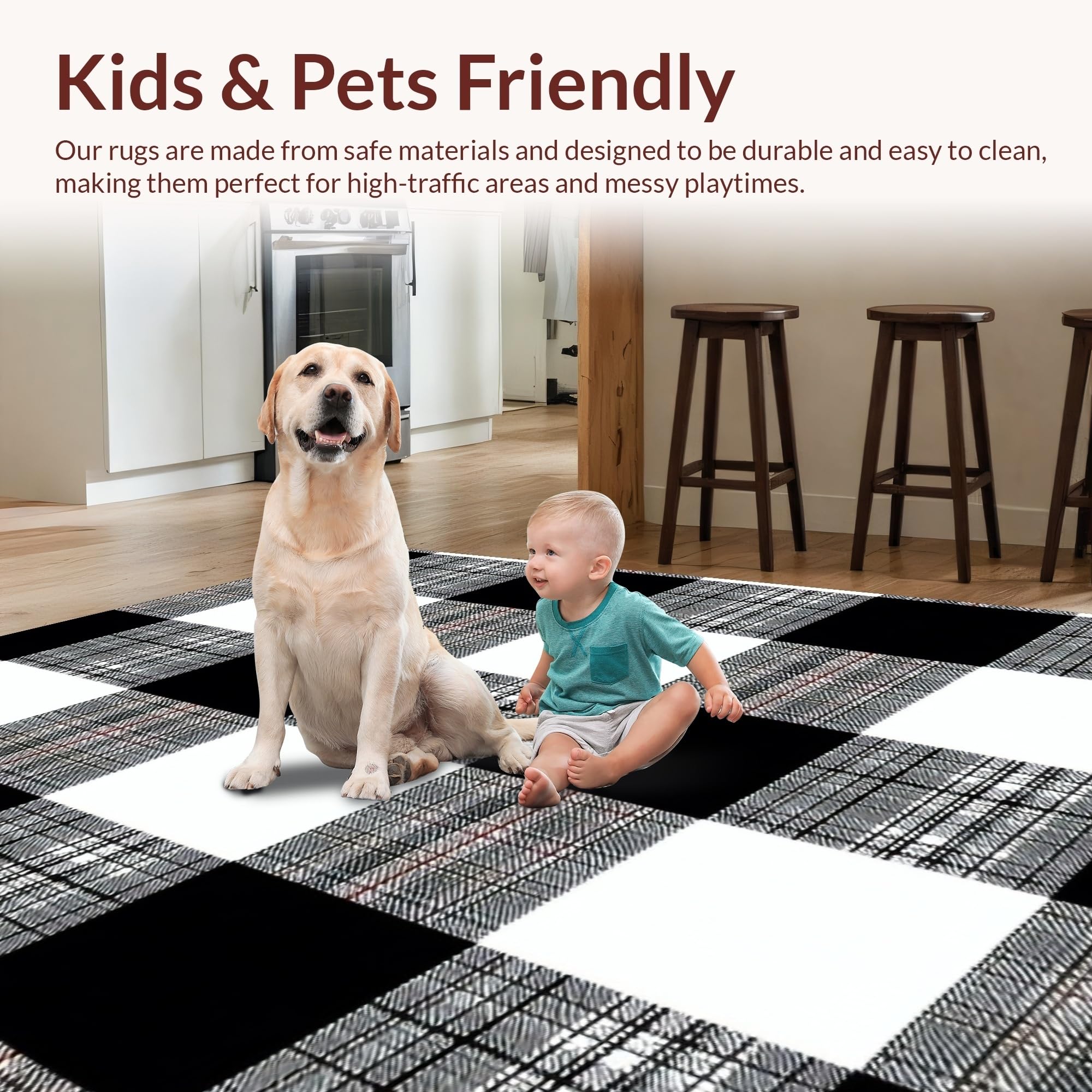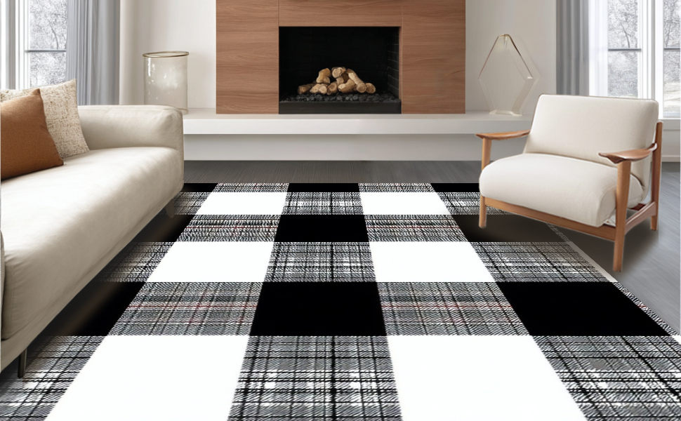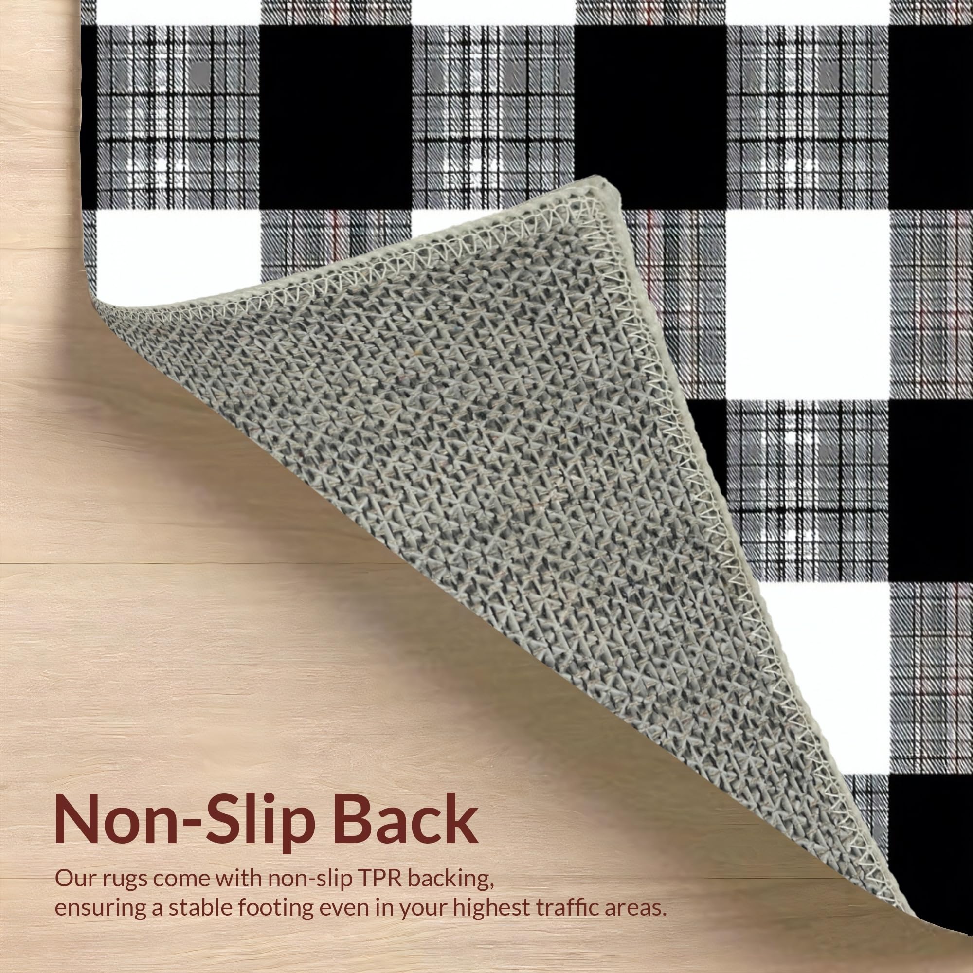 Ultra Soft Area Rug, Non Slip, Stain Resistant, Washable Area Rugs for Living Room, Bedroom, Vibrant Cozy Buffalo Print(Black) Overview: