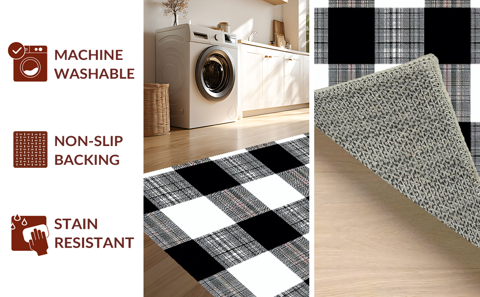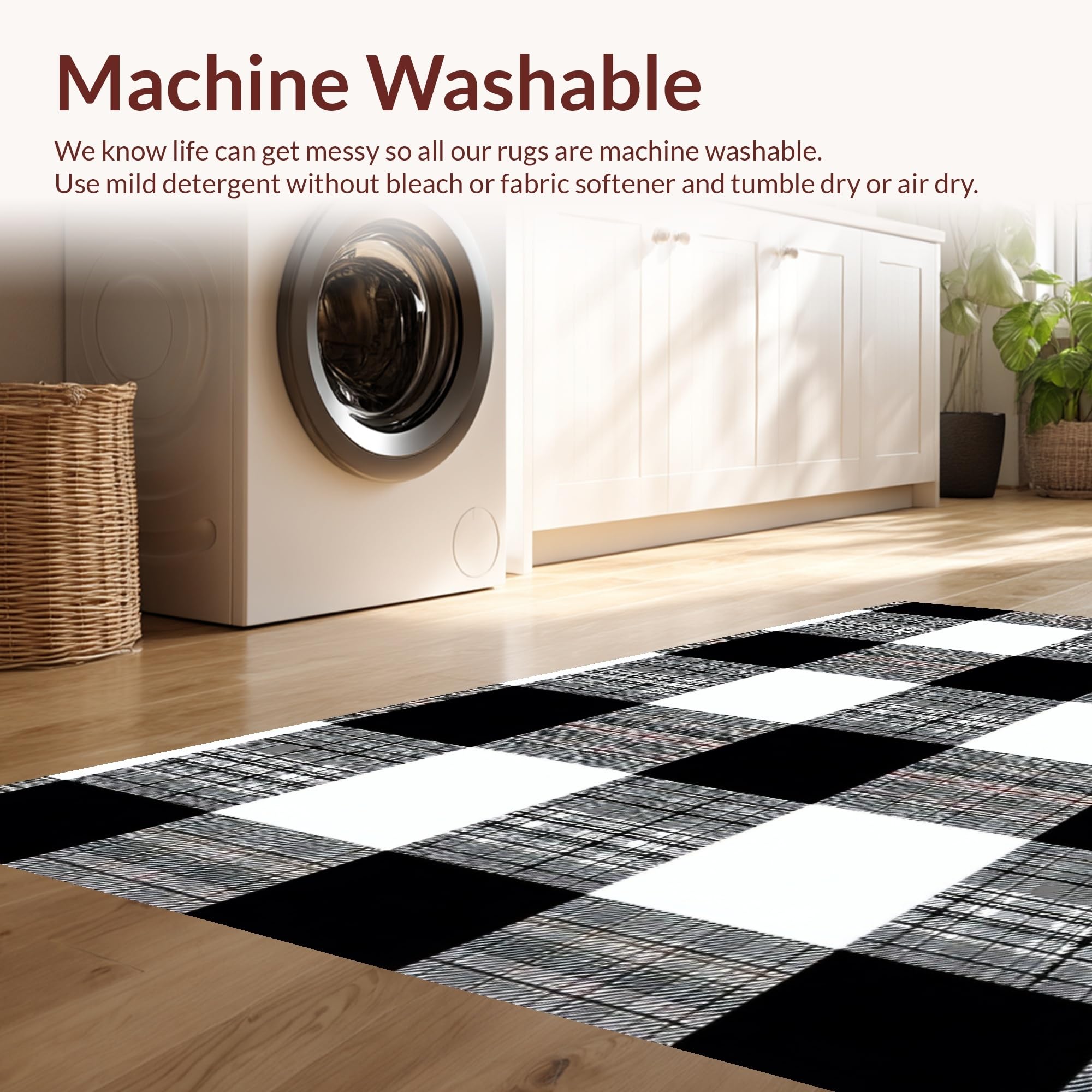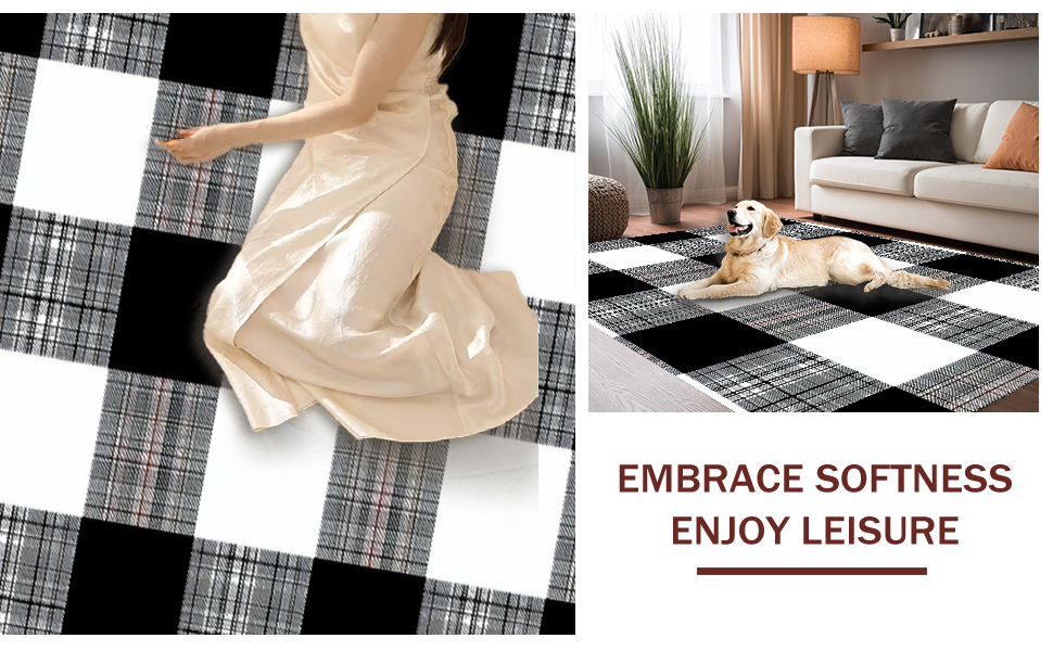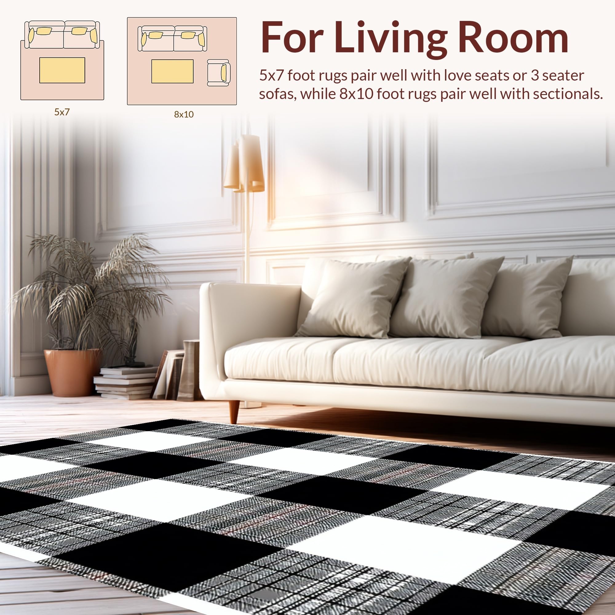 Ultra Soft Area Rug, Non Slip, Stain Resistant, Washable Area Rugs for Living Room, Bedroom, Vibrant Cozy Buffalo Print(Black) Overview: