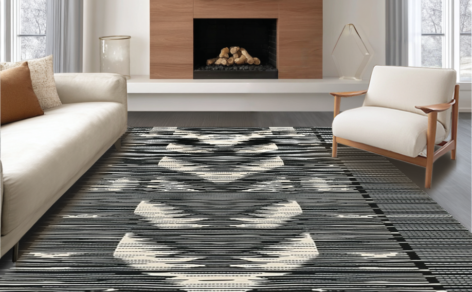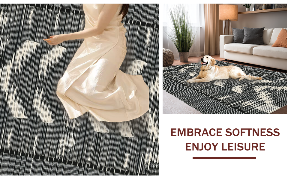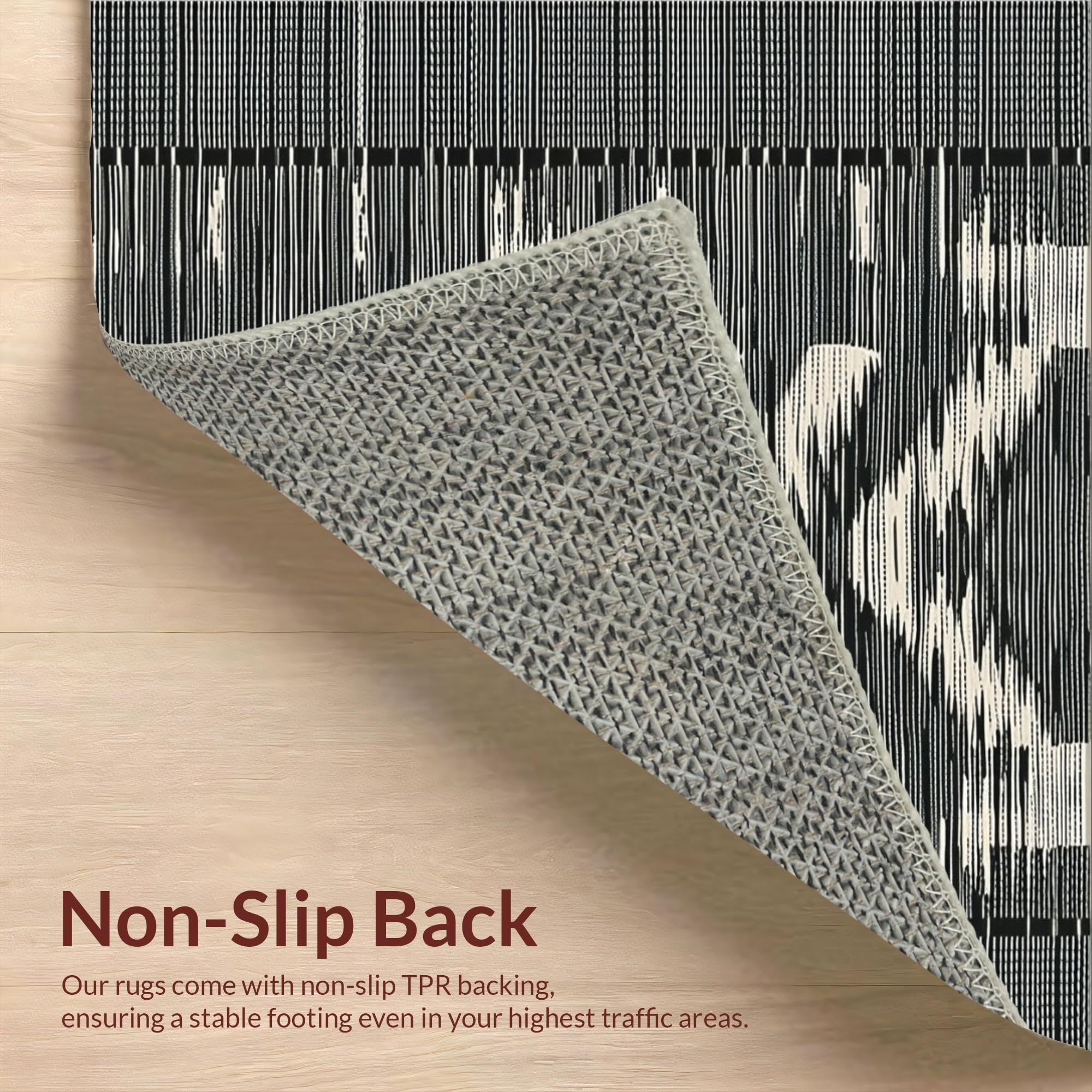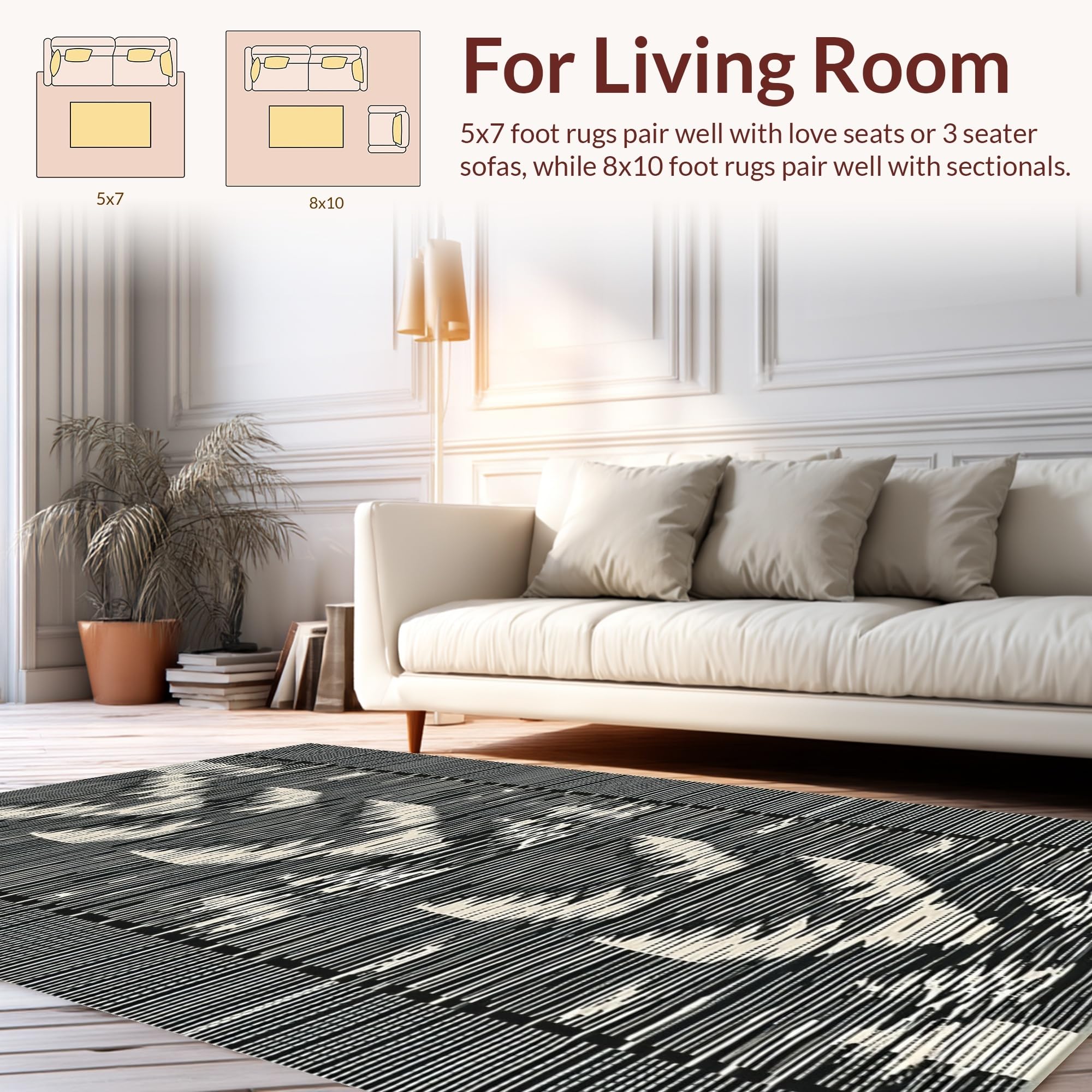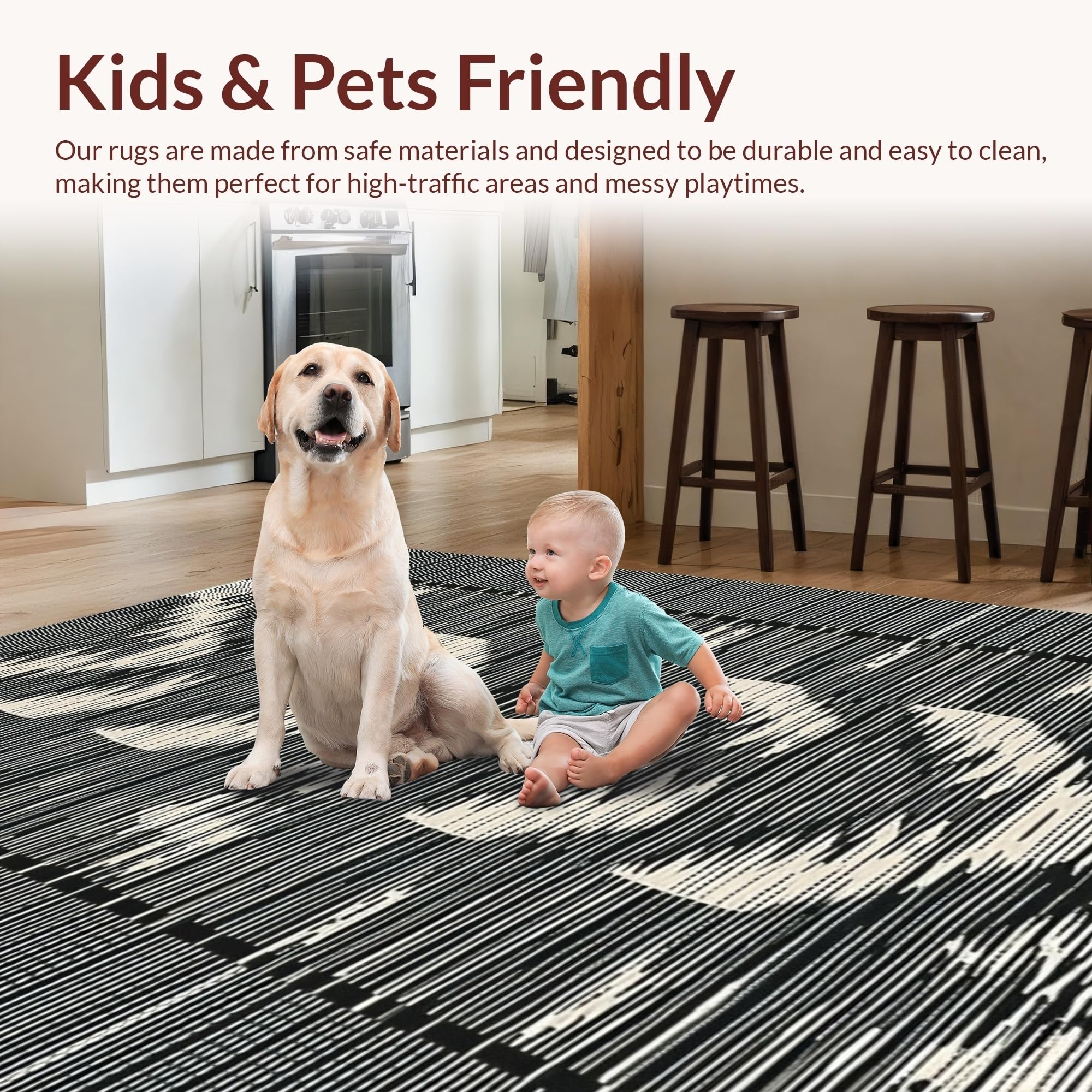 Ultra Soft Area Rug, Non Slip, Stain Resistant, Washable Area Rugs for Living Room, Bedroom, Vibrant Cozy Trellis Composition(Black) Overview: