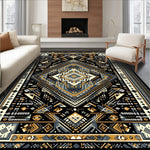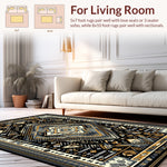 Flatwoven High Traffic Area Rug, Vibrant Cultural Medallion Style, Non Slip, Stain Resistant, Washable Area Rugs for Living Room, Bedroom (Black) Overview: