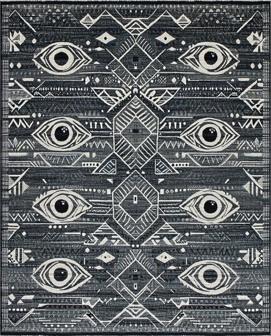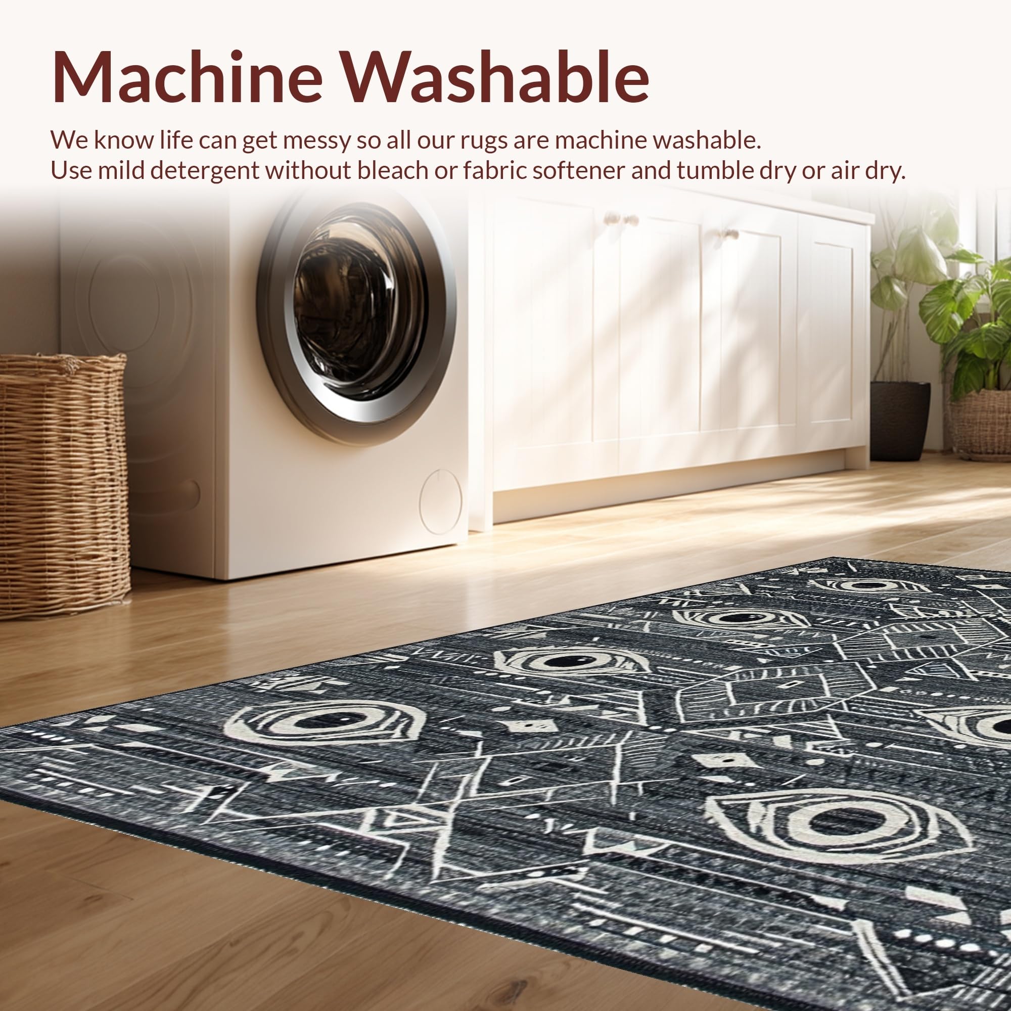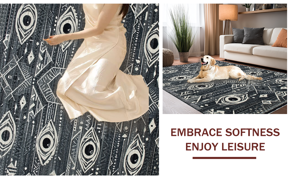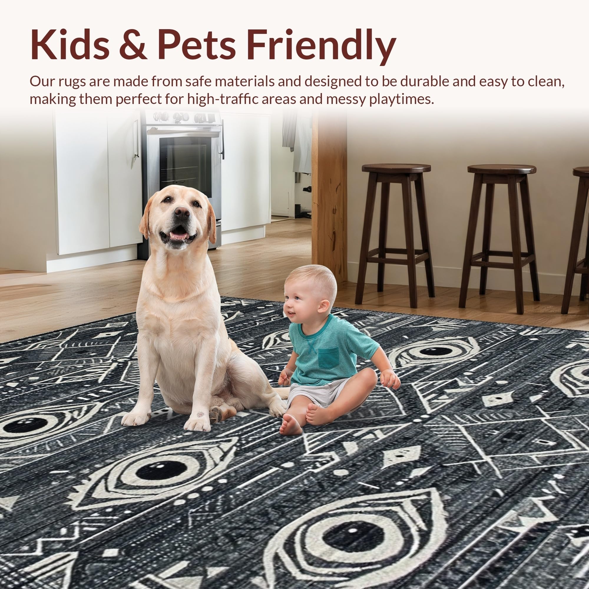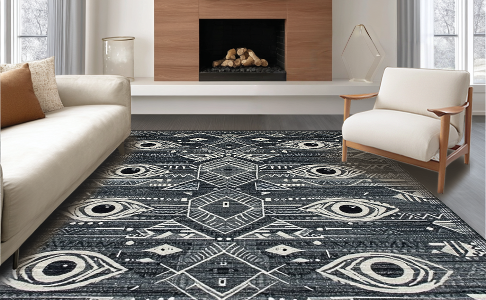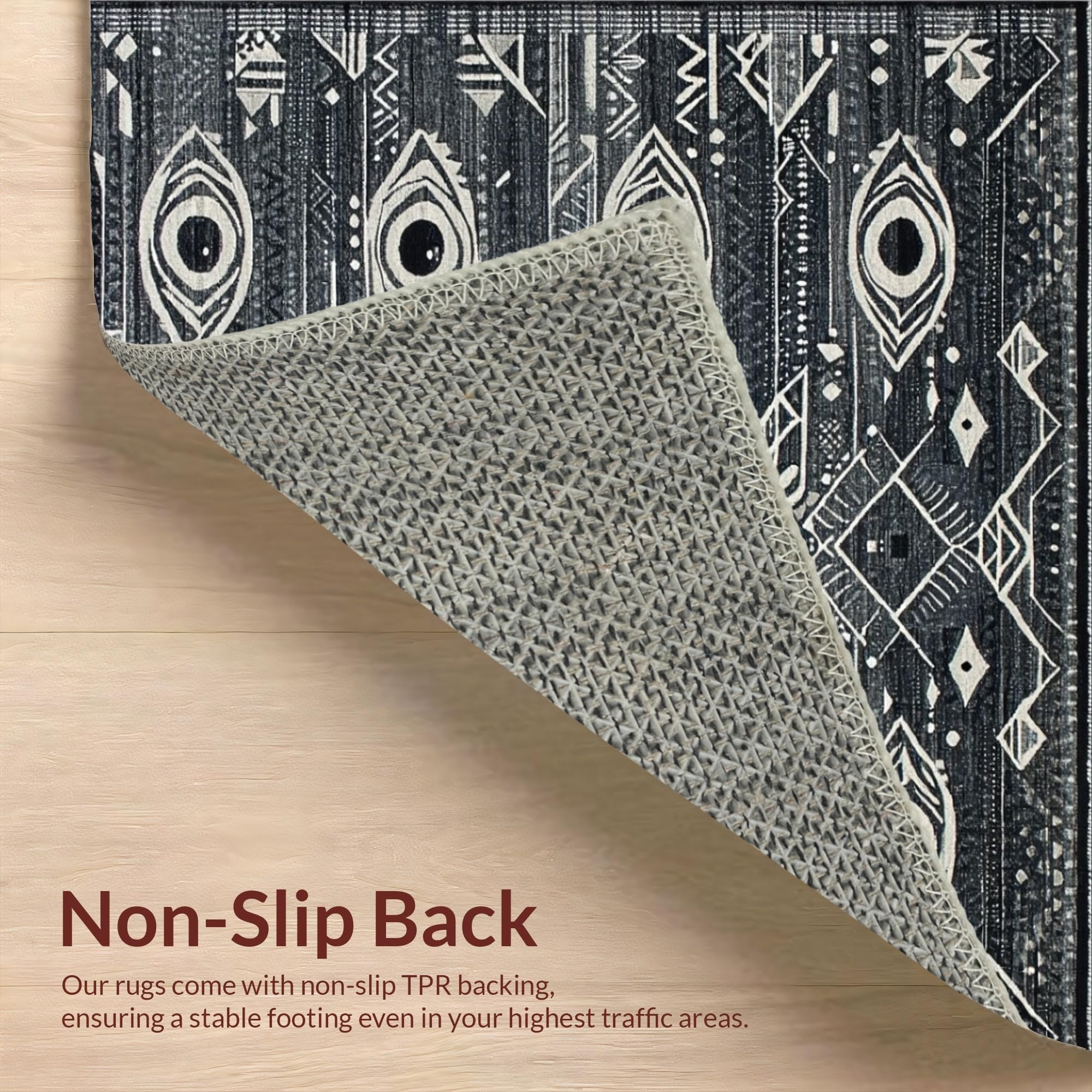 Ultra Soft Area Rug, Non Slip, Stain Resistant, Washable Area Rugs for Living Room, Bedroom, Vibrant Cultural Symbolic Geometry(Black) Overview: