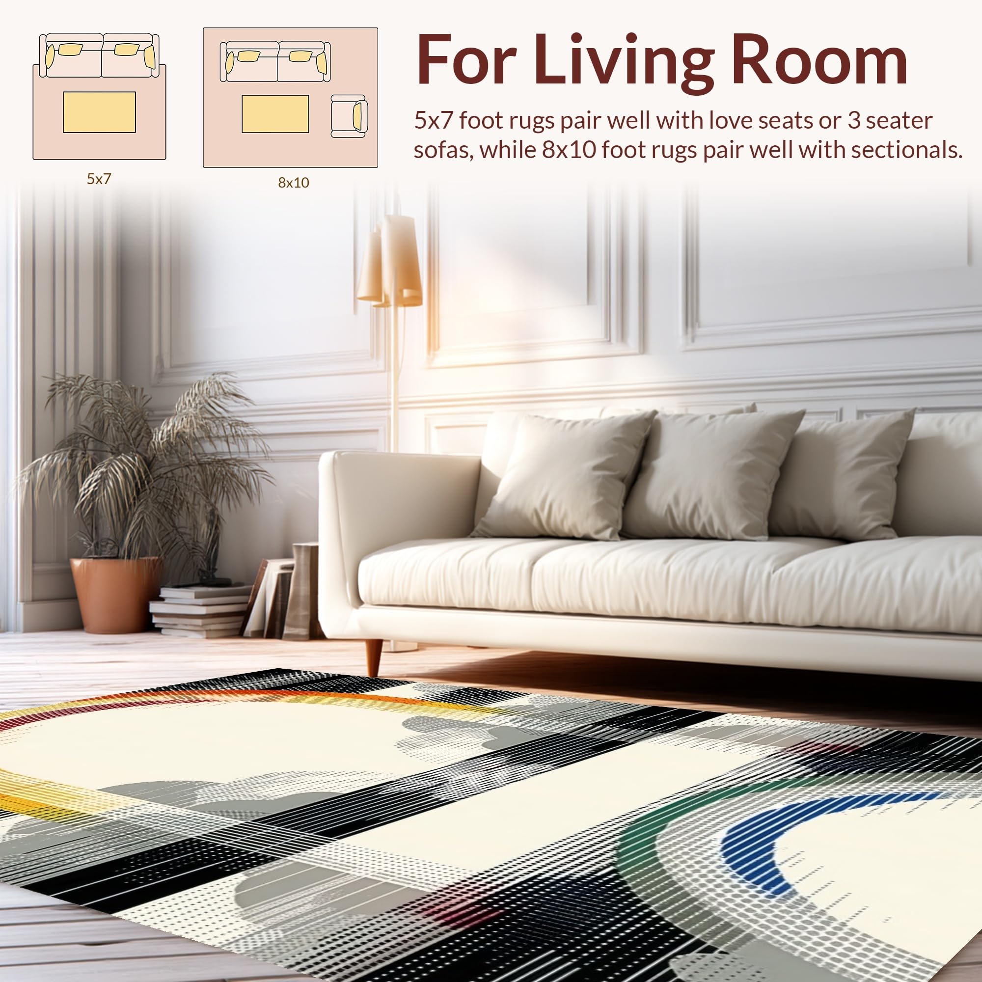 Ultra Soft Area Rug, Non Slip, Stain Resistant, Washable Area Rugs for Living Room, Bedroom, Vibrant Curvilinear Aesthetic Print(Gray) Overview: