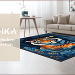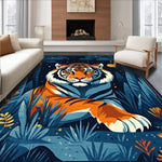 Ultra Soft Area Rug, Non Slip, Stain Resistant, Washable Area Rugs for Living Room, Bedroom, Vibrant Dark Blue Animal Motif(Orange) Overview: