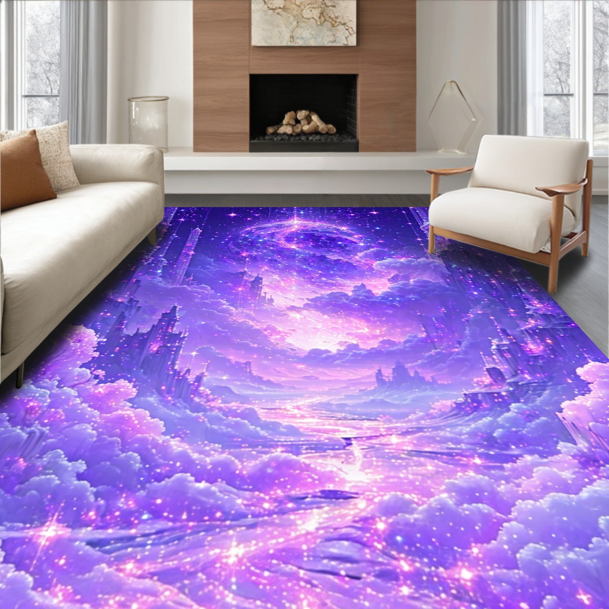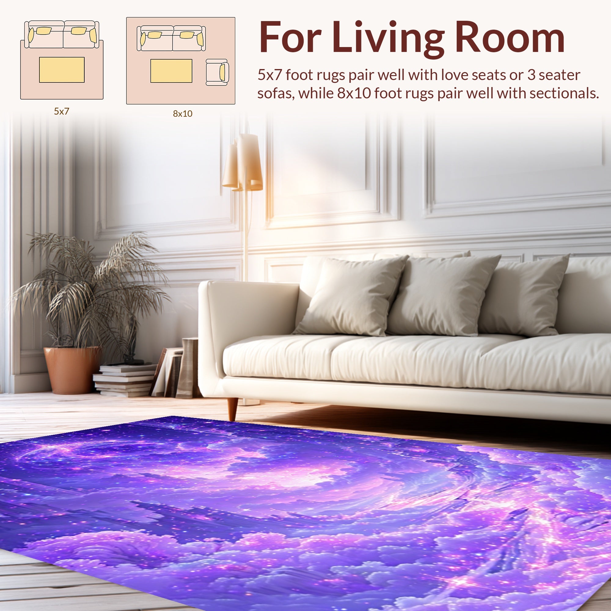 Flatwoven High Traffic Area Rug, Vibrant Dreamy Mythical Creature Design, Non Slip, Stain Resistant, Washable Area Rugs for Living Room, Bedroom (Purple) Overview: