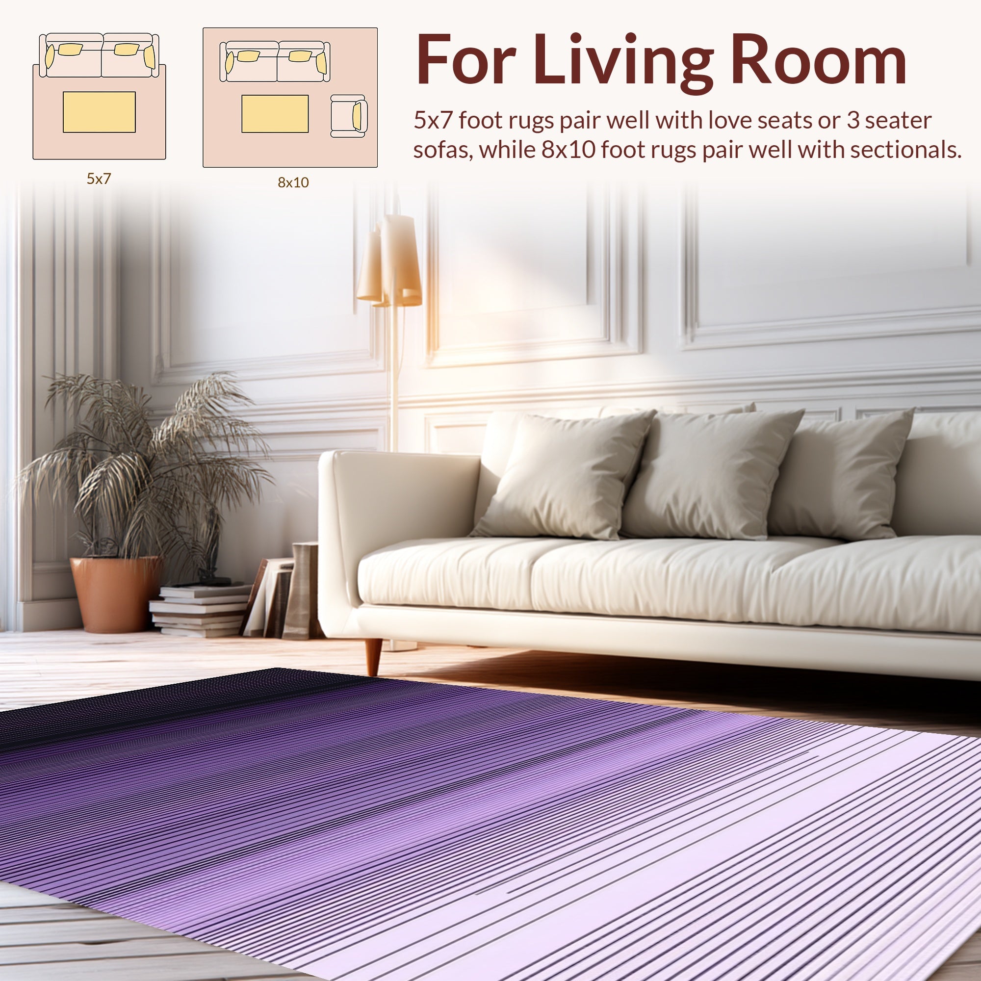 Flatwoven High Traffic Area Rug, Vibrant Dual Tone Design, Non Slip, Stain Resistant, Washable Area Rugs for Living Room, Bedroom (Purple) Overview: