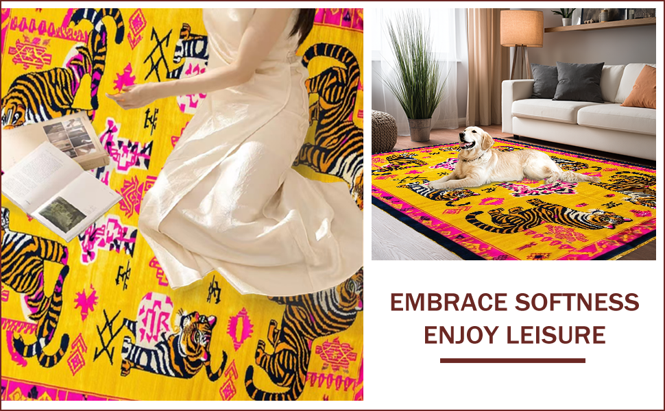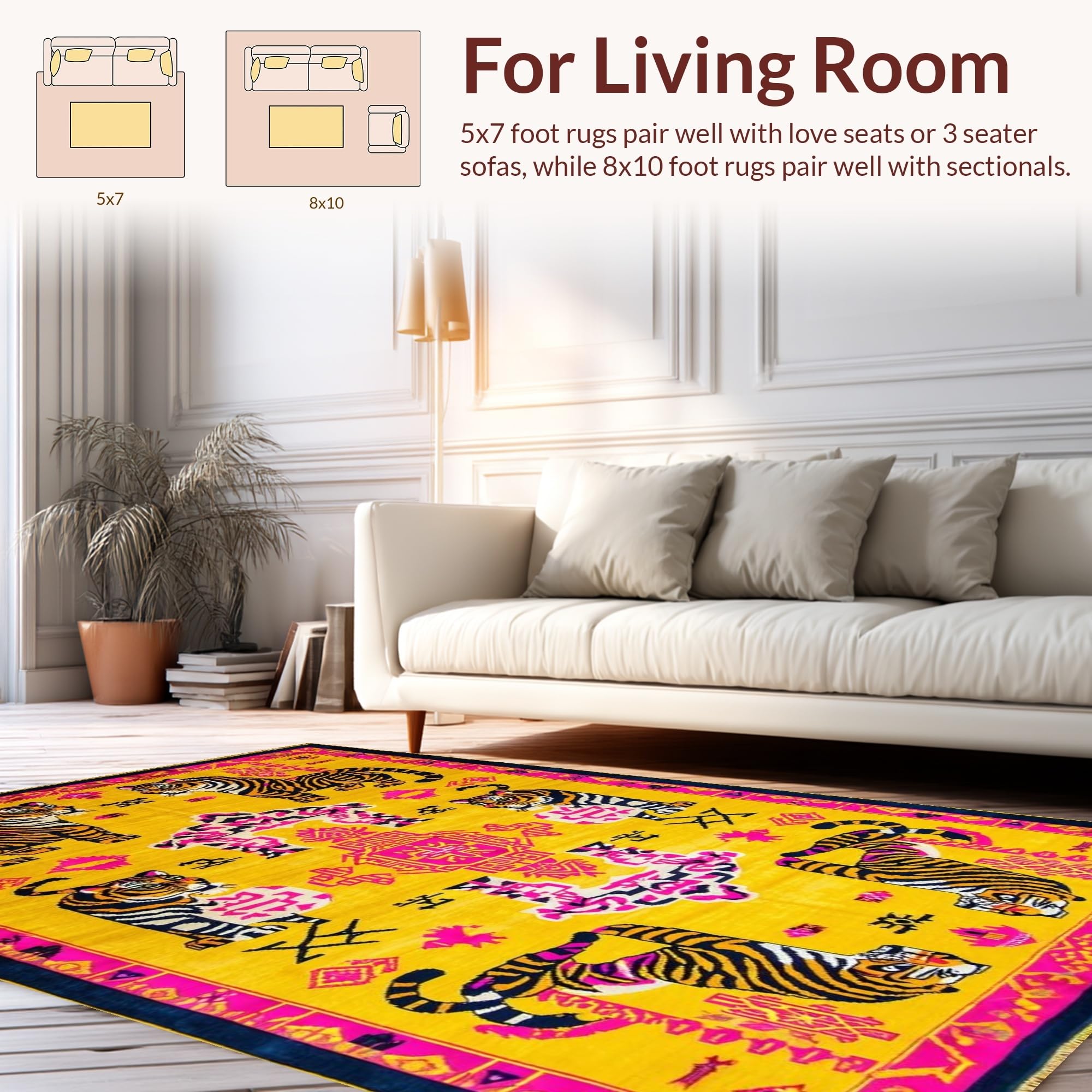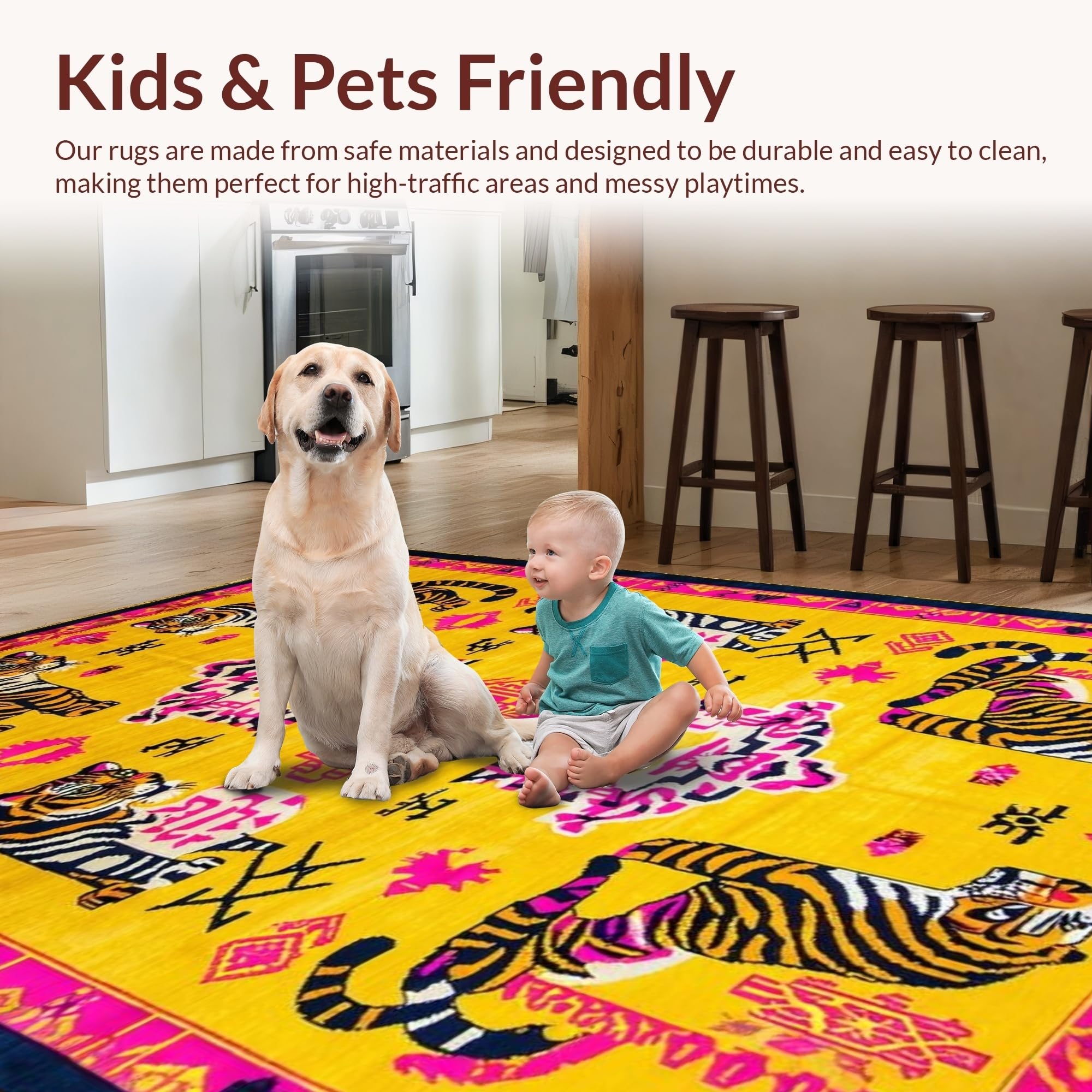 Ultra Soft Area Rug, Non Slip, Stain Resistant, Washable Area Rugs for Living Room, Bedroom, Vibrant Earth Tones Print(Yellow) Overview: