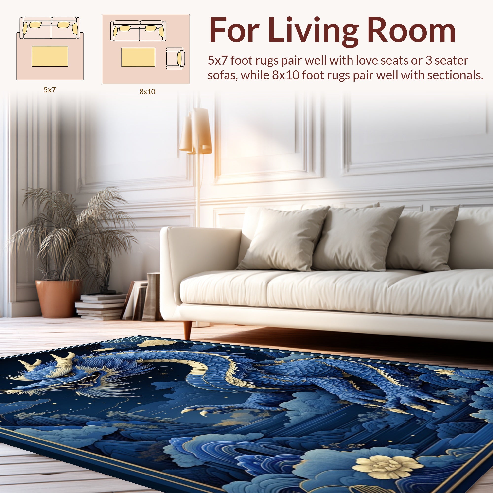 Flatwoven High Traffic Area Rug, Vibrant Earthy Dragon Aesthetic, Non Slip, Stain Resistant, Washable Area Rugs for Living Room, Bedroom (Blue) Overview: