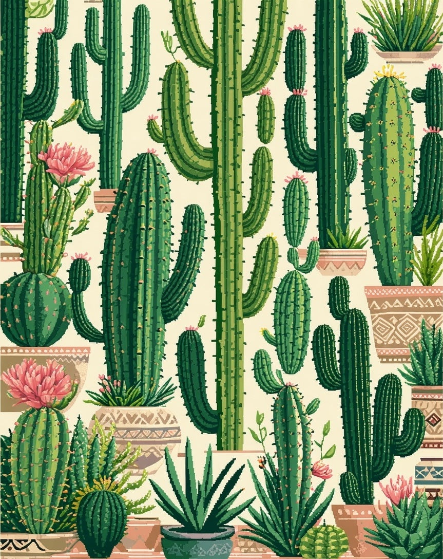 Vibrant Eclectic Desert Flora Motif(Green)