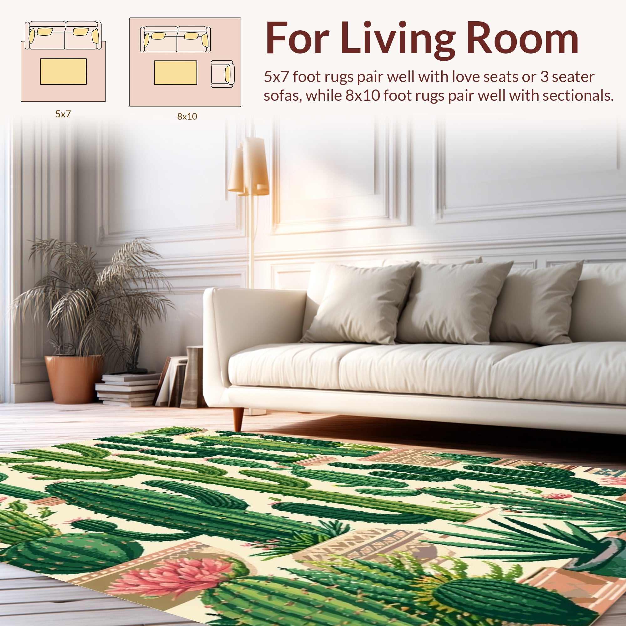 Flatwoven High Traffic Area Rug, Vibrant Eclectic Desert Flora Motif, Non Slip, Stain Resistant, Washable Area Rugs for Living Room, Bedroom (Green) Overview: