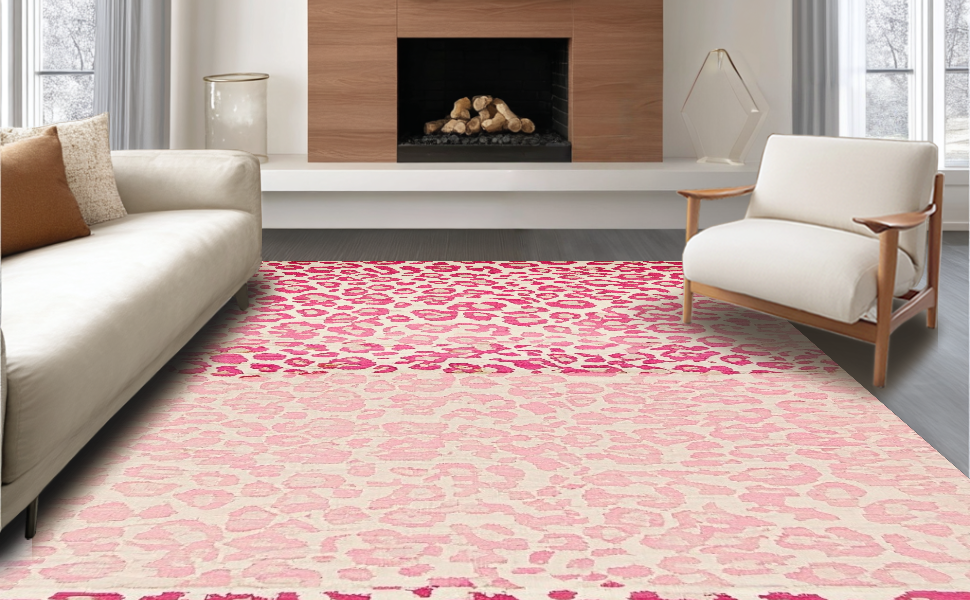 Ultra Soft Area Rug, Non Slip, Stain Resistant, Washable Area Rugs for Living Room, Bedroom, Vibrant Eclectic Exotic Motif(Pink) Overview: