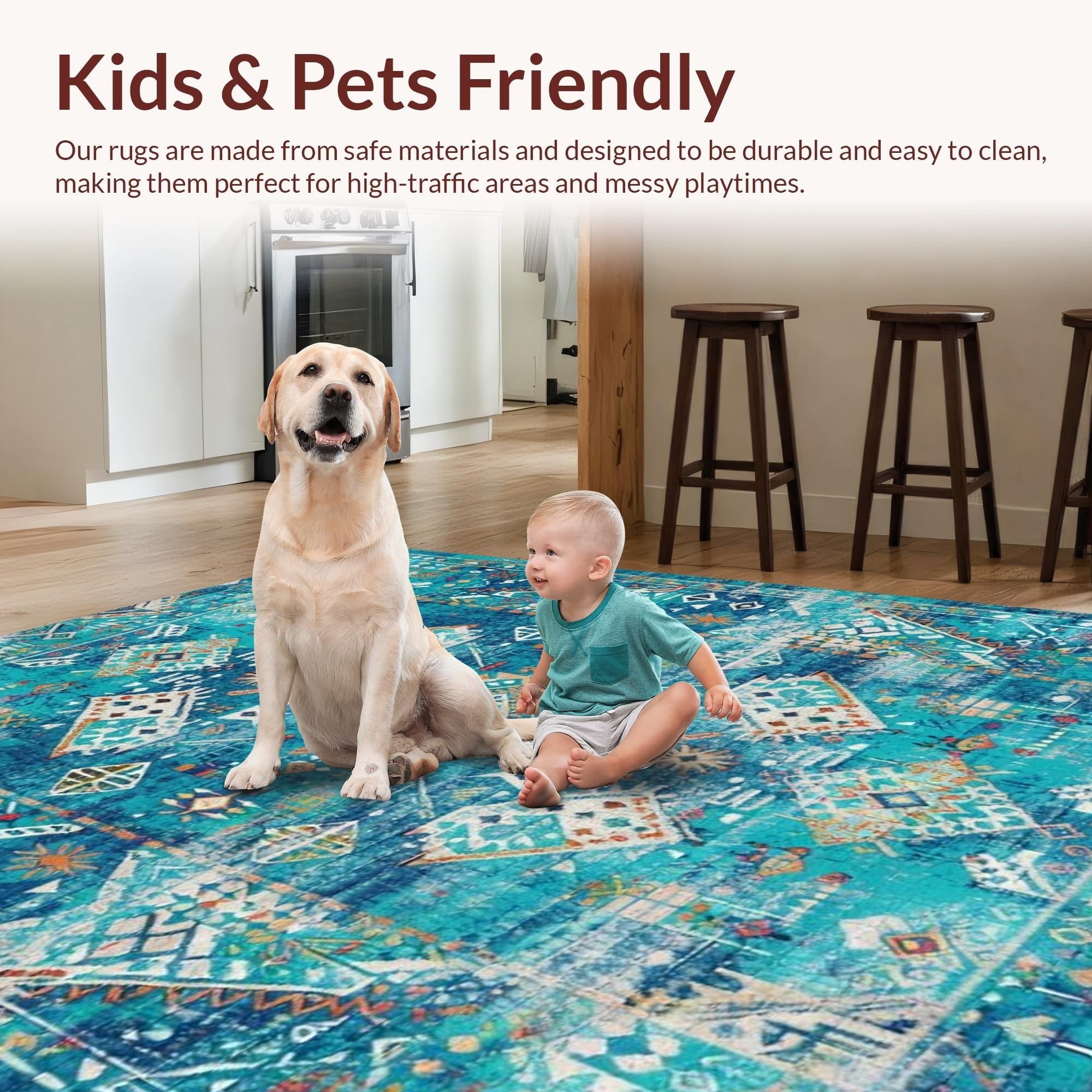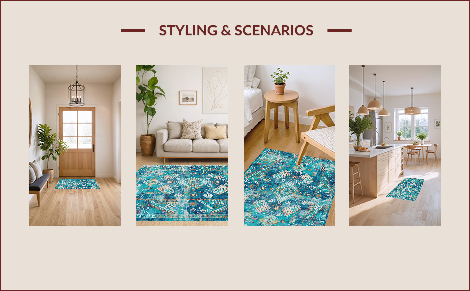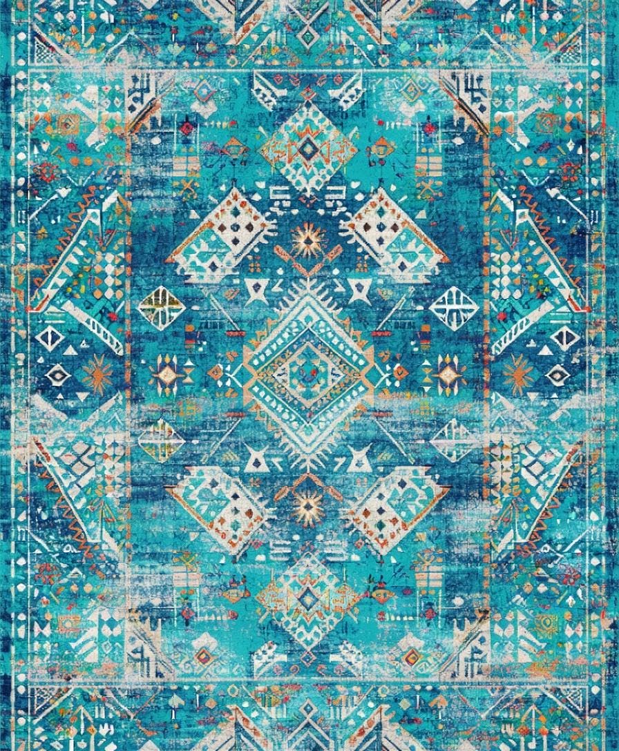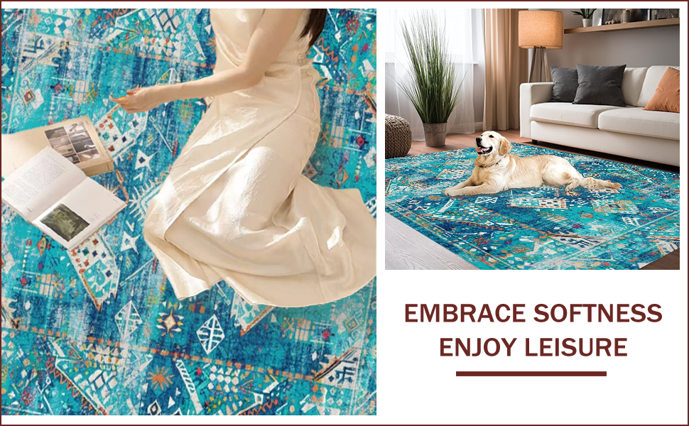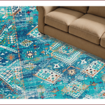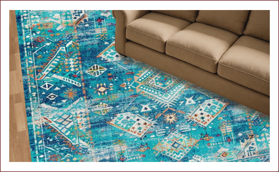 Ultra Soft Area Rug, Non Slip, Stain Resistant, Washable Area Rugs for Living Room, Bedroom, Vibrant Ethnic Patterned Echo(Blue) Overview: