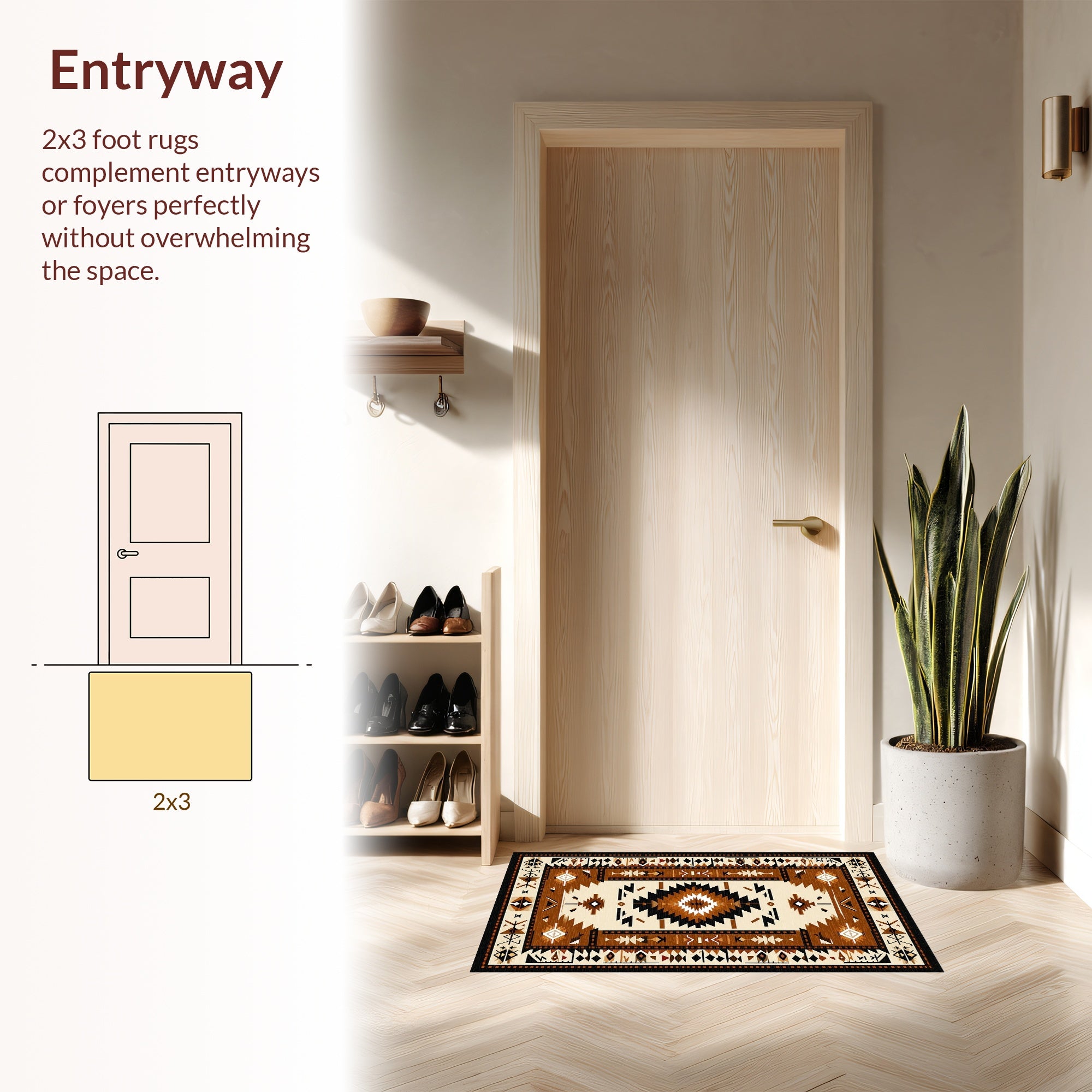 Flatwoven High Traffic Area Rug, Vibrant Ethnic Symbolic Arrangement, Non Slip, Stain Resistant, Washable Area Rugs for Living Room, Bedroom (Beige) Overview: