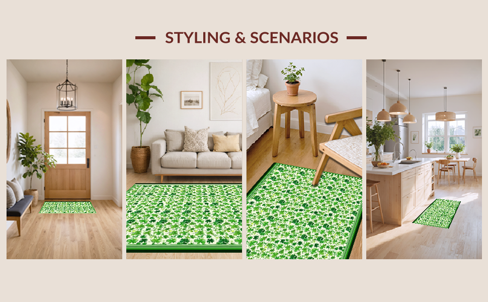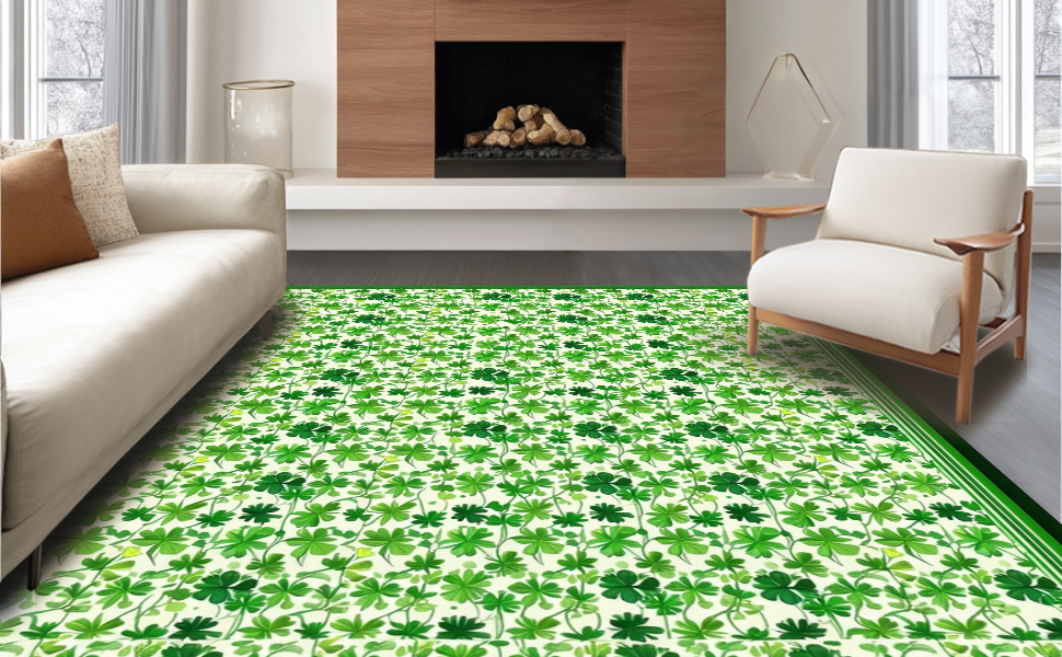 Ultra Soft Area Rug, Non Slip, Stain Resistant, Washable Area Rugs for Living Room, Bedroom, Vibrant Festive Iconic Elements(Green) Overview: