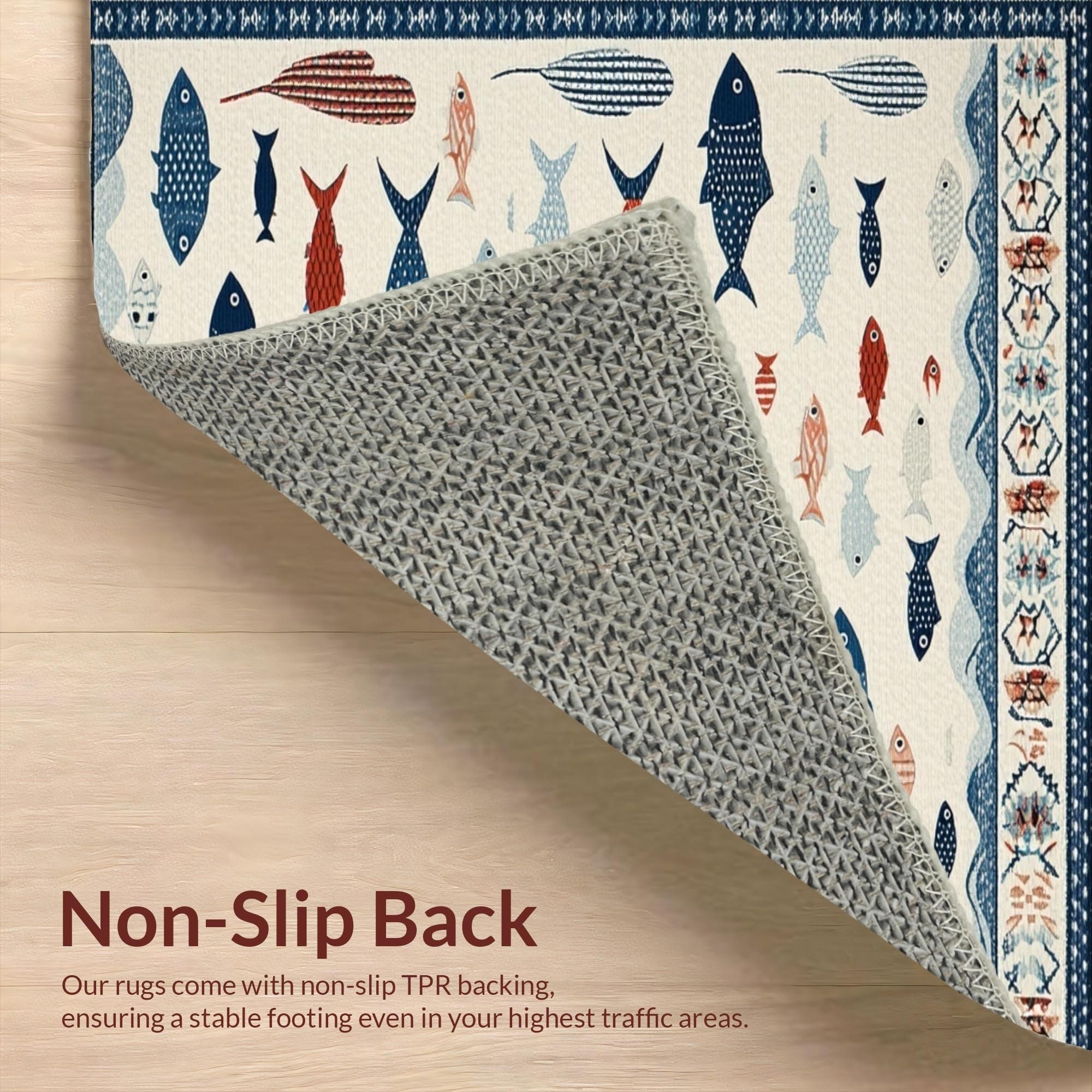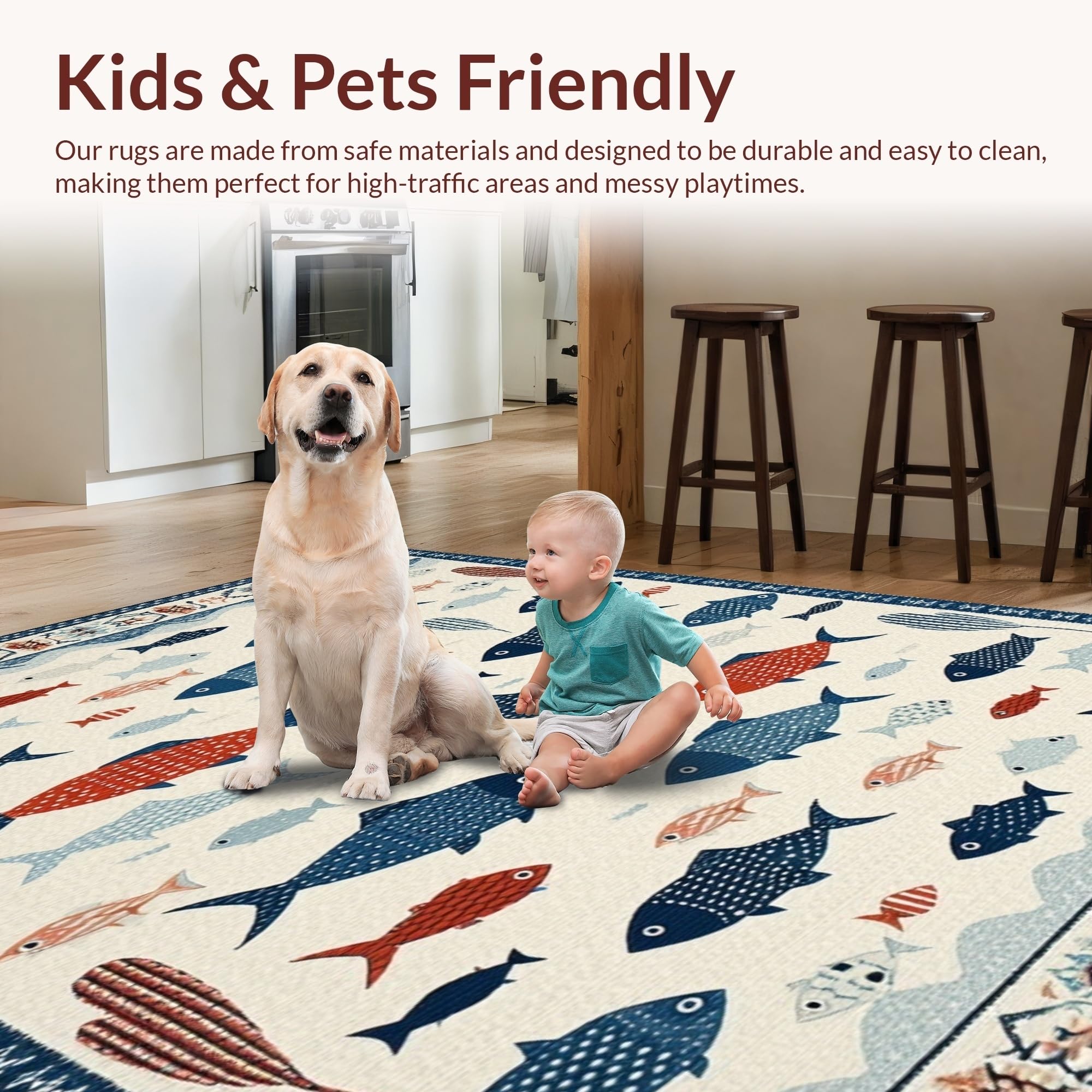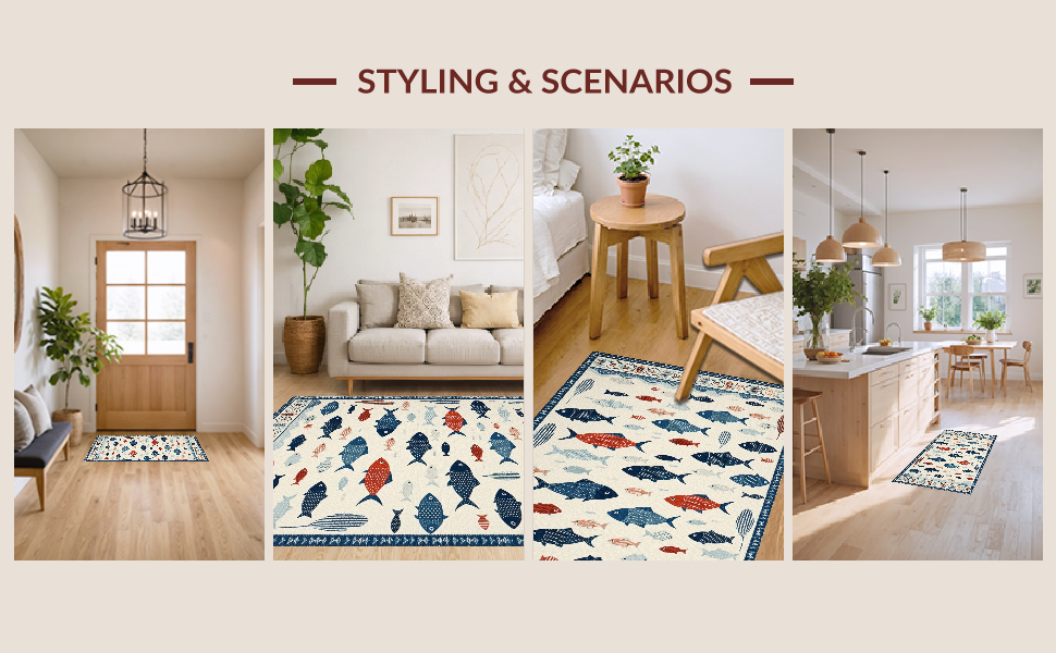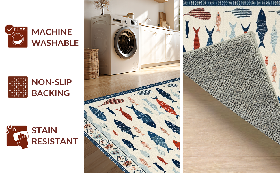 Ultra Soft Area Rug, Non Slip, Stain Resistant, Washable Area Rugs for Living Room, Bedroom, Vibrant Fish Motif Contemporary Flair(White) Overview: