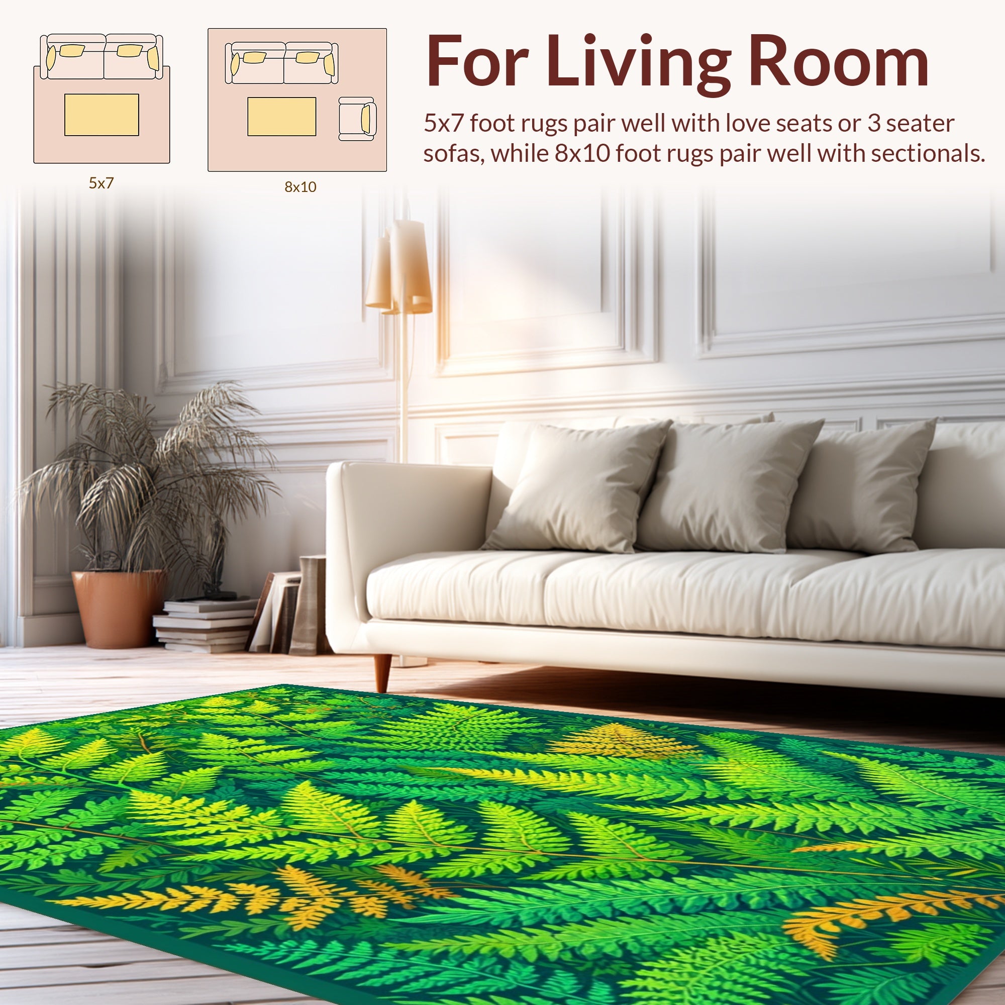 Flatwoven High Traffic Area Rug, Vibrant Floral Cartoon Theme, Non Slip, Stain Resistant, Washable Area Rugs for Living Room, Bedroom (Green) Overview: