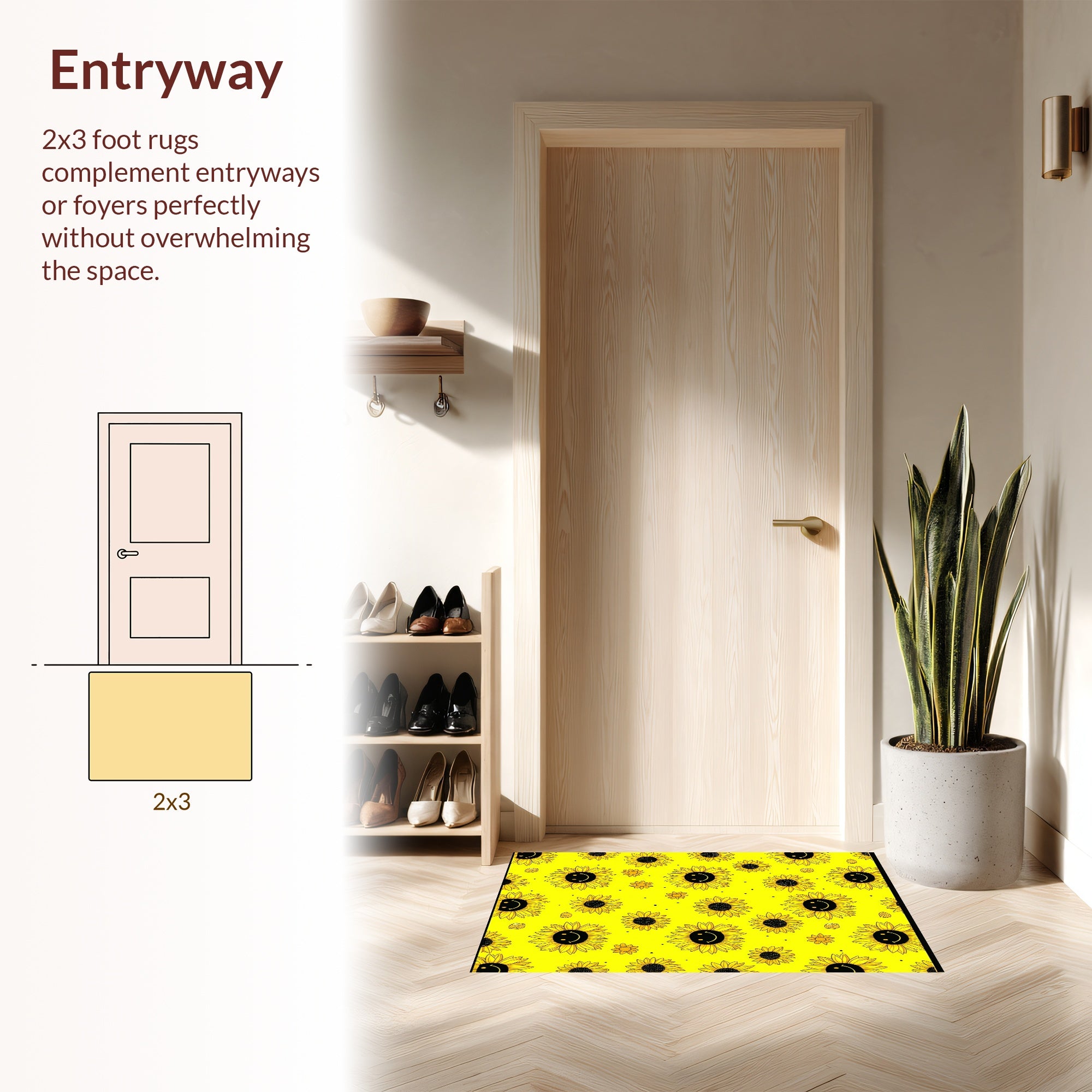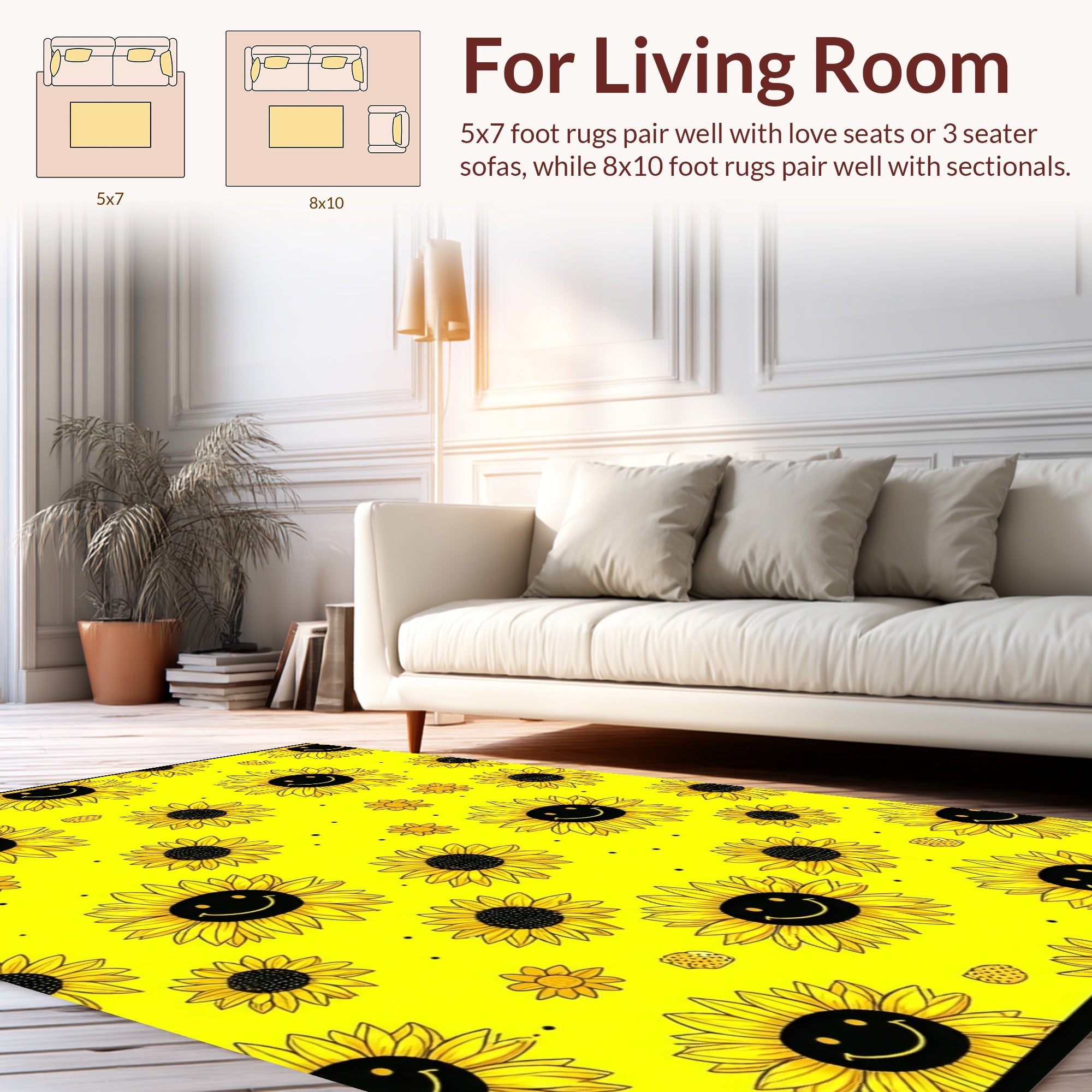 Flatwoven High Traffic Area Rug, Vibrant Floral Cheerful Aesthetic, Non Slip, Stain Resistant, Washable Area Rugs for Living Room, Bedroom (Yellow) Overview: