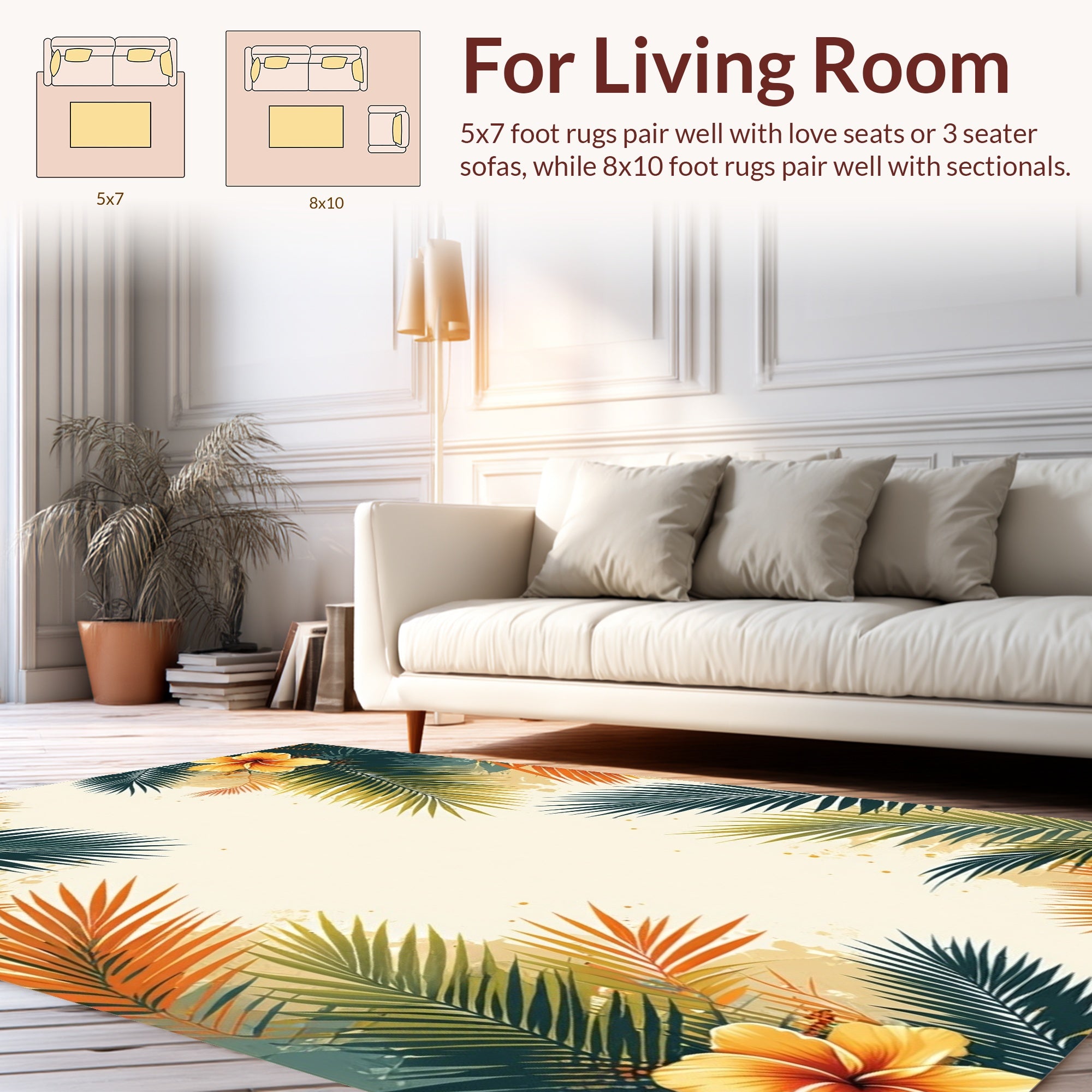 Flatwoven High Traffic Area Rug, Vibrant Floral Charm, Non Slip, Stain Resistant, Washable Area Rugs for Living Room, Bedroom (Beige) Overview: