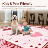 Ultra Soft Area Rug, Non Slip, Stain Resistant, Washable Area Rugs for Living Room, Bedroom, Vibrant Floral Heart Patterned Piece(Red) Overview: