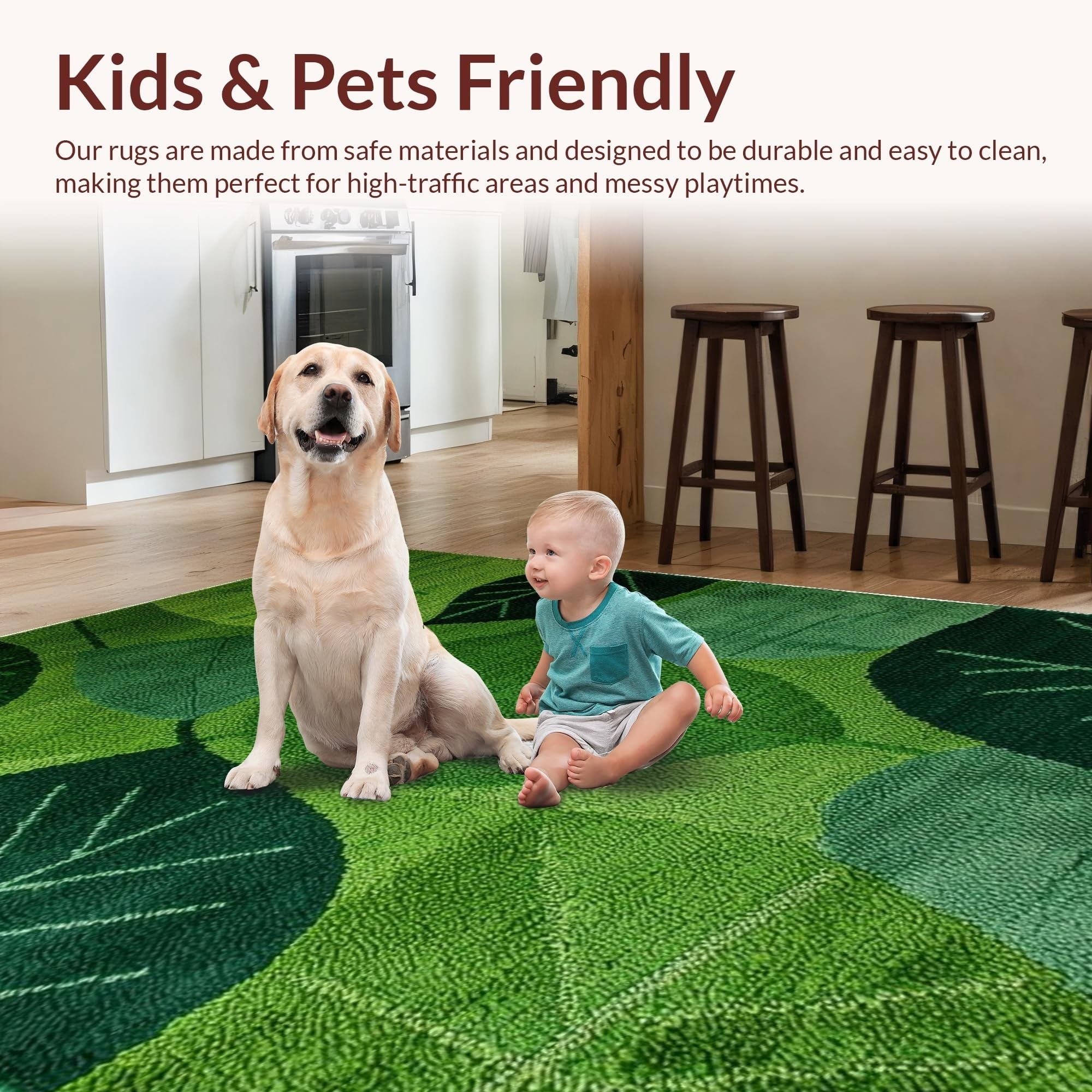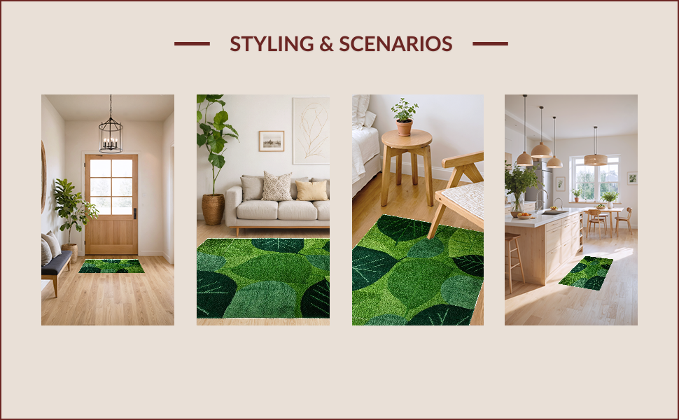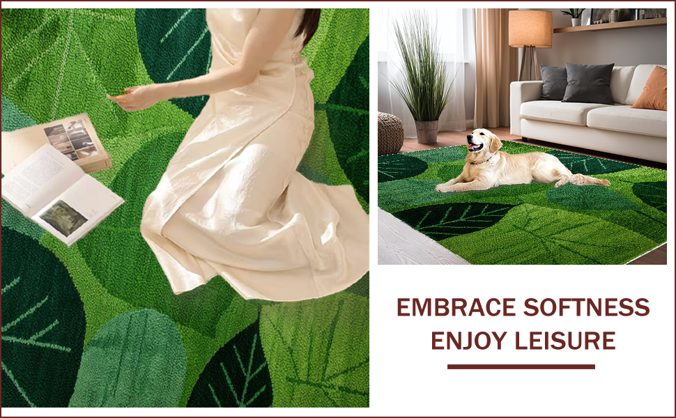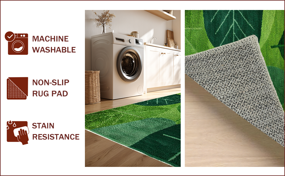 Ultra Soft Area Rug, Non Slip, Stain Resistant, Washable Area Rugs for Living Room, Bedroom, Vibrant Floral Leaf Motif Style(Green) Overview: