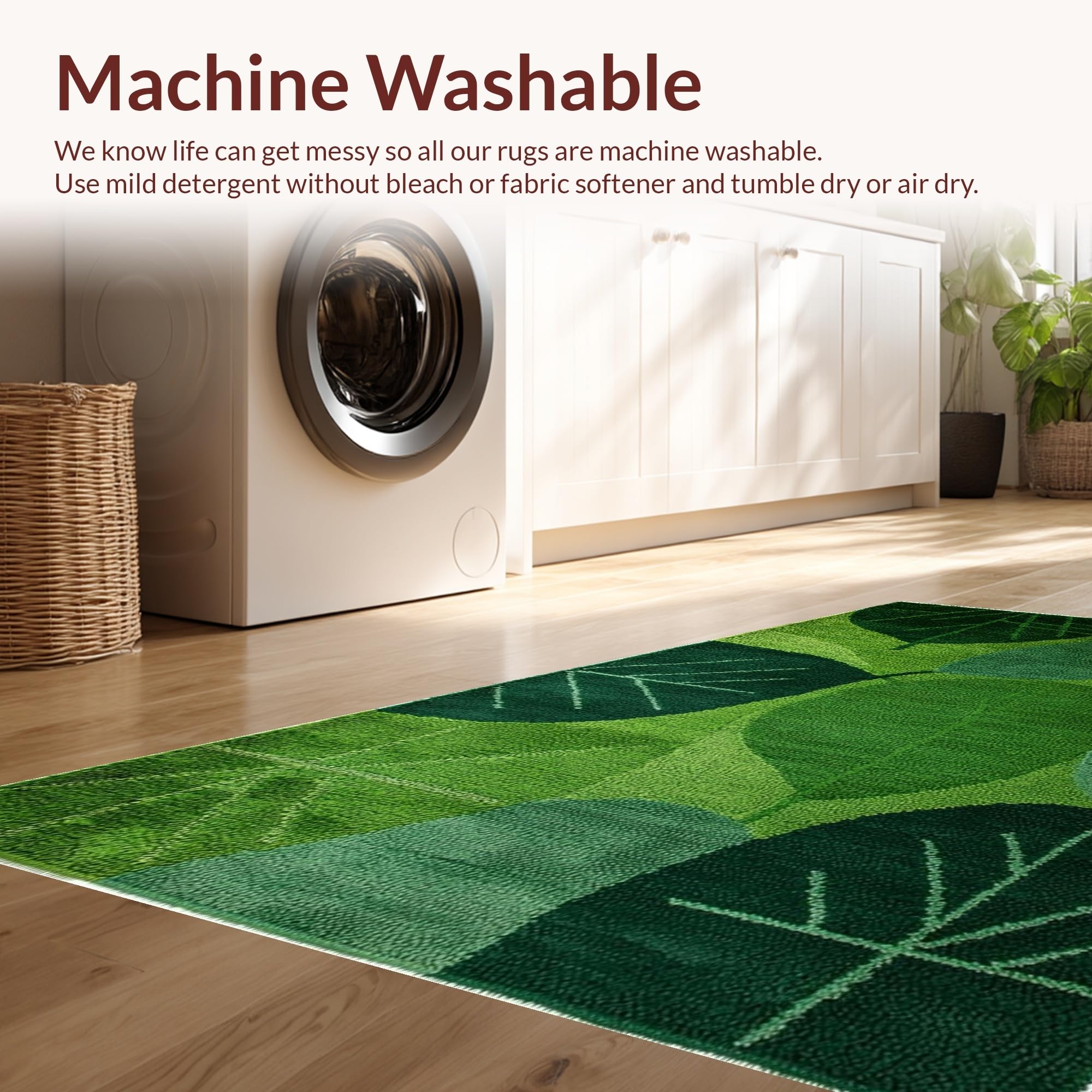 - Machine Washable: Our rugs can be easily thrown in the wash machine.