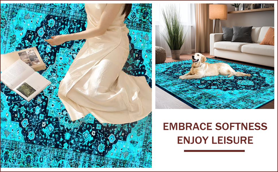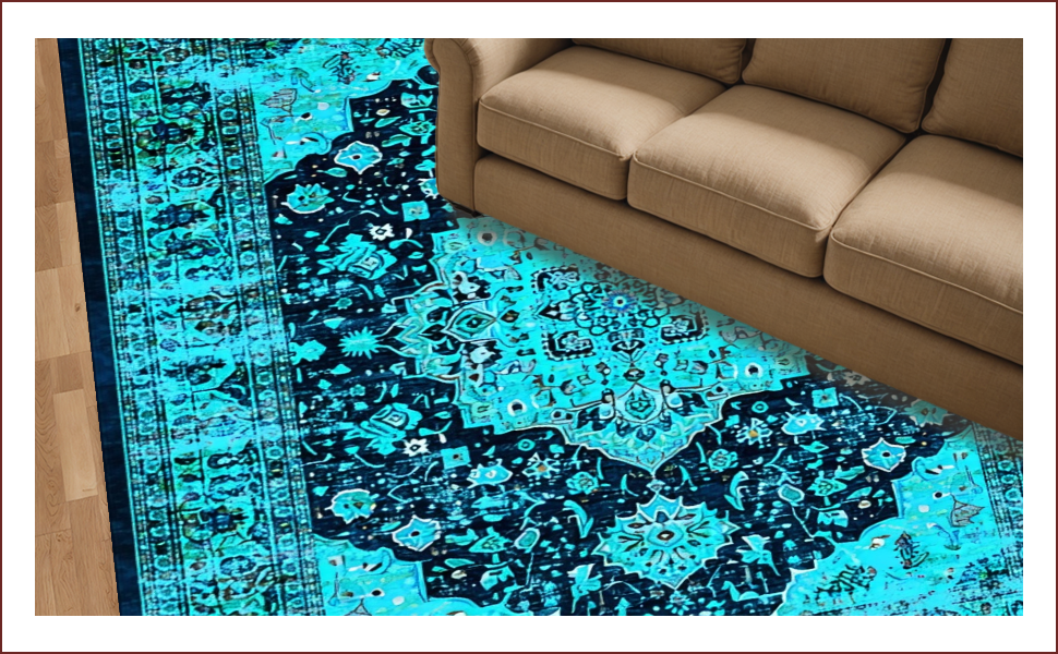 Ultra Soft Area Rug, Non Slip, Stain Resistant, Washable Area Rugs for Living Room, Bedroom, Vibrant Floral Medallion Trellis(Blue) Overview: