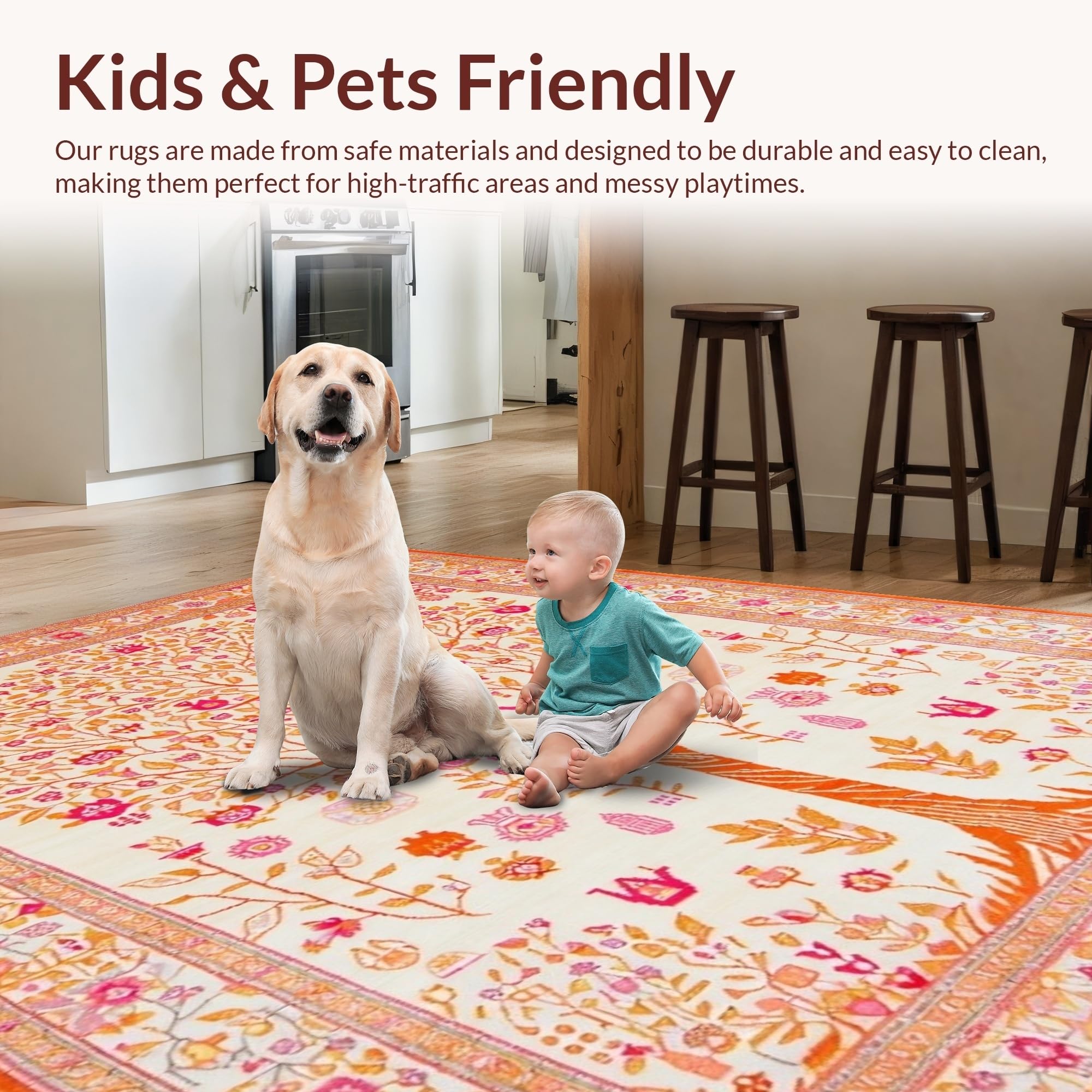 Ultra Soft Area Rug, Non Slip, Stain Resistant, Washable Area Rugs for Living Room, Bedroom, Vibrant Floral Tree Motif(White) Overview: