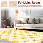 Flatwoven High Traffic Area Rug, Vibrant Flower Design with Rustic Appeal, Non Slip, Stain Resistant, Washable Area Rugs for Living Room, Bedroom (Yellow) Overview: