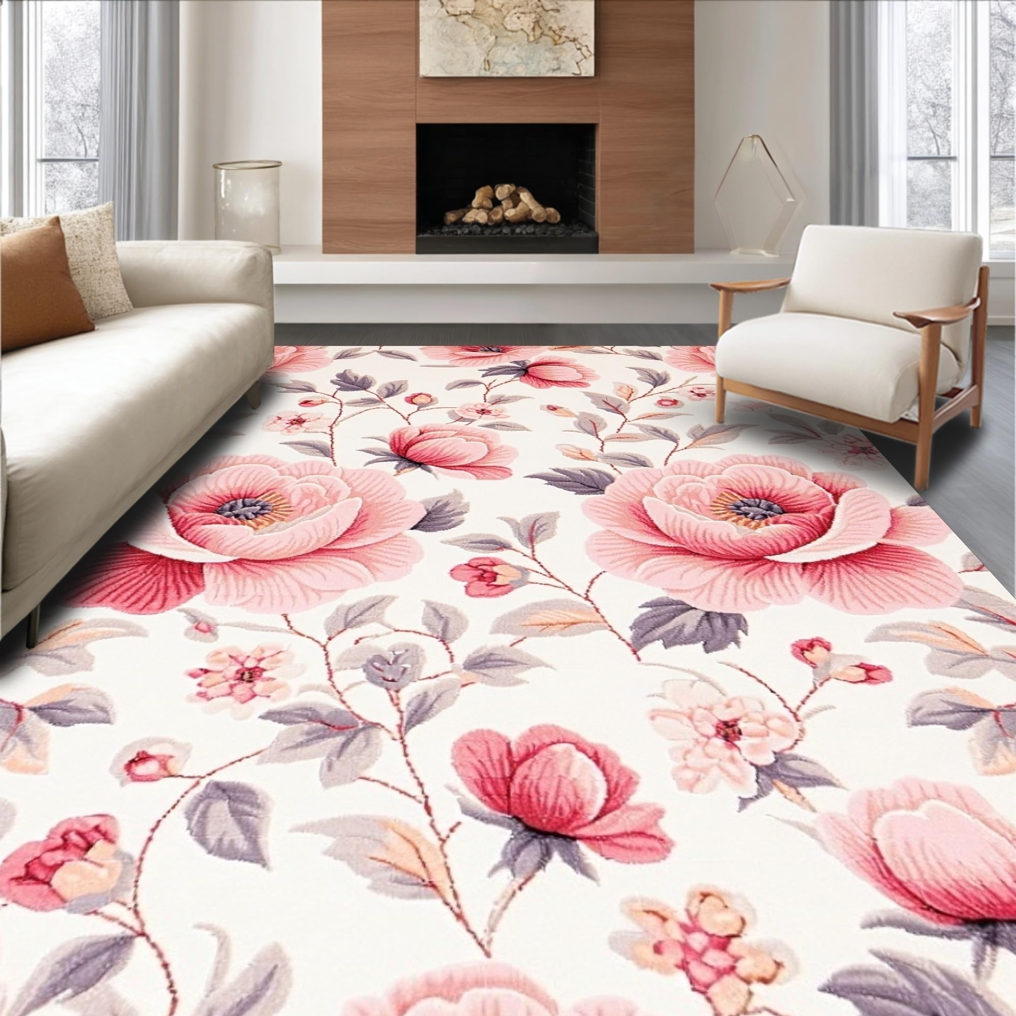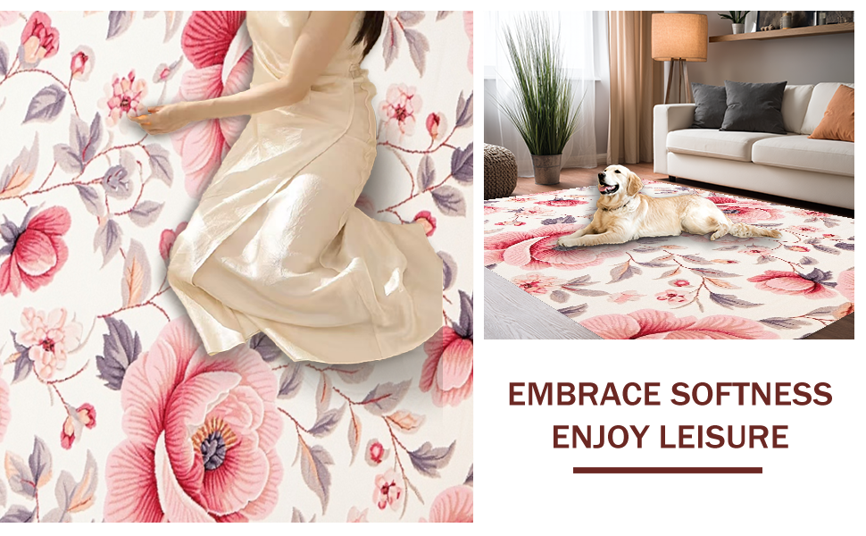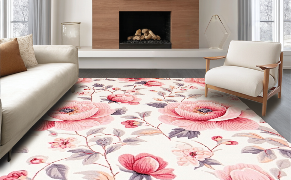 Ultra Soft Area Rug, Non Slip, Stain Resistant, Washable Area Rugs for Living Room, Bedroom, Vibrant Fluffy Retro Inspired Look(Pink) Overview: