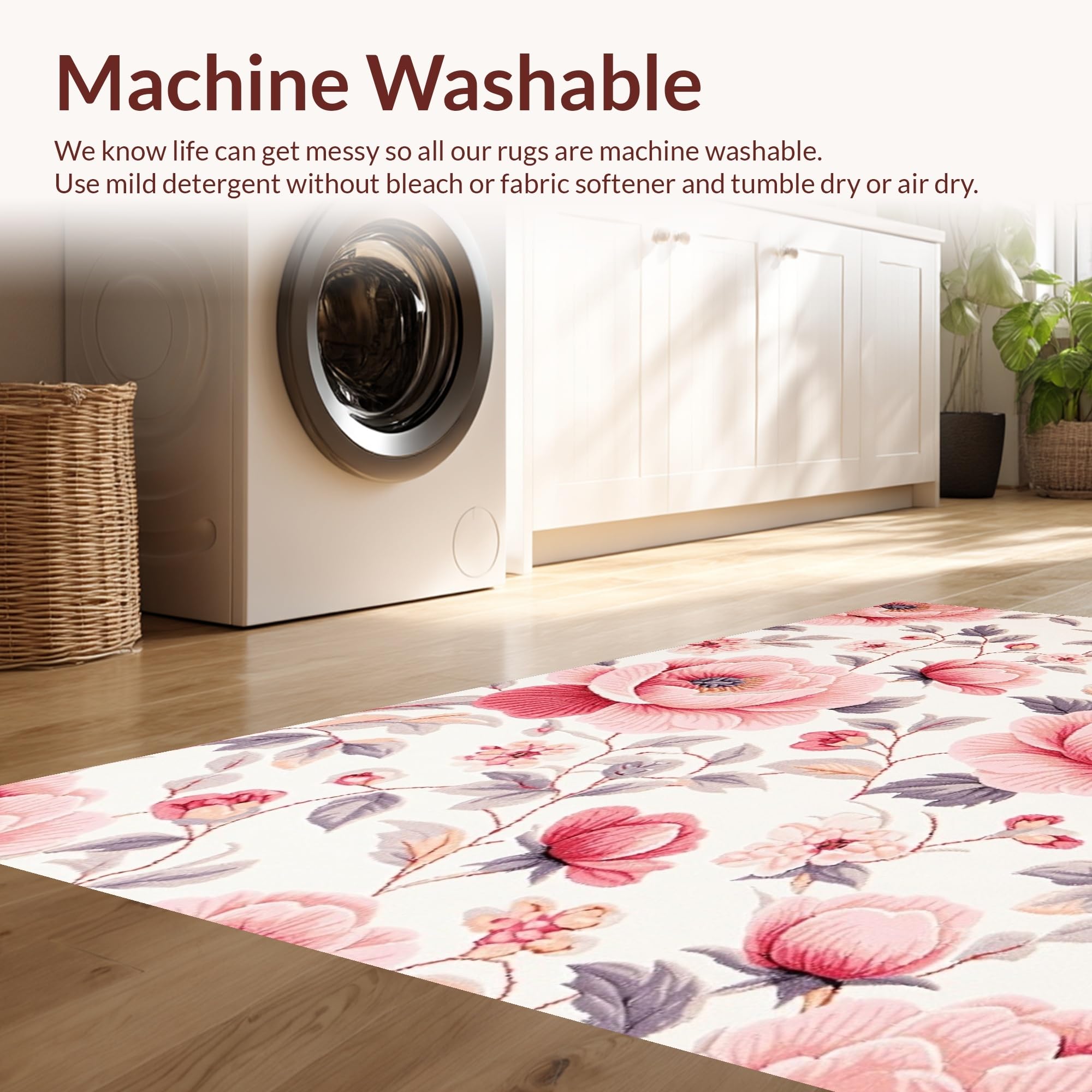 - Machine Washable: Our rugs can be easily thrown in the wash machine.