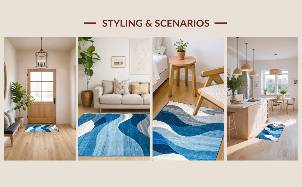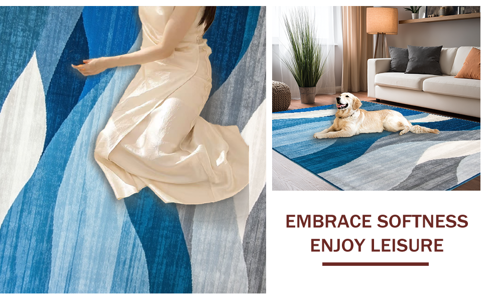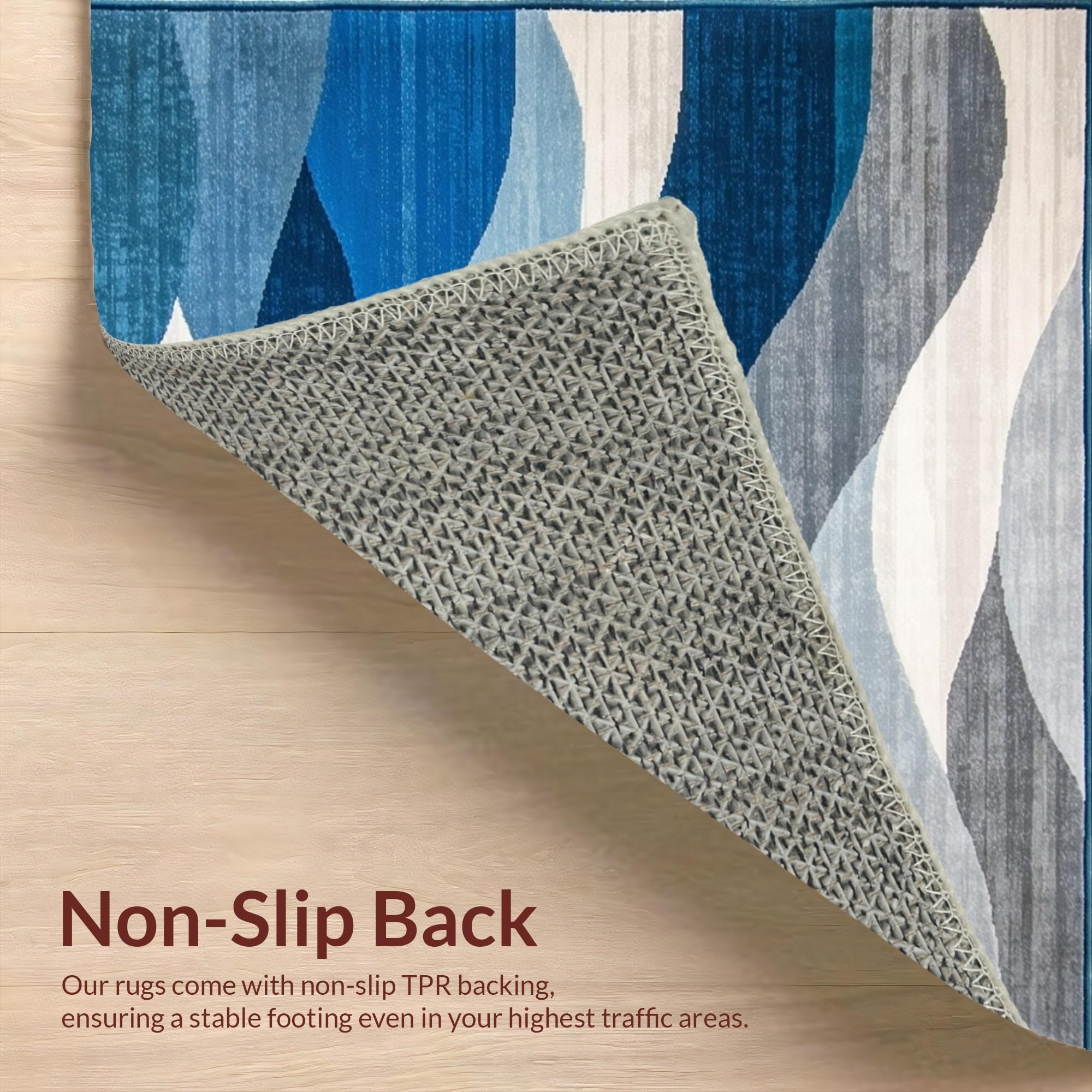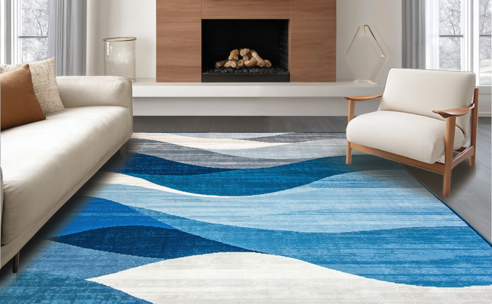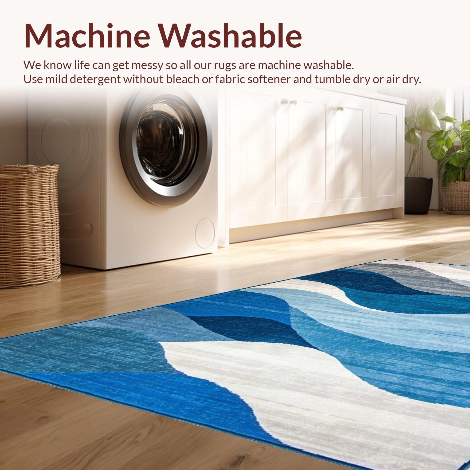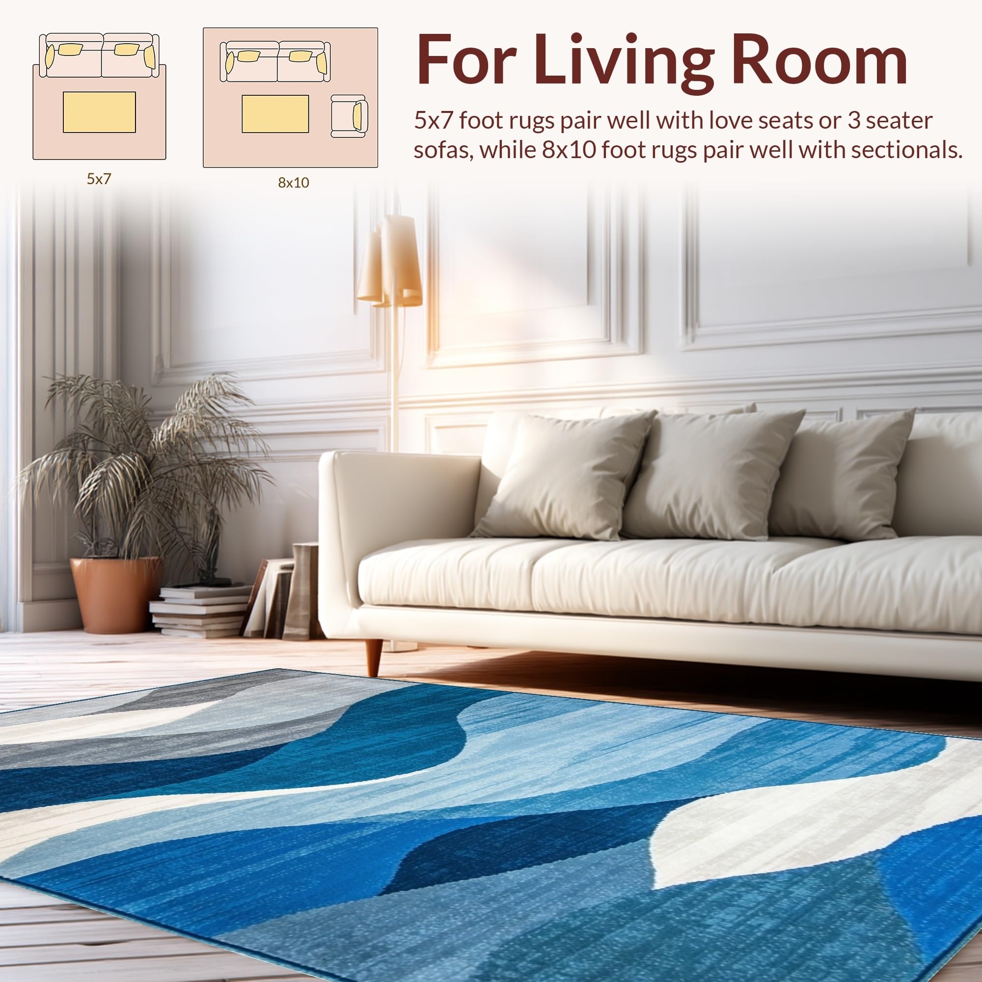 Ultra Soft Area Rug, Non Slip, Stain Resistant, Washable Area Rugs for Living Room, Bedroom, Vibrant Fluid Brushstroke Composition(Blue) Overview: