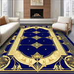 Flatwoven High Traffic Area Rug, Vibrant Geometric Navy Motif, Non Slip, Stain Resistant, Washable Area Rugs for Living Room, Bedroom (Blue) Overview: