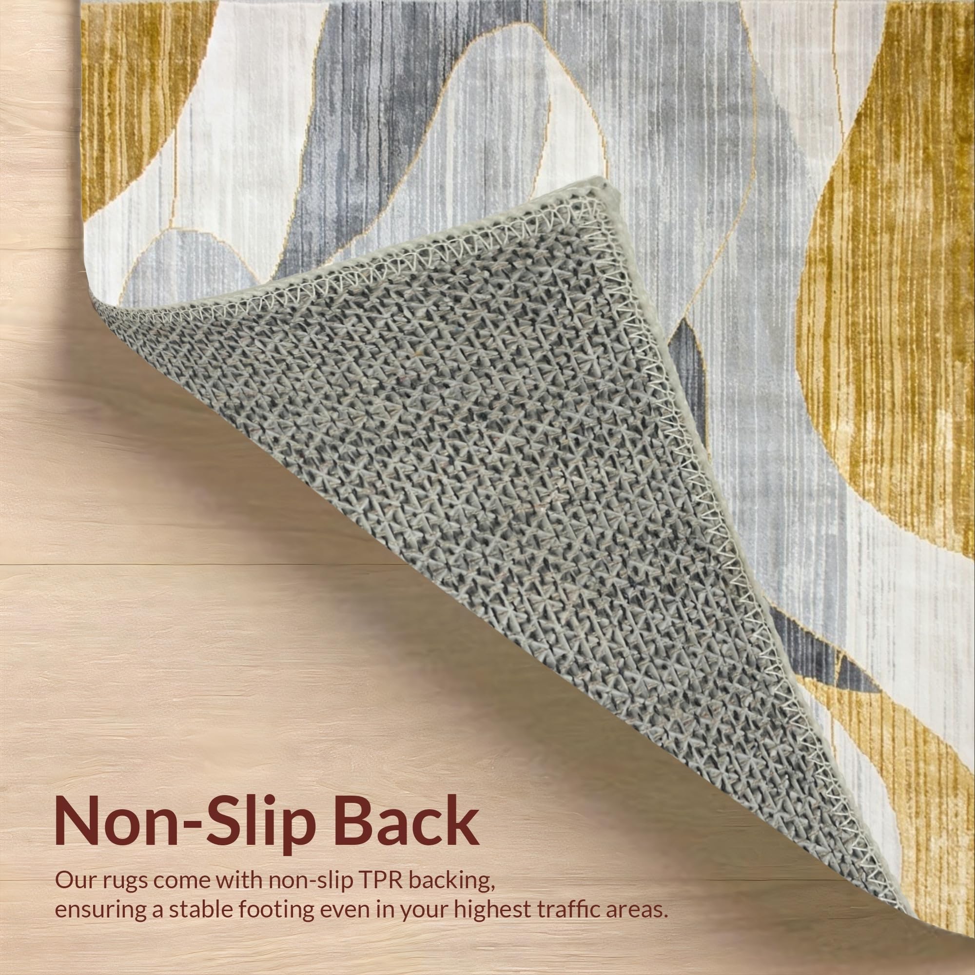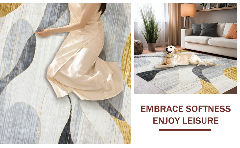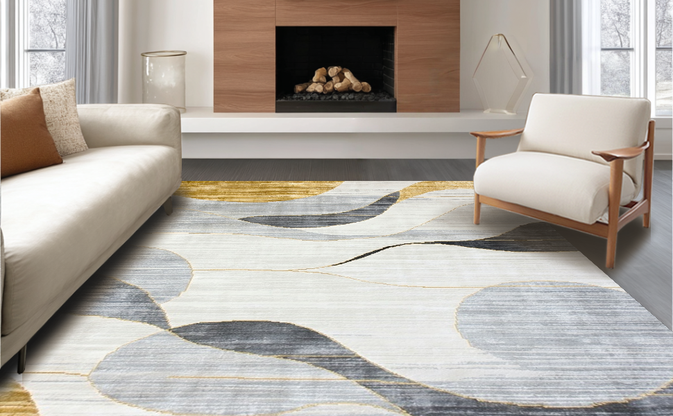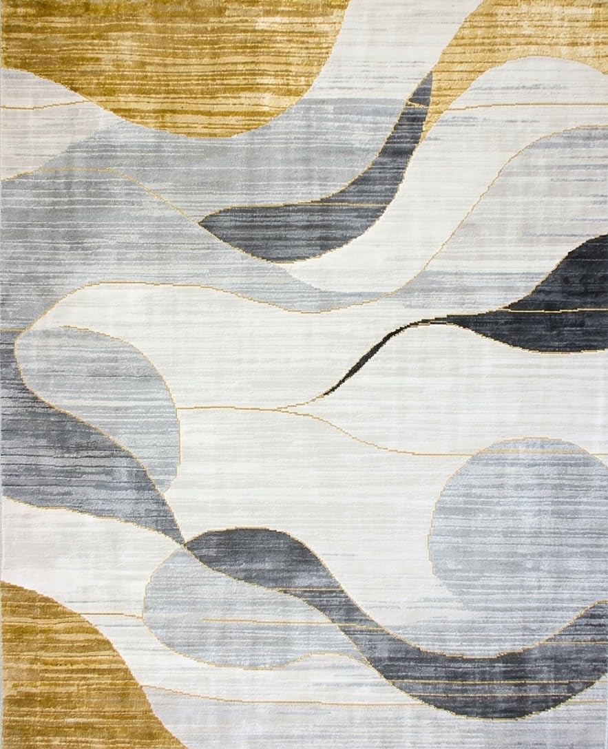 Ultra Soft Area Rug, Non Slip, Stain Resistant, Washable Area Rugs for Living Room, Bedroom, Vibrant Gold-Infused Abstract Art(Beige) Overview: