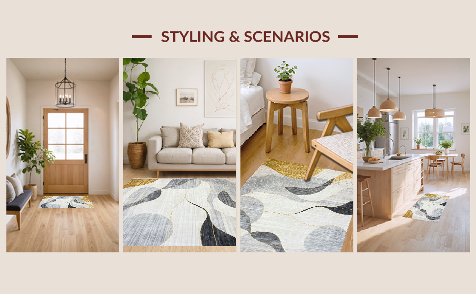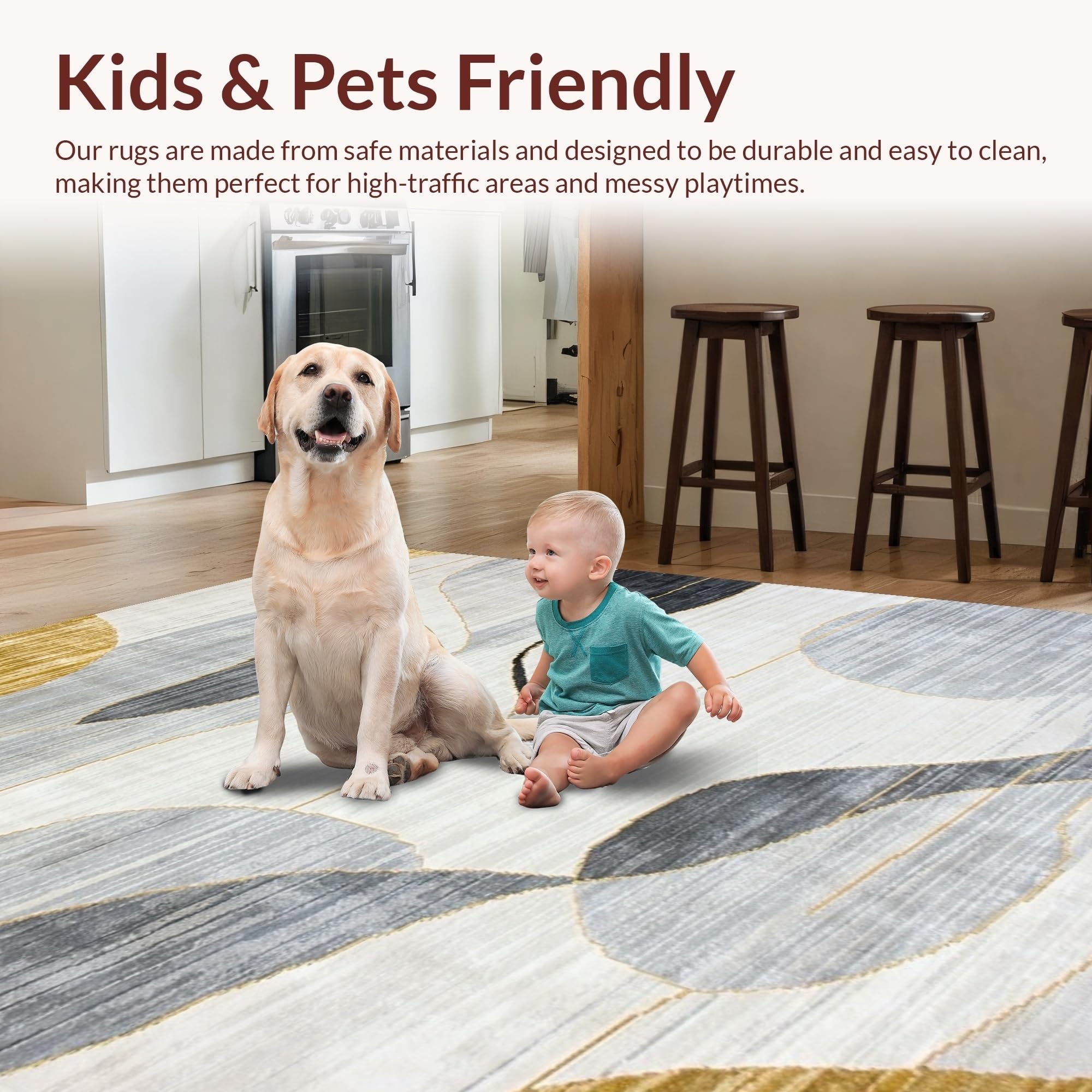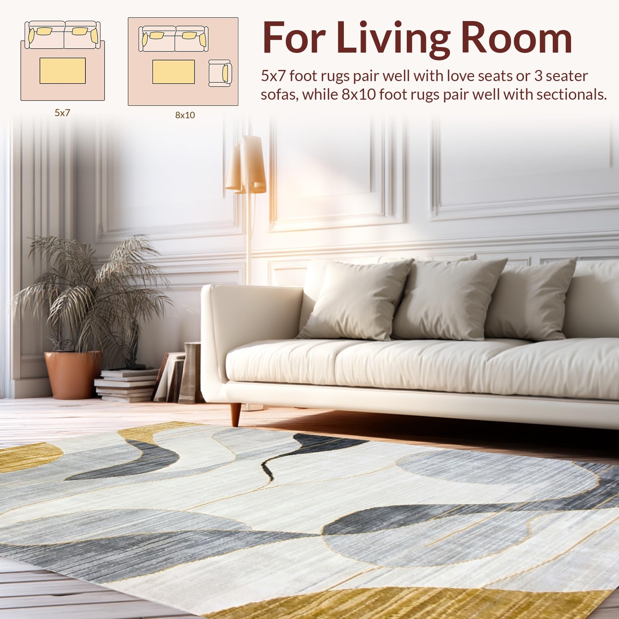 Ultra Soft Area Rug, Non Slip, Stain Resistant, Washable Area Rugs for Living Room, Bedroom, Vibrant Gold-Infused Abstract Art(Beige) Overview: