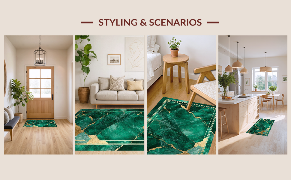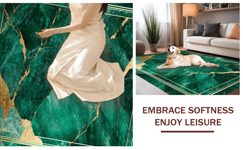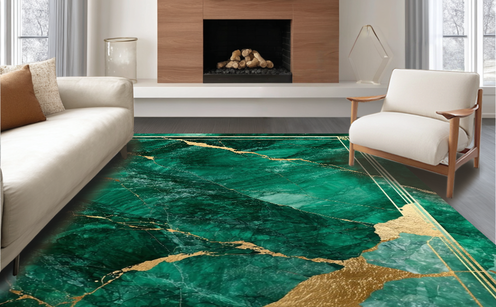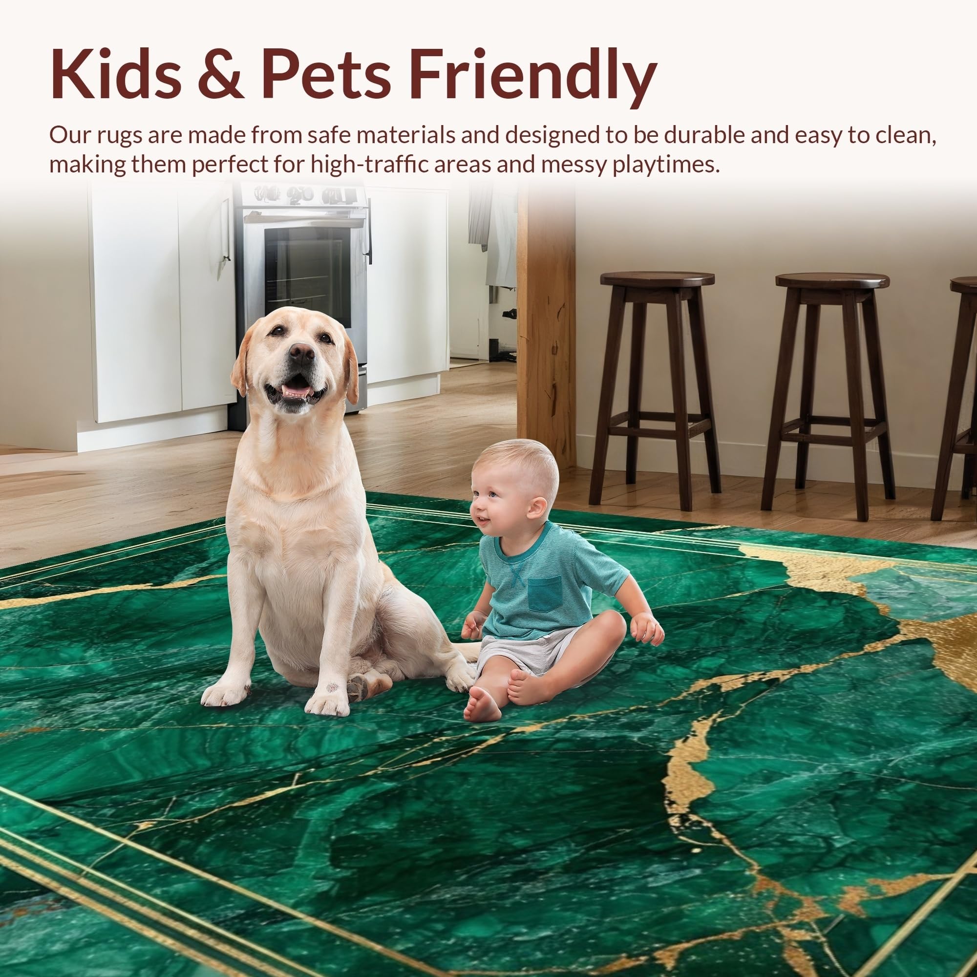 Ultra Soft Area Rug, Non Slip, Stain Resistant, Washable Area Rugs for Living Room, Bedroom, Vibrant Green and Gold Fusion(Green) Overview: