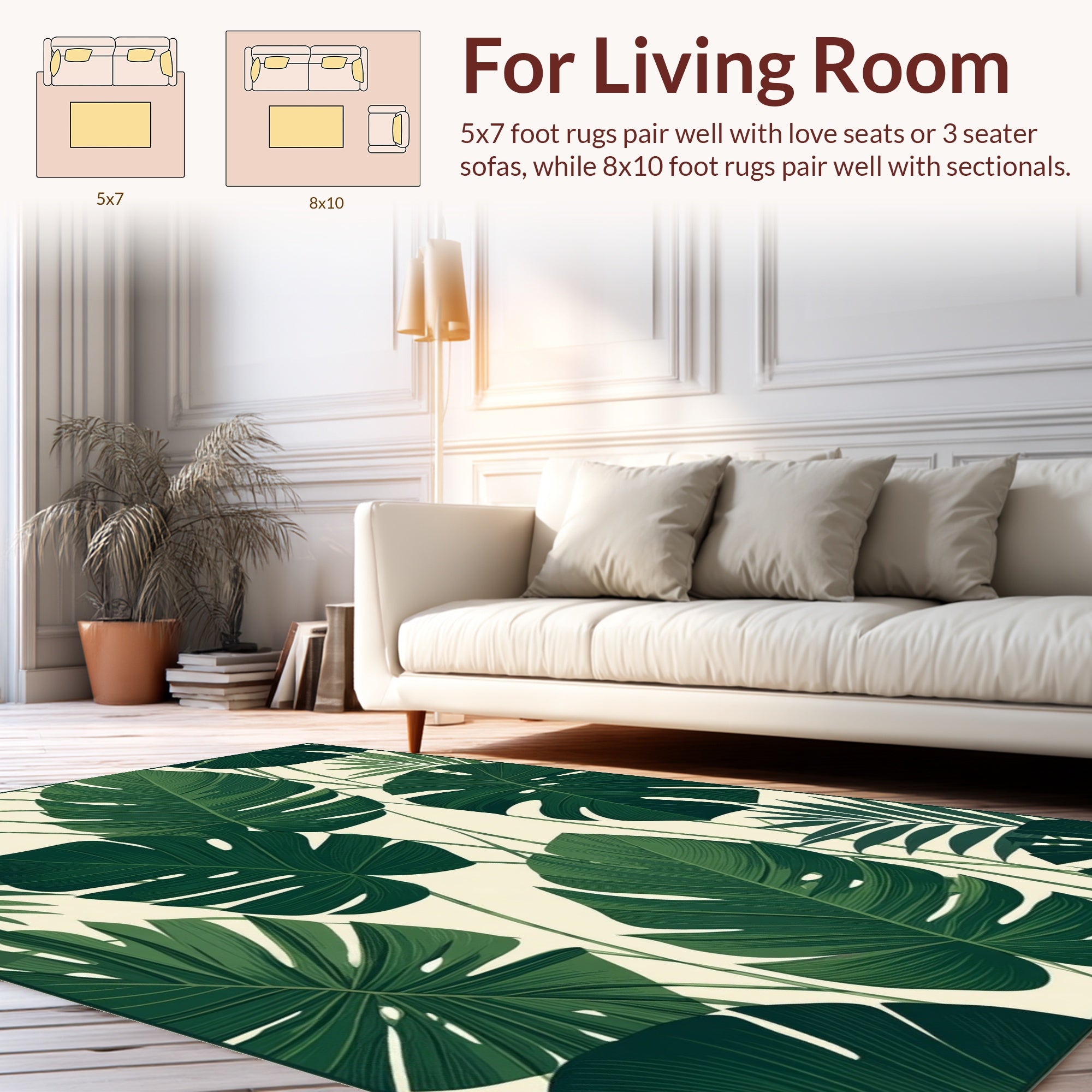 Flatwoven High Traffic Area Rug, Vibrant Green Botanical Motif, Non Slip, Stain Resistant, Washable Area Rugs for Living Room, Bedroom (Green) Overview: