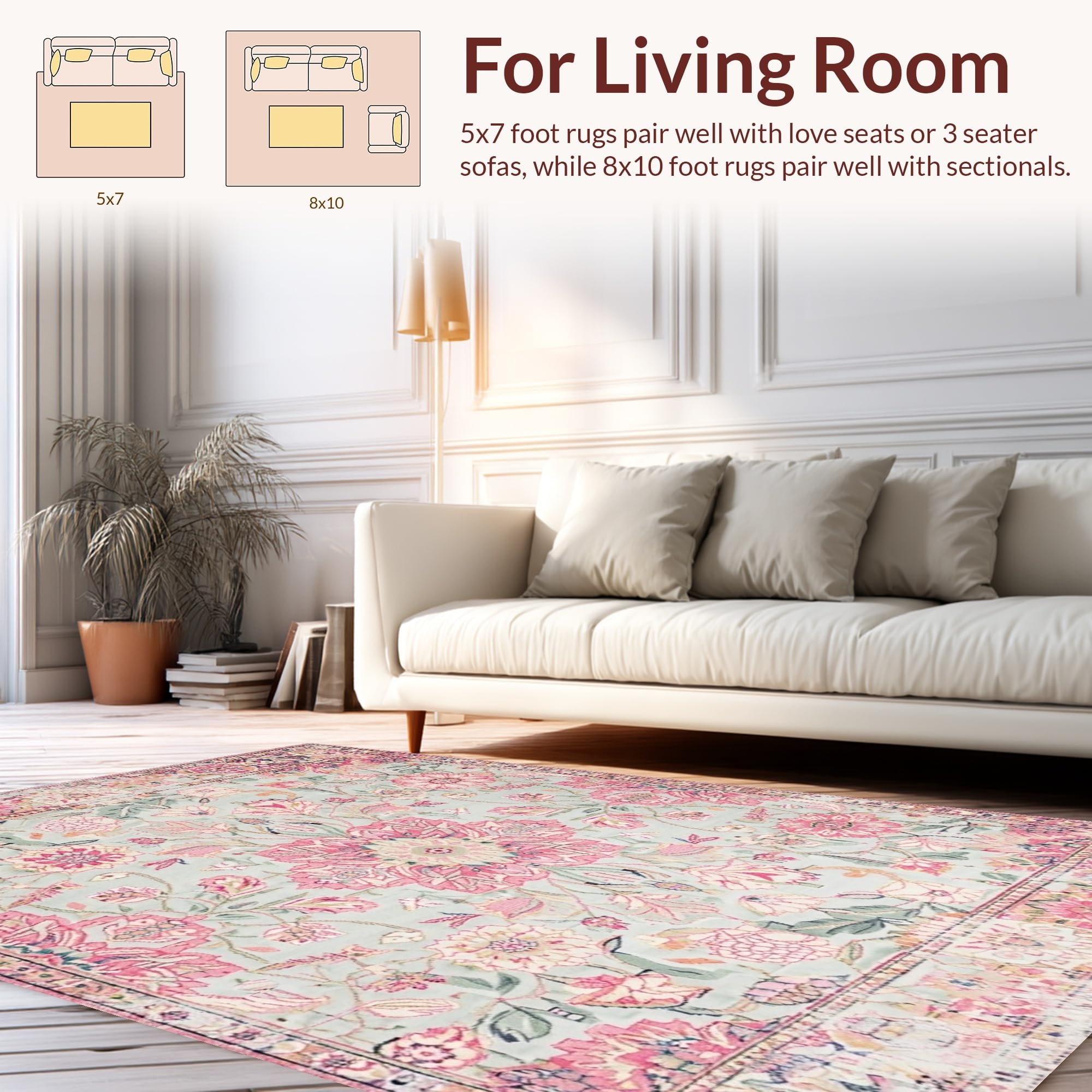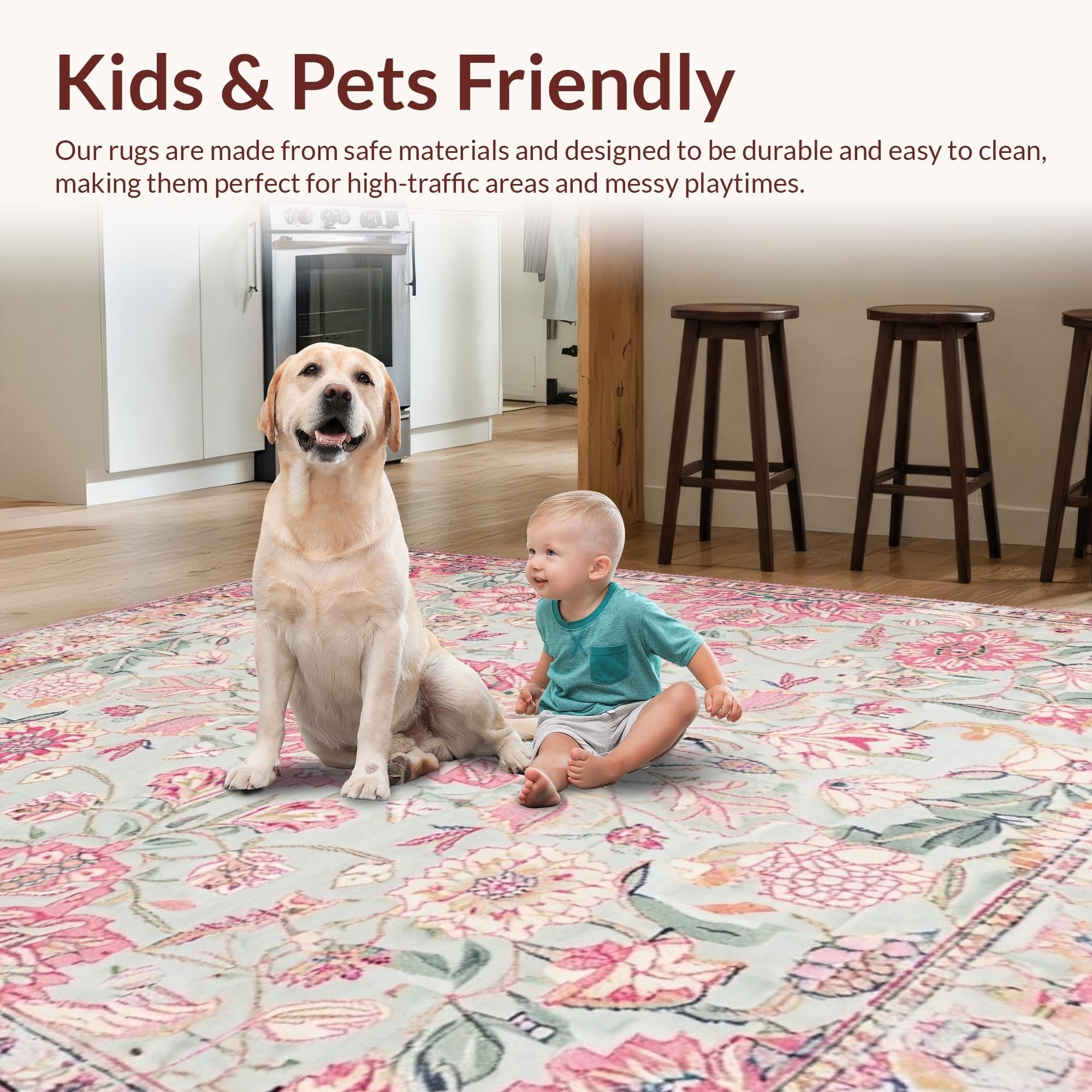 Ultra Soft Area Rug, Non Slip, Stain Resistant, Washable Area Rugs for Living Room, Bedroom, Vibrant Green Leafy Motif(Ivory) Overview: