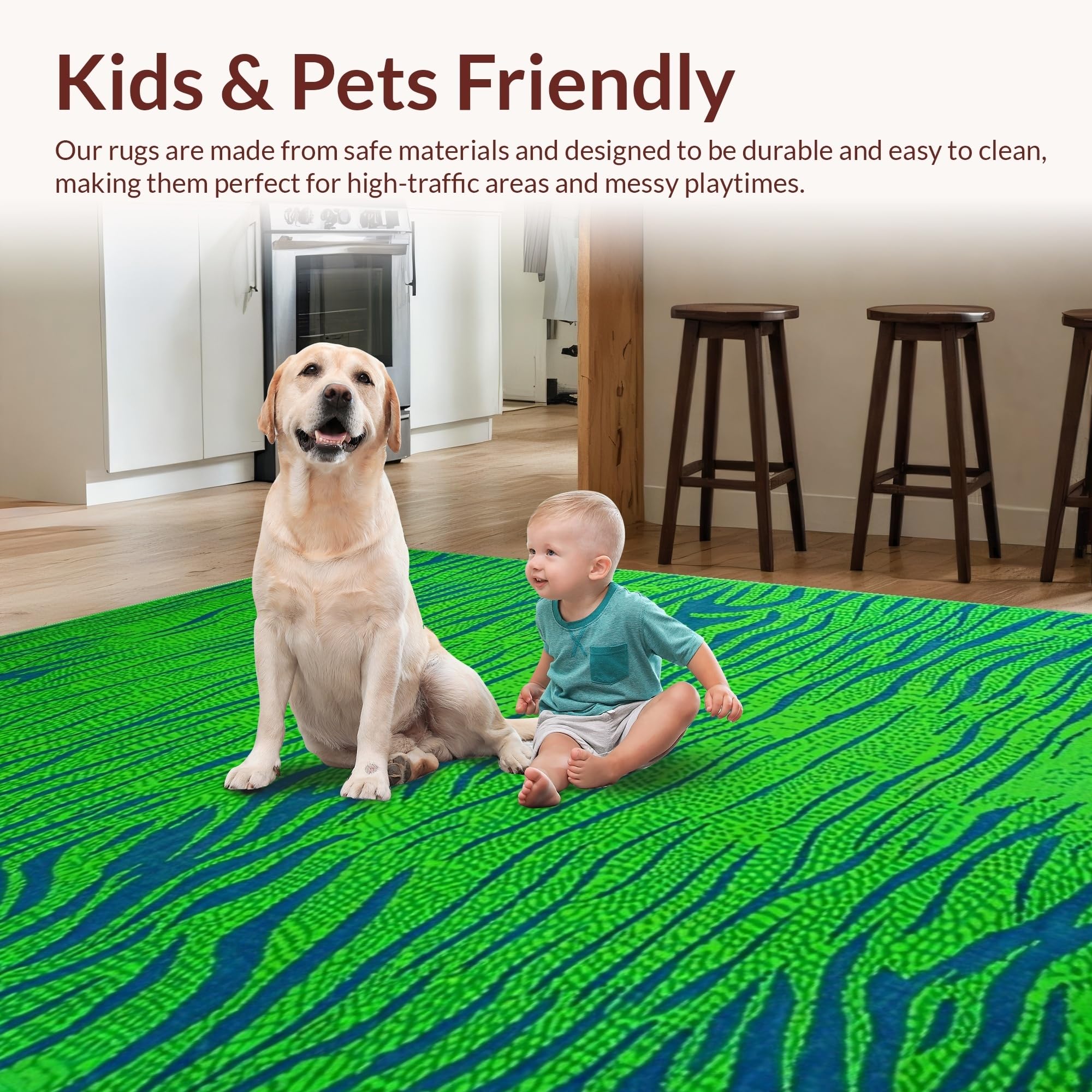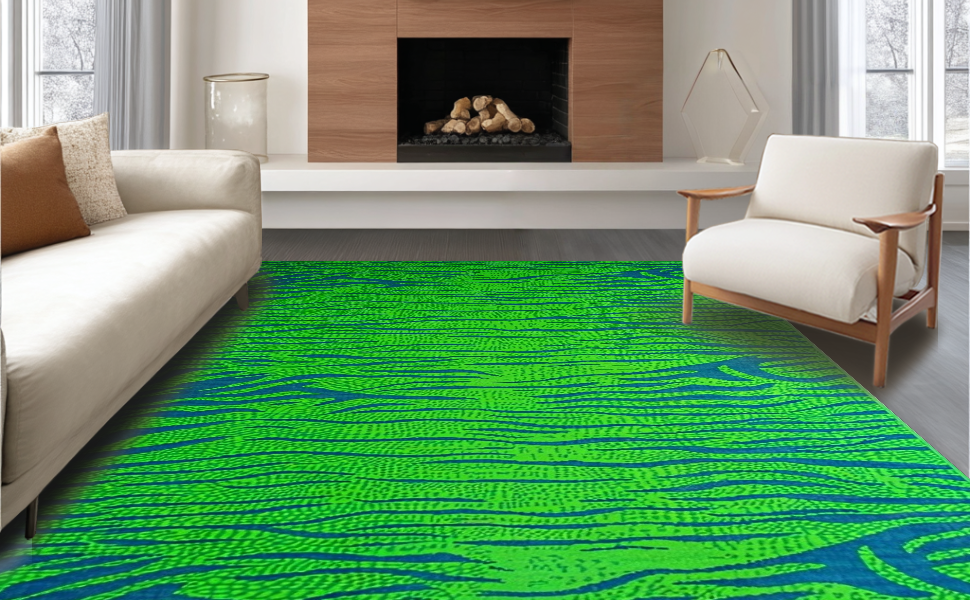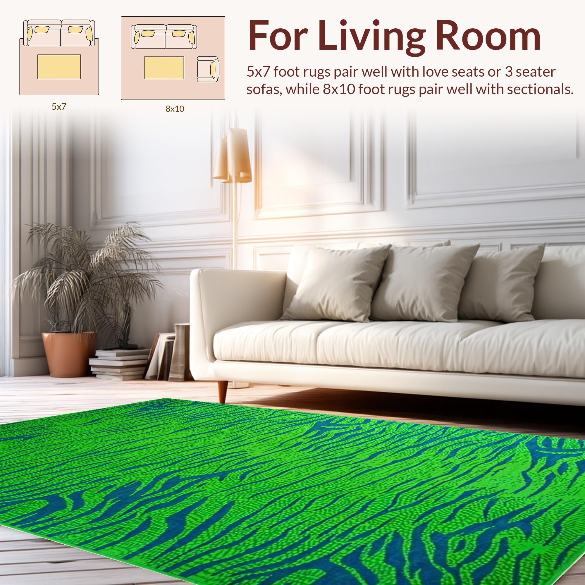 Ultra Soft Area Rug, Non Slip, Stain Resistant, Washable Area Rugs for Living Room, Bedroom, Vibrant Green Tiger Jungle Aesthetic(Green) Overview: