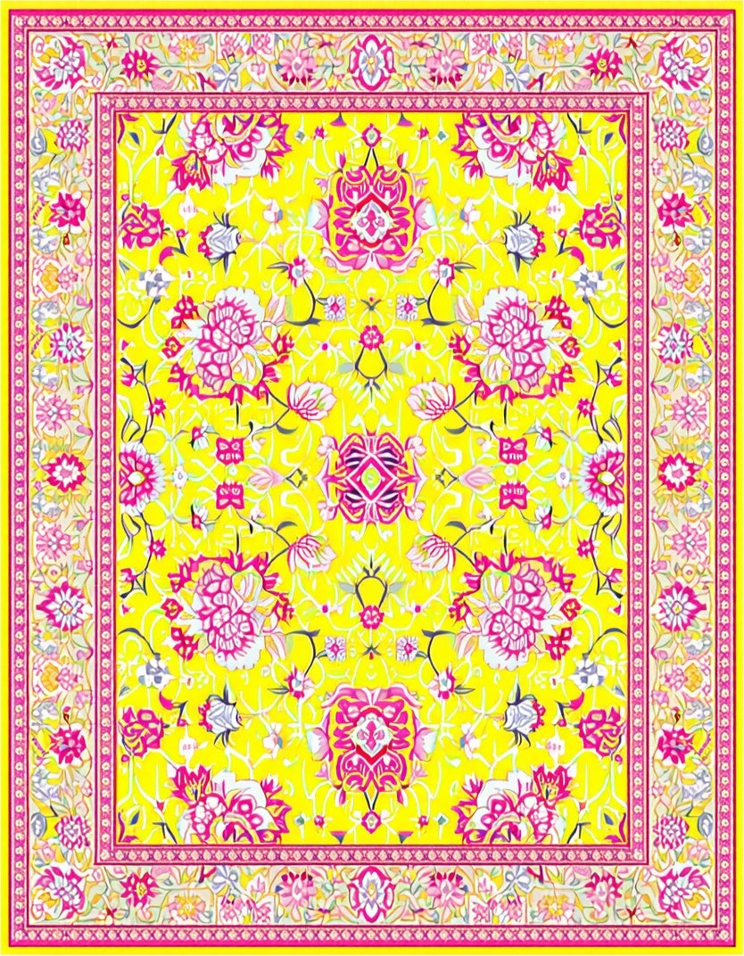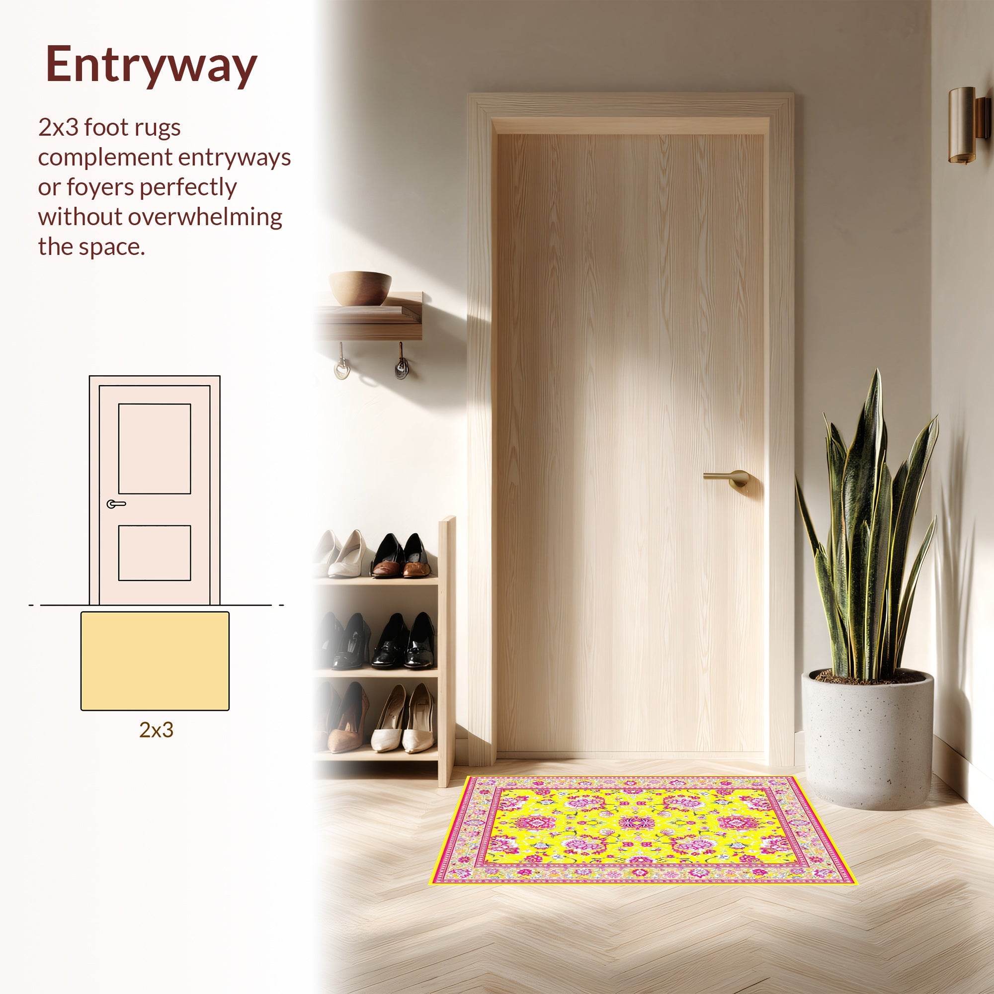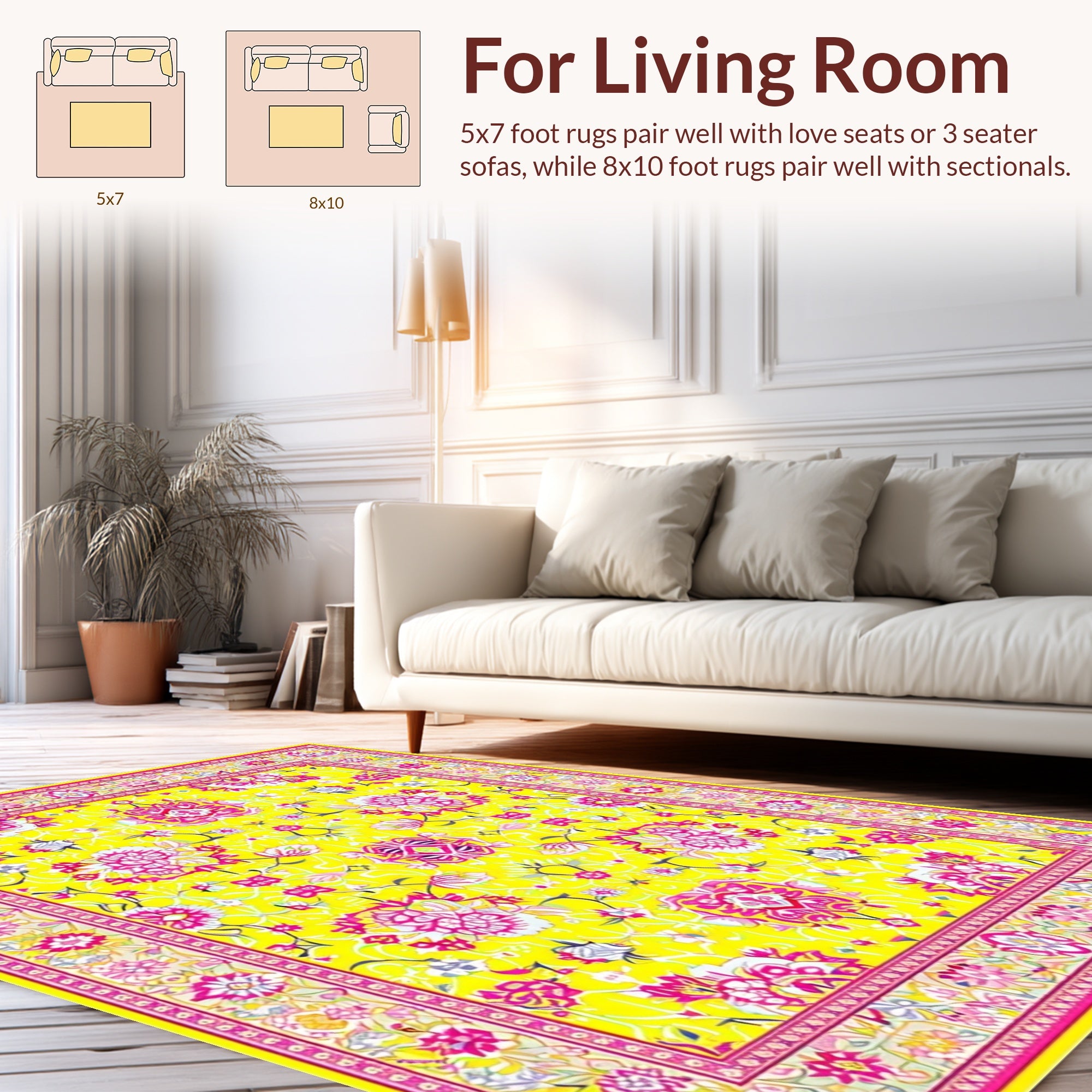 Flatwoven High Traffic Area Rug, Vibrant Groovy Flower Arrangement, Non Slip, Stain Resistant, Washable Area Rugs for Living Room, Bedroom (Yellow) Overview: